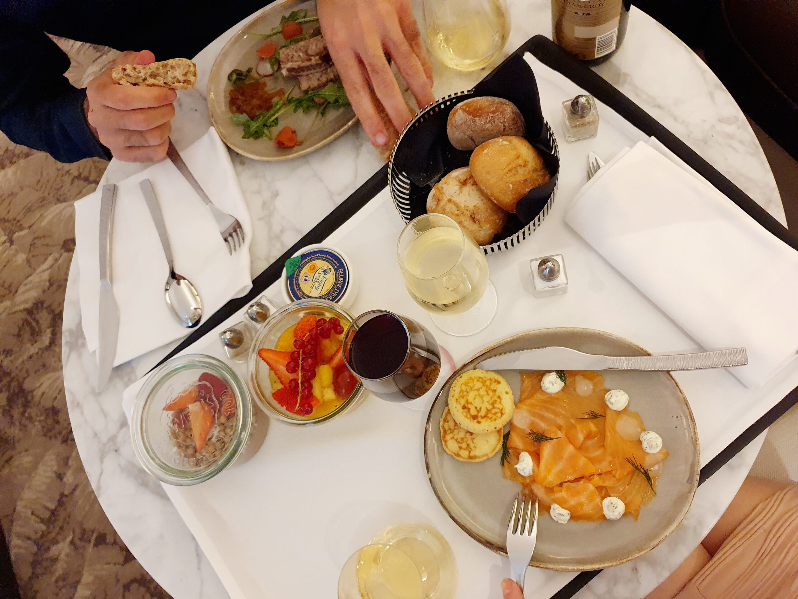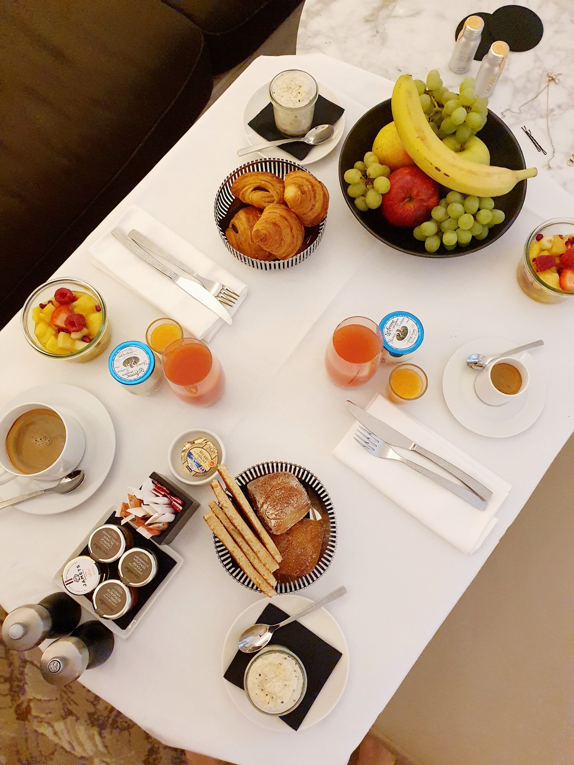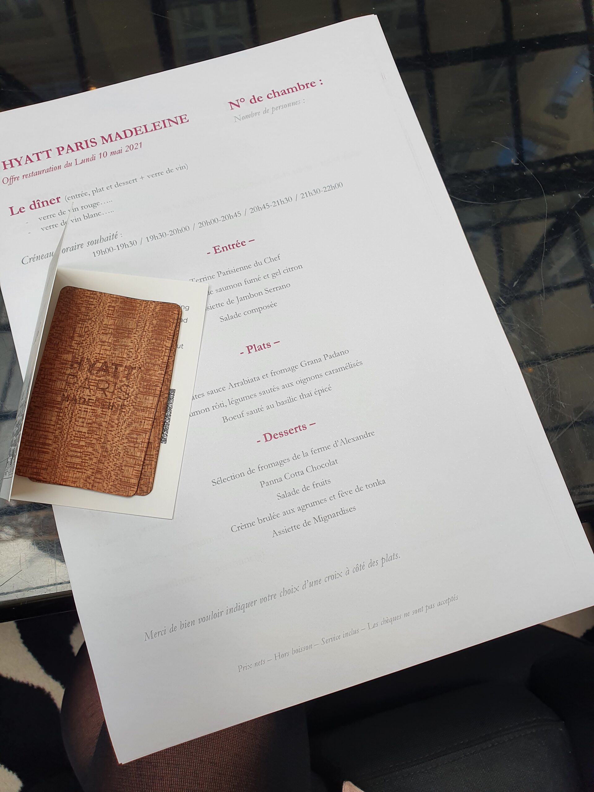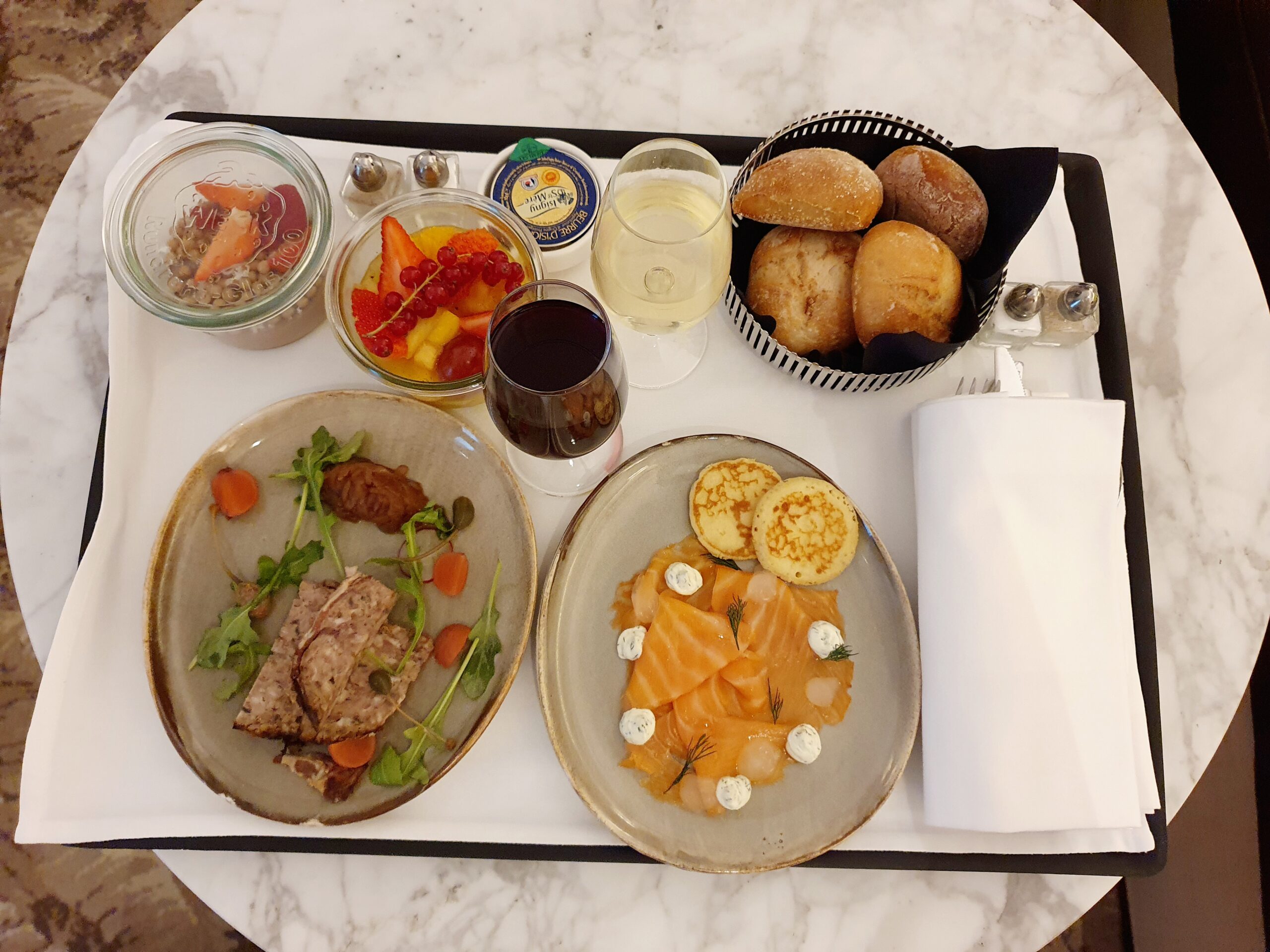 In the evening we tried the Hyatt Paris Madeleine room service, which was just like a movie scene… with handsome waiters bringing the dishes to our room on a rolling table with a white nankin on it…serving it to us on the table.