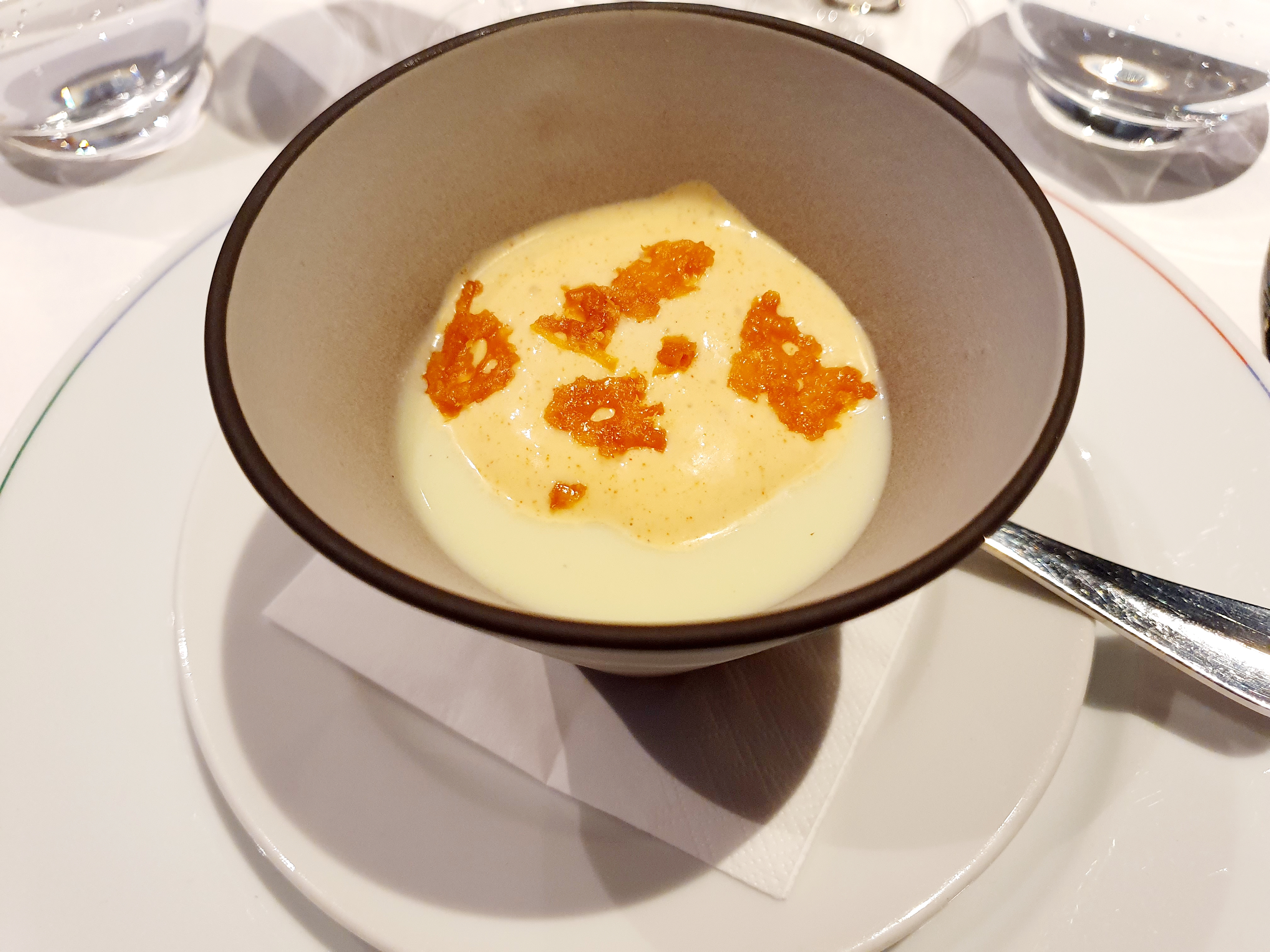 The first dish was an amuse bouche; a cold ″velouté” of asparagus, gouda cheese and paprika. Fantastic soft and creamy. It was almost like a cloud drifting by…light and effortless. It opened my appetite and left me longing for more…