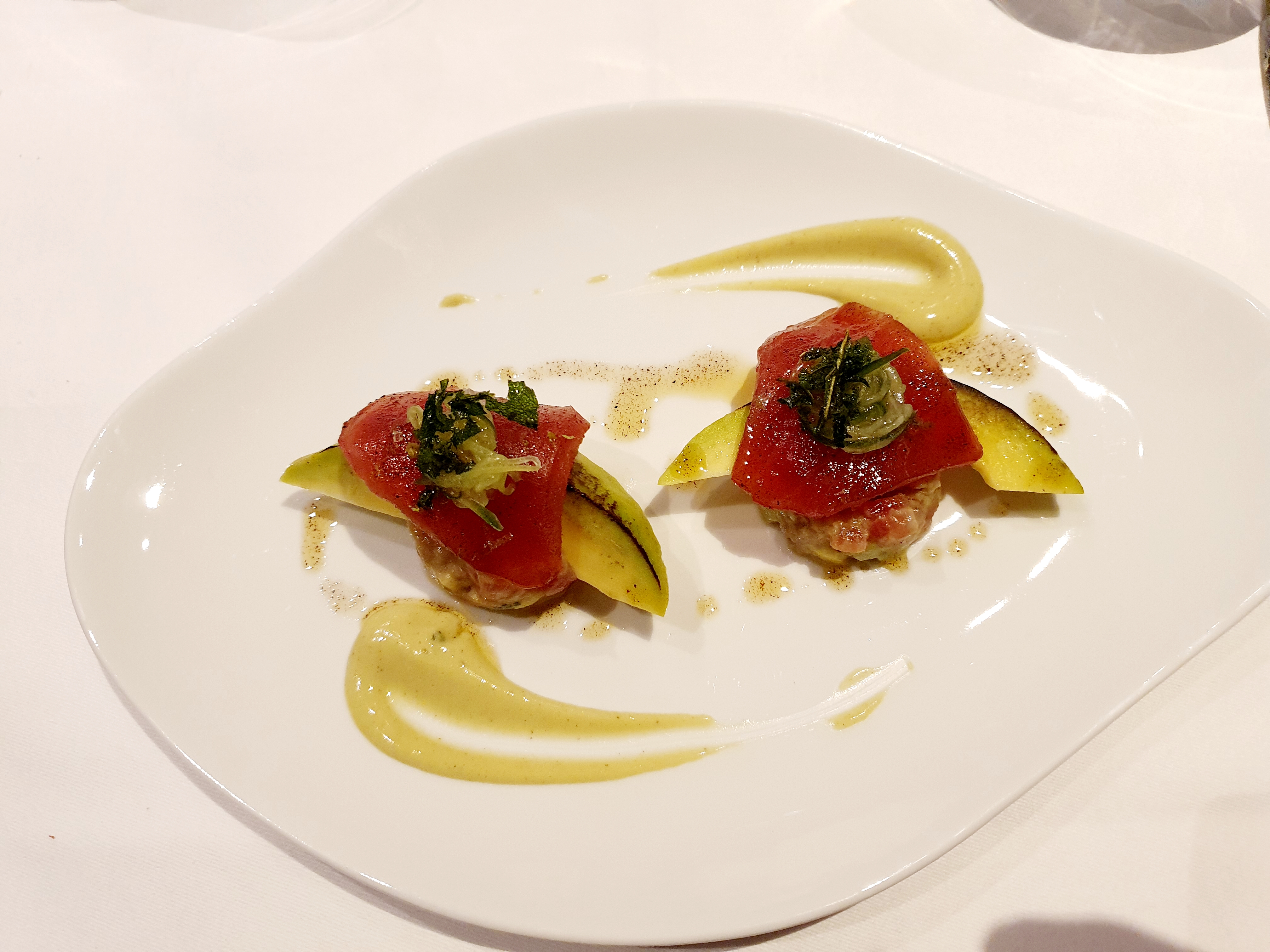 Then a starter came on the table; Marinated tuna with olive oil. Besides the beautiful presentation, the tuna, avocado and the little touch of citrus created a perfect harmony.