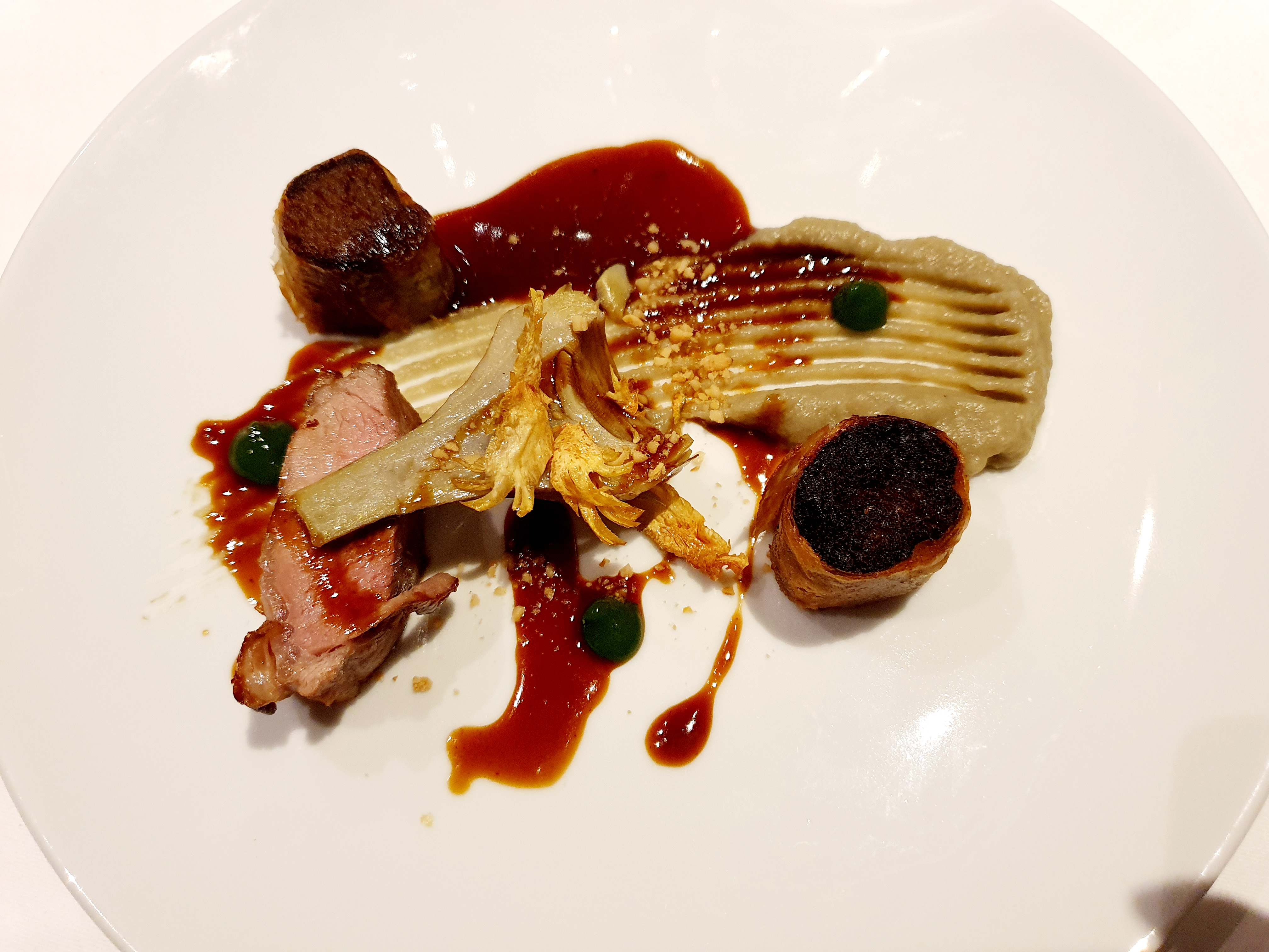 Afterwards a French lamb was served: roasted saddle, preserved neck in an artichoke “poivrade” with pesto-basil and pine seeds. Once again a fabulous presentation. The dish reminded me of a forest and its beautiful wild nature..a dish with caracter…and yet super soft and surprising..
