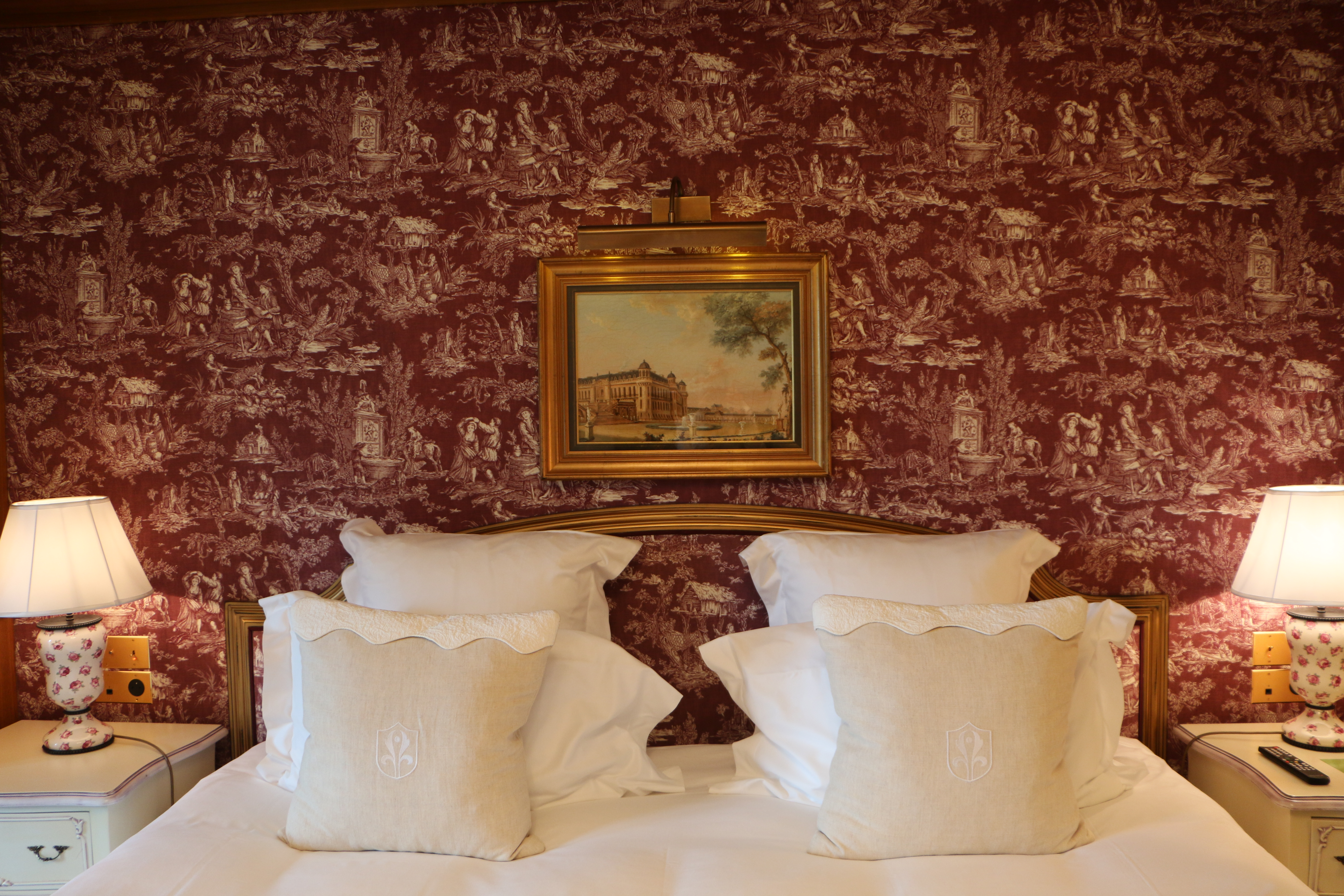 I loved the room´s decoration. A wall with Jouy fabrics in warm colors that reminded me of them from a castle, but sophisticated and modern. Wherever I looked refined luxury materials caught my eyes…
