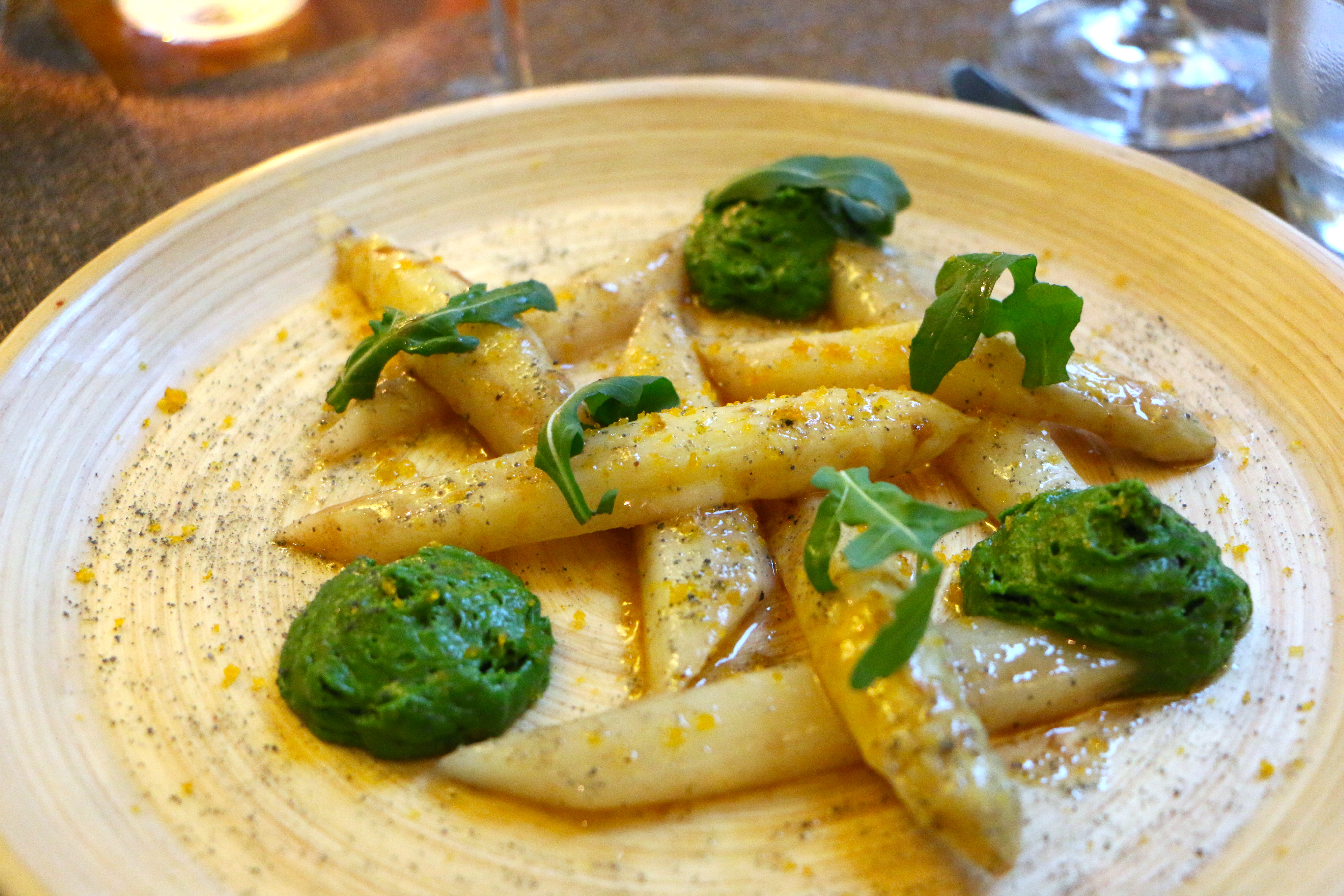 Then I tasted the white asparagus from Southwest with bottarga and creamy arugula. Fresh and tasty, with a touch of pepper. I couldn´t get enough of those.