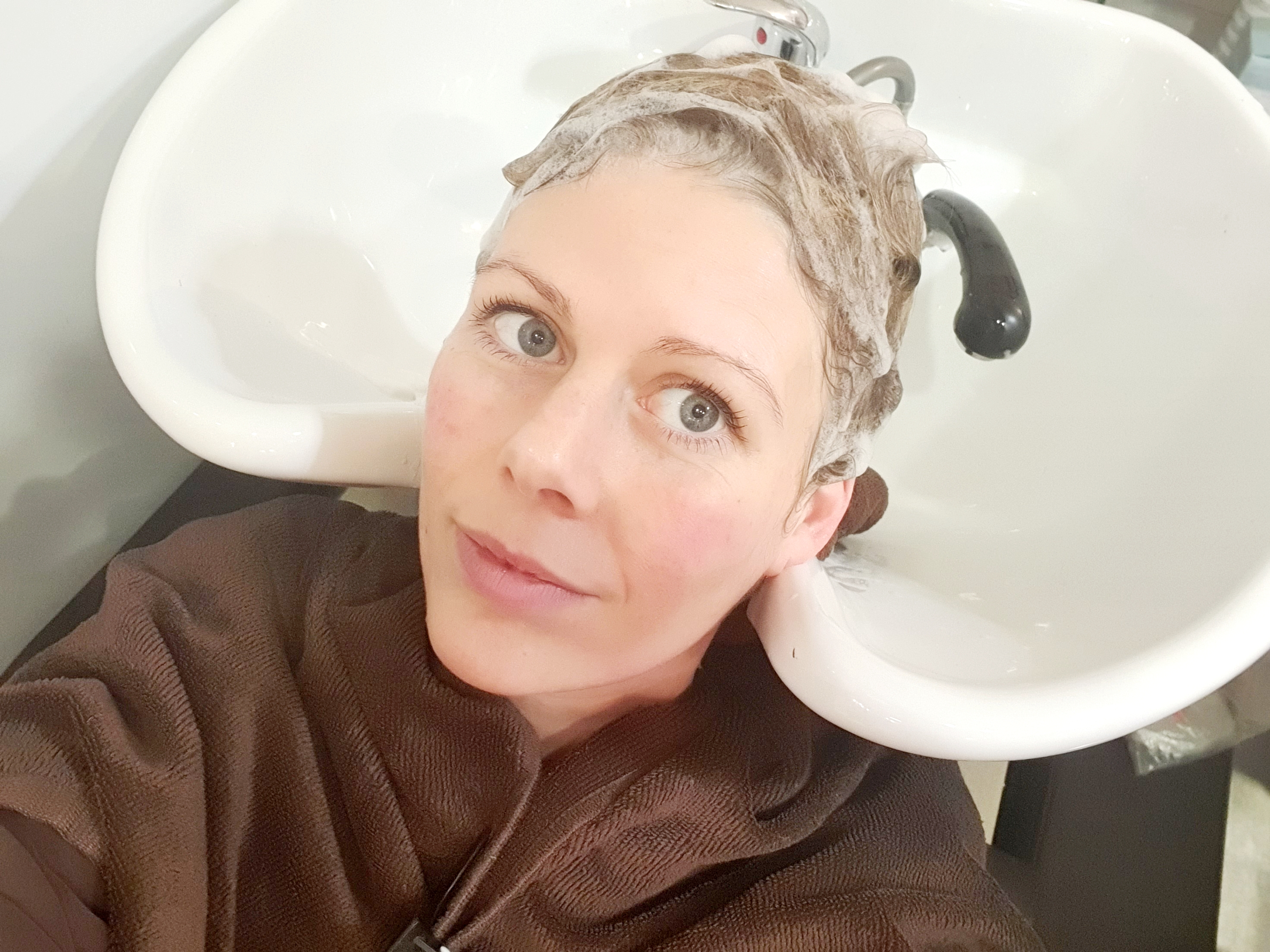 I started with the nettle shampooing, which should be good for fine hair like mine. It was fabulous…and while I was getting my hair done, the chair with an inbuild massage function made me relax. Amazing.