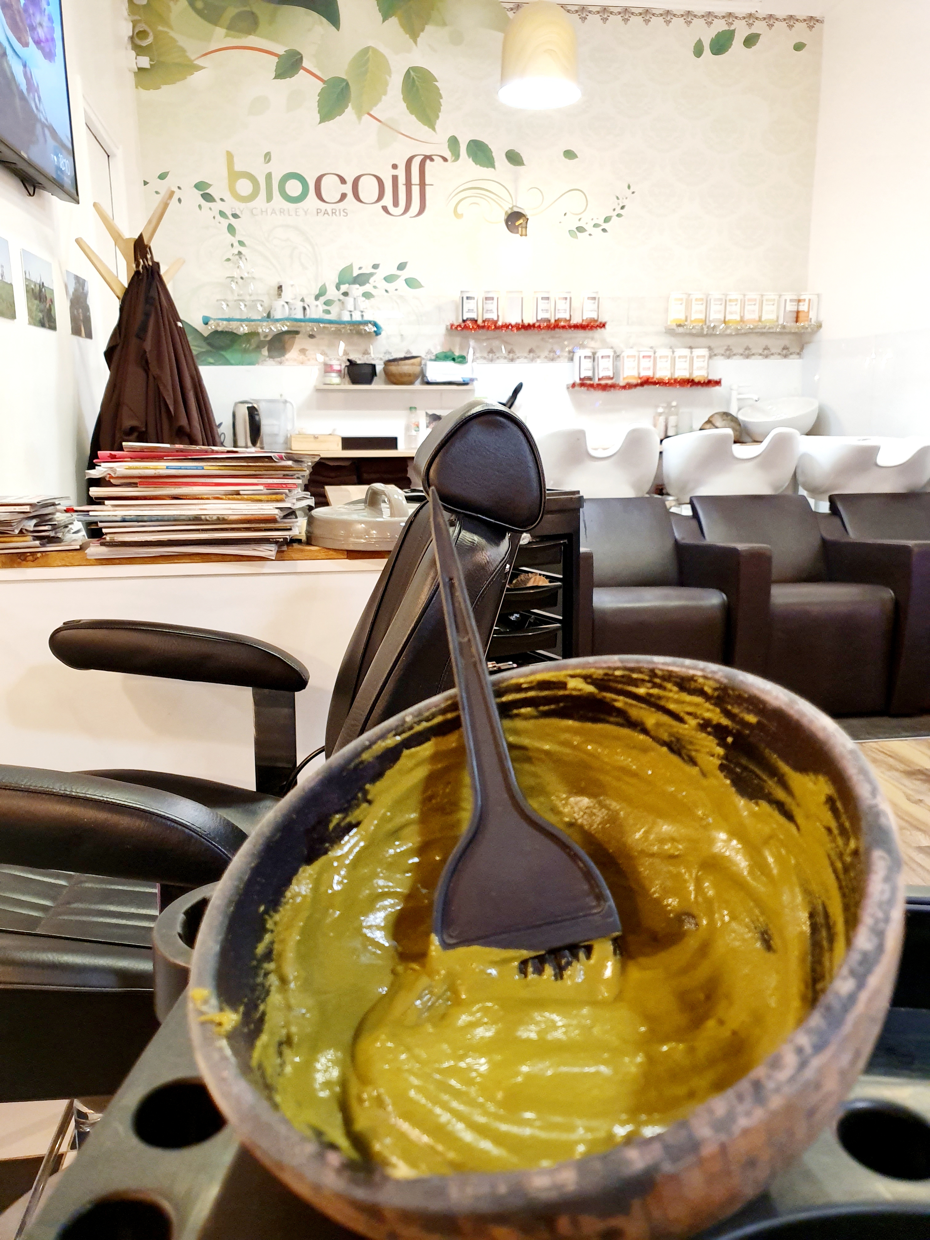 I went there to try the “ma première fois” hair cure with: a nettle shampooing, clay mask, color and moisturizer…and couldn’t wait, because the Biocoiff salon is known for being an expert in plant colors and sublimate women’s hair naturally, without any chemicals!!