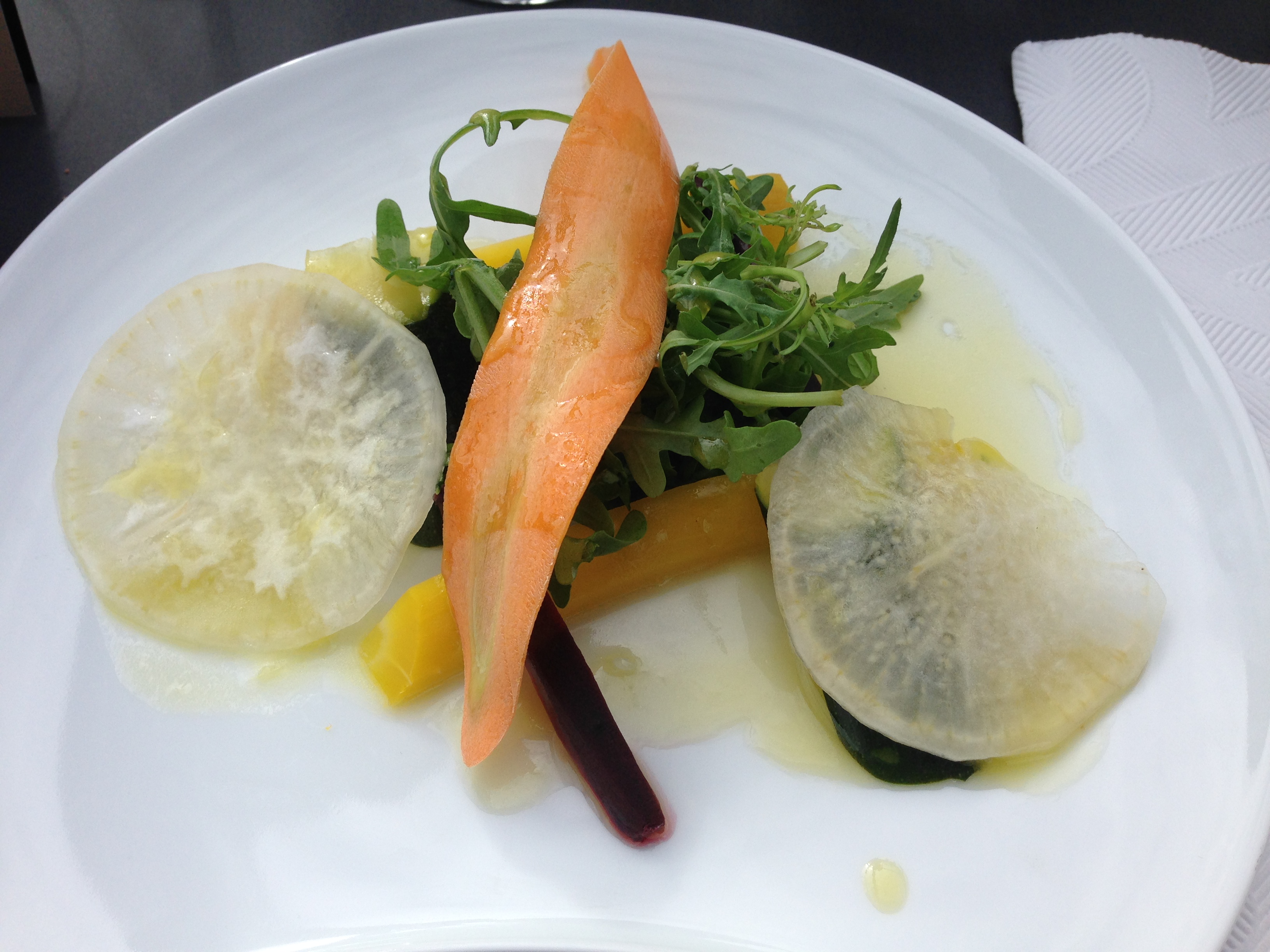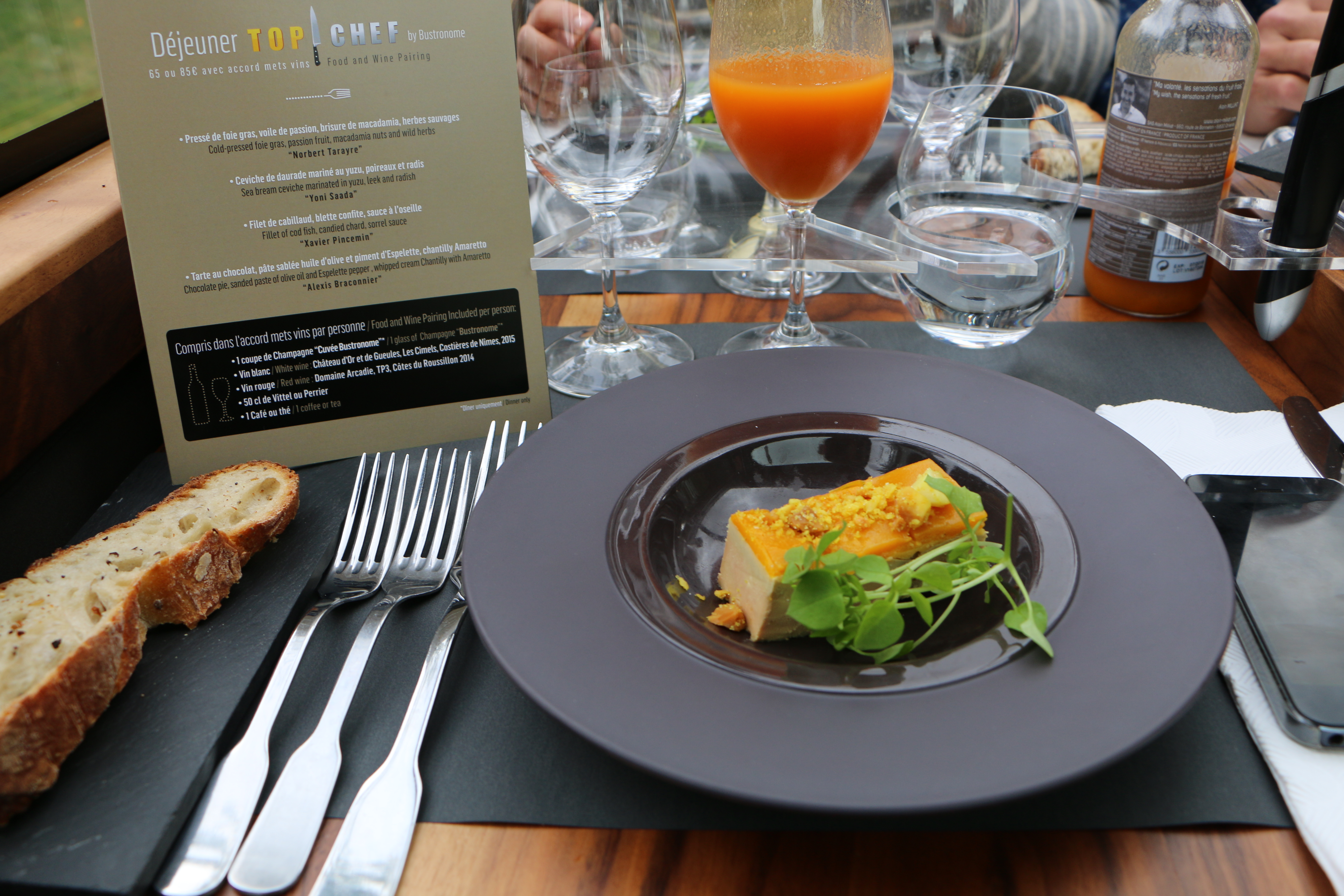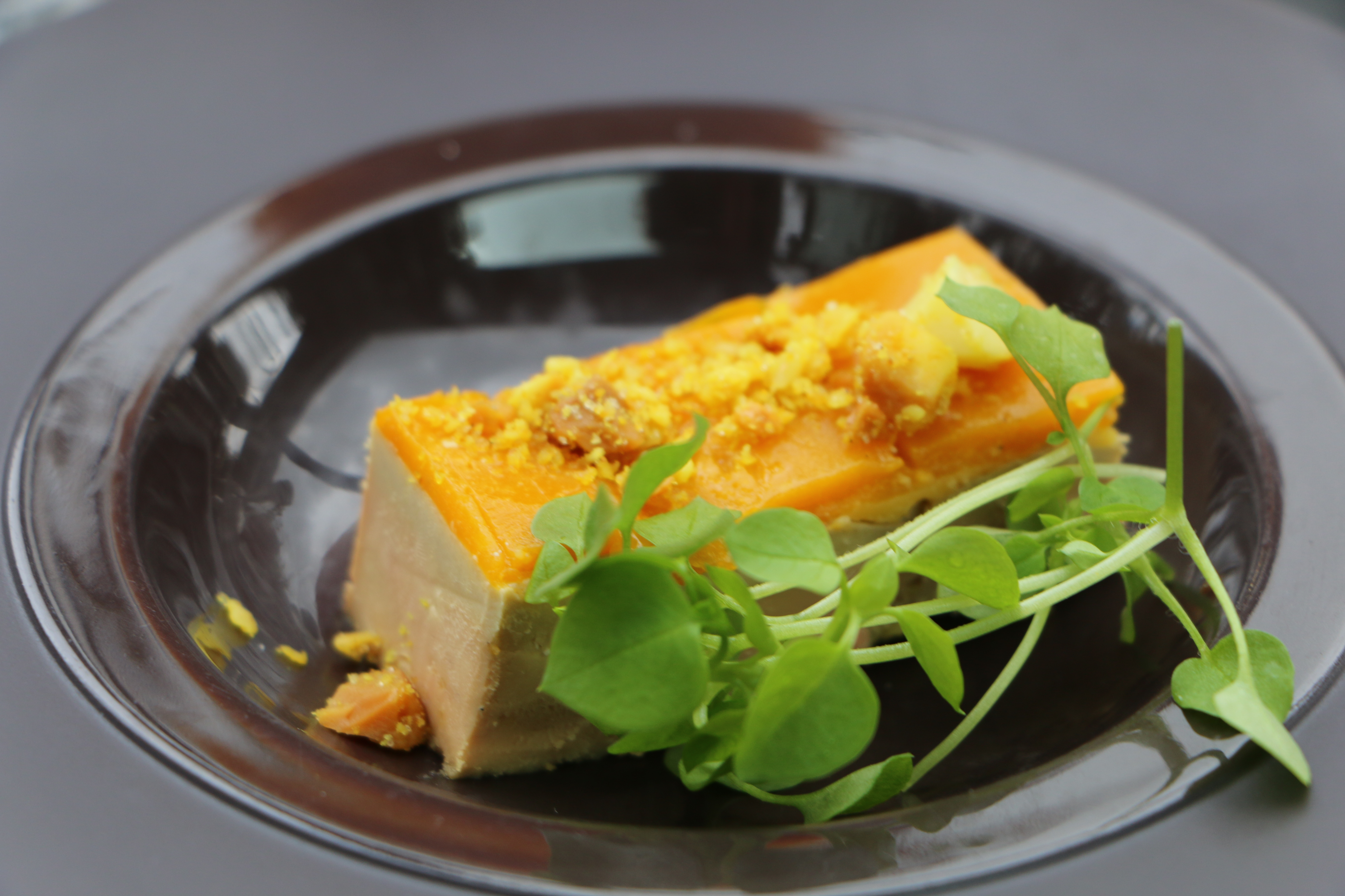 To begin with we were served a: Cold pressed foie gras, with passion fruit, macadamisa nuts and wild herbs – A signature dish created by Norbert Tarayre who discovered his passion for cooking during a stay in London where he worked for the three Michelin starred restaurant ´Chez Nico´. In 2012 he went all the way to the finals in the french television program ´Top Chef´.