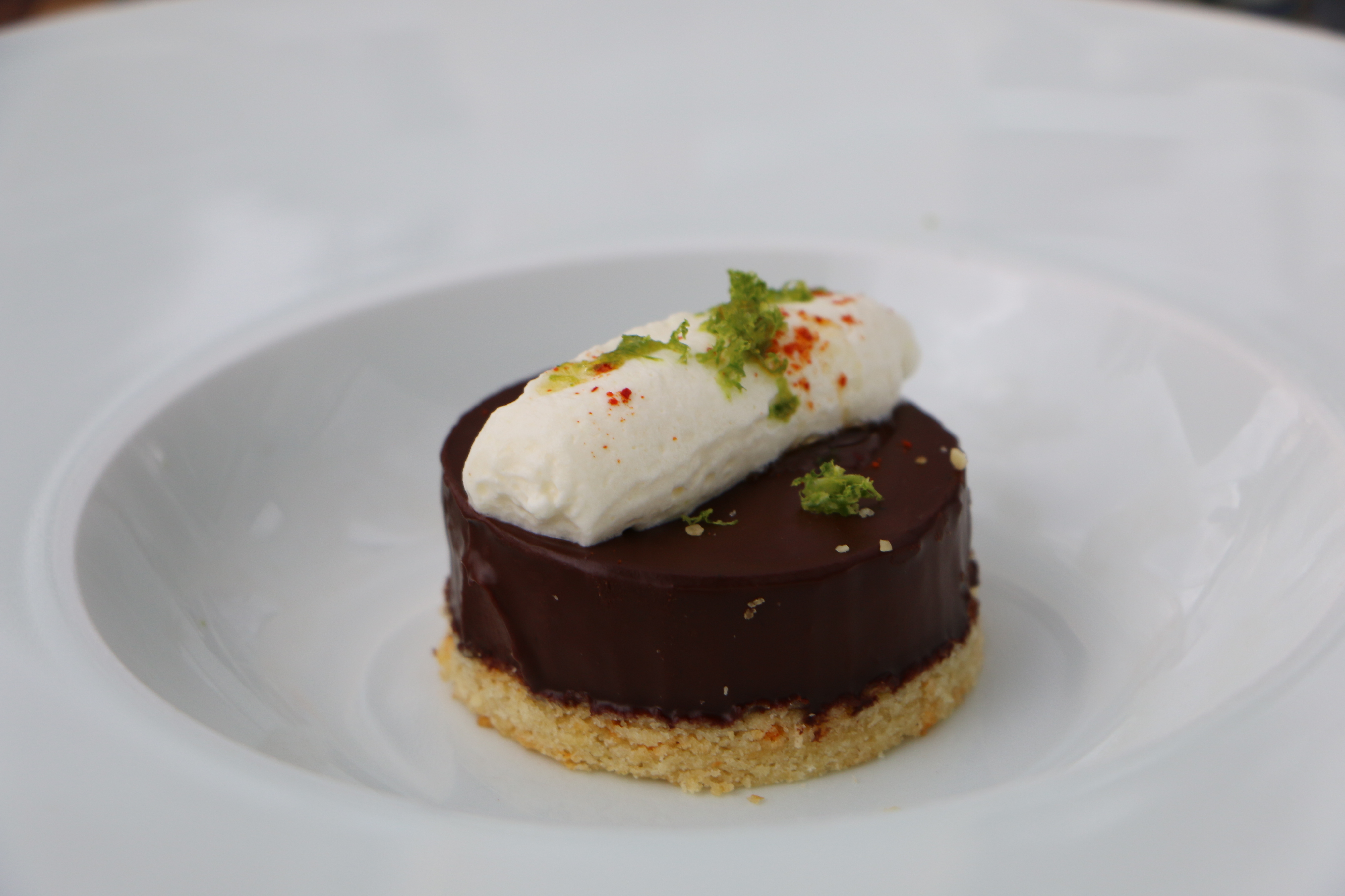 And while the Louvre was slowly gliding by, as an outdoor decoration, the dessert was served – an extremely delicious Chocolate pie, sanded paste of olive oil and Espelette pepper, whipped cream chantilly with Ameretto – created by Alexis Braconnier who previously worked at the 3 starred restaurant Bristol in Paris.