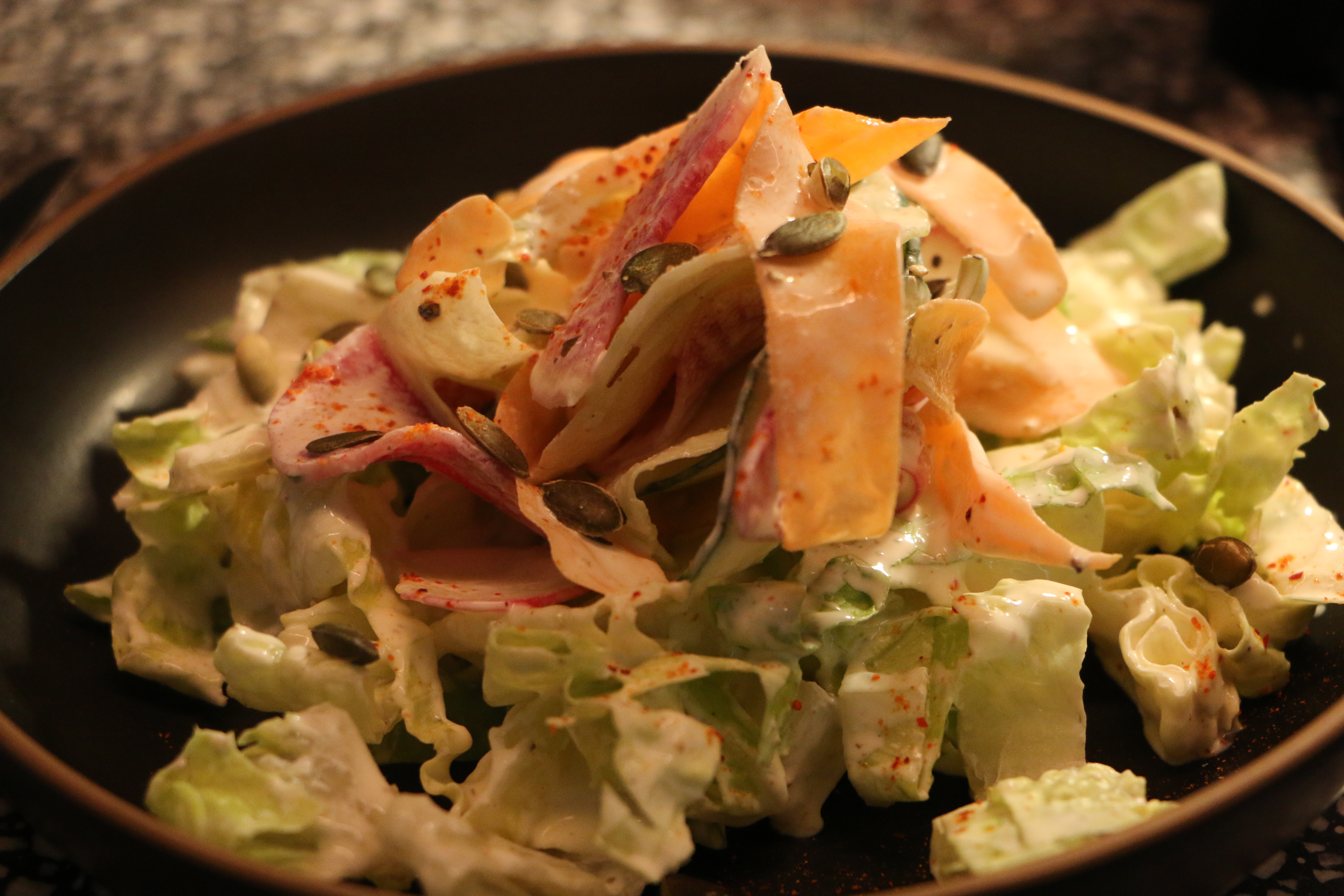 Then I met a fresh and tasty ´Salad with radish, fennel, carrot, beetroot, cucumber plus yogurt perfectly spiced with salt and pebber´. Super delicious.