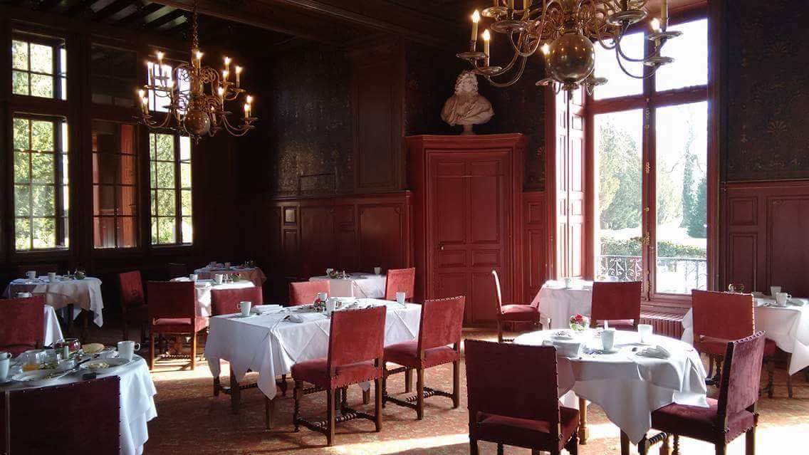 When stepping into the Château d´Esclimont´s elegant Restaurant you can admired the French style garden and its pond just outside the window…