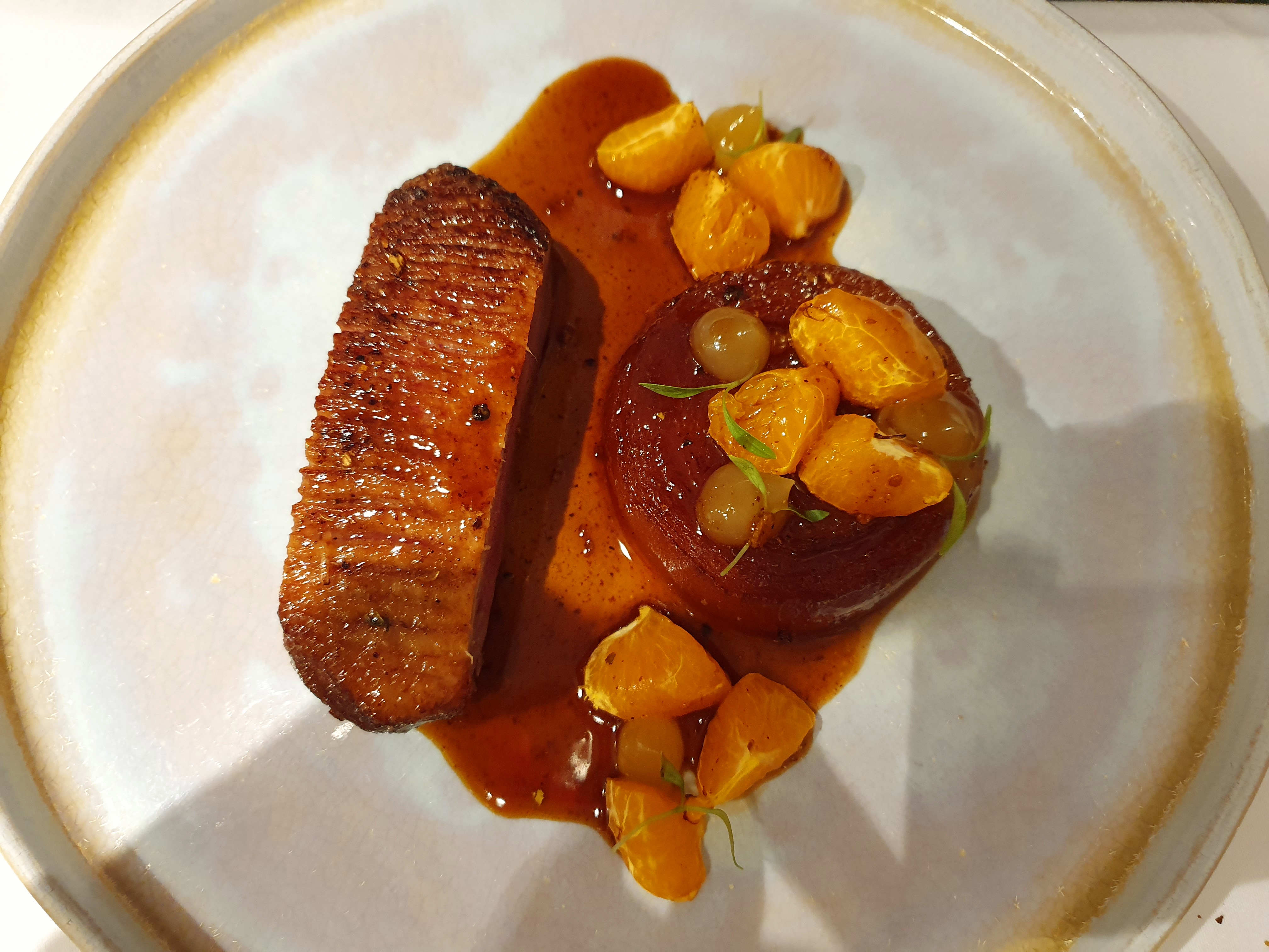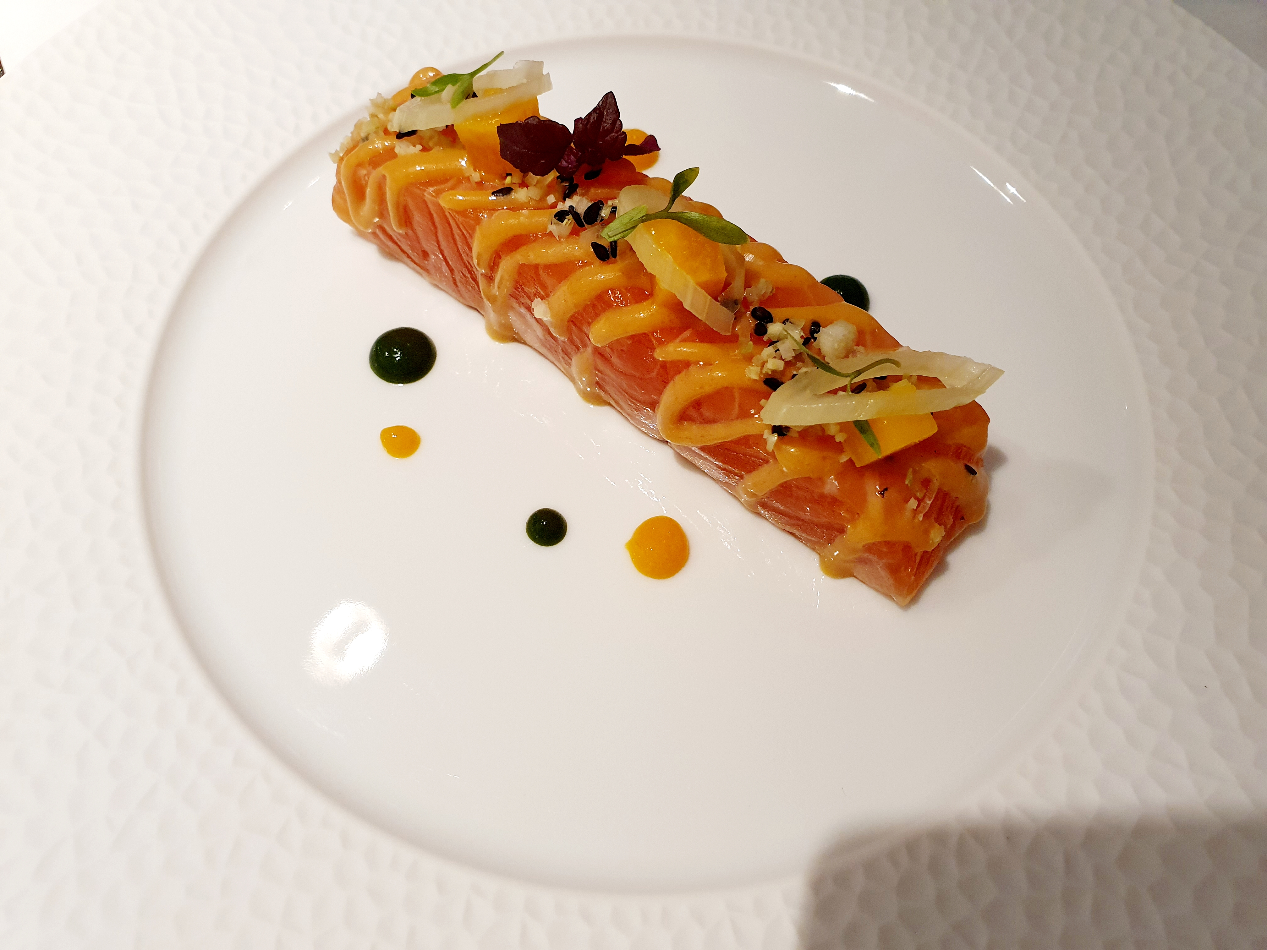 Then a marinated salmon with yellow pepper, lemongrass ginger condiment, mango and tangy fennel…incredibly harmonious, fresh and delicious.
