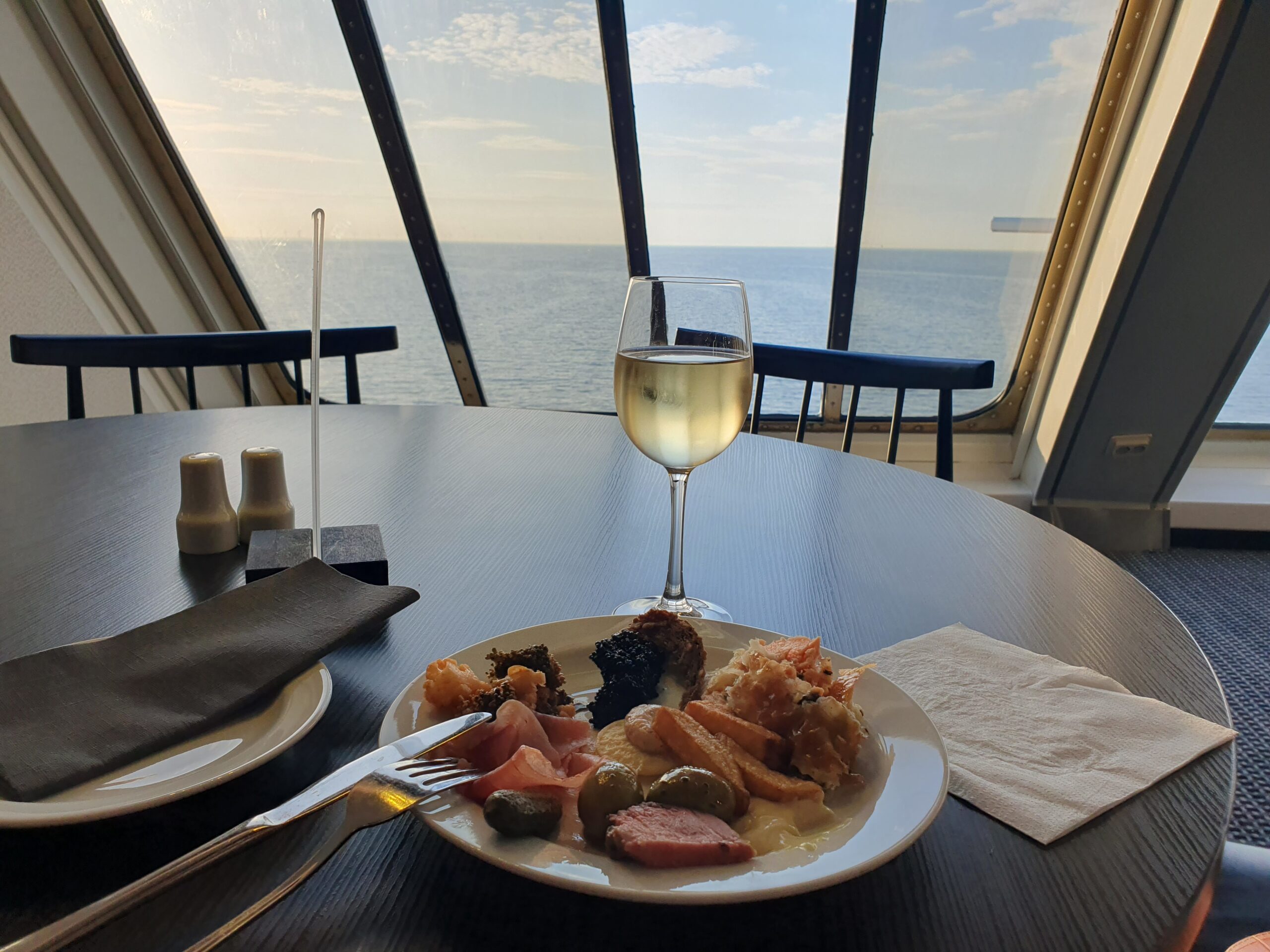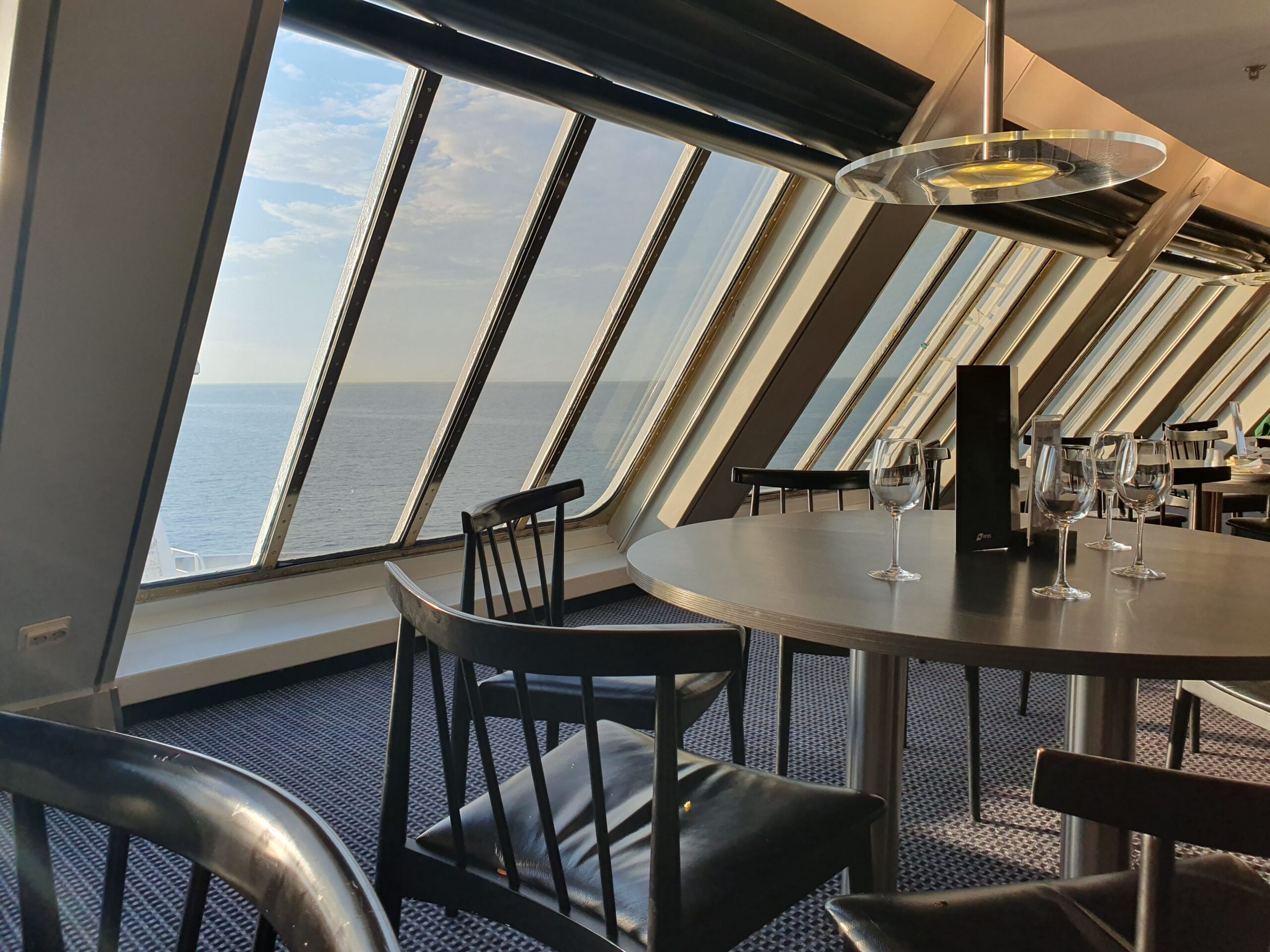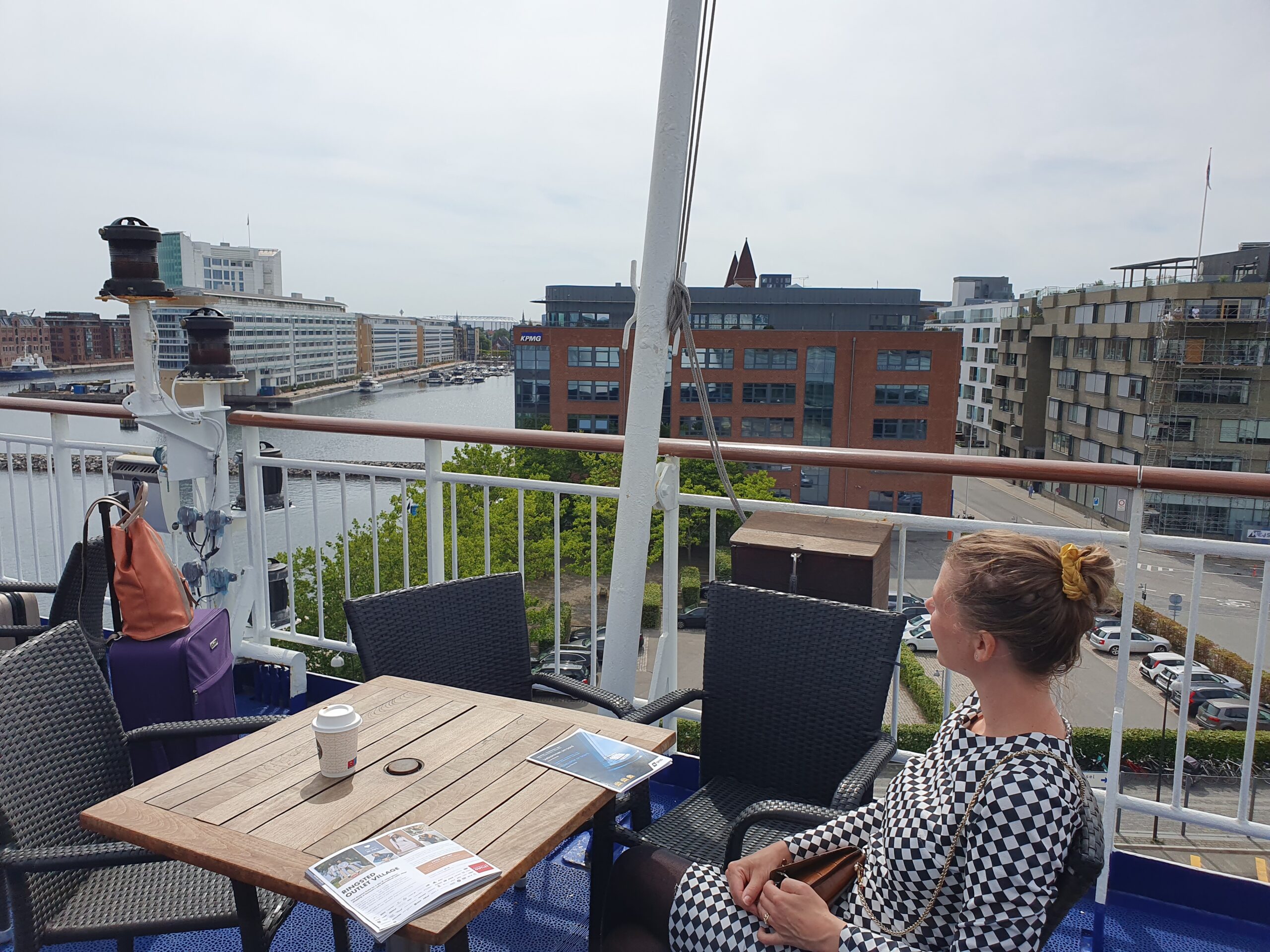 The sun was shining so I hurried up to the deck with the bar. I sat down at one of the tables to enjoy the great view during the departure.