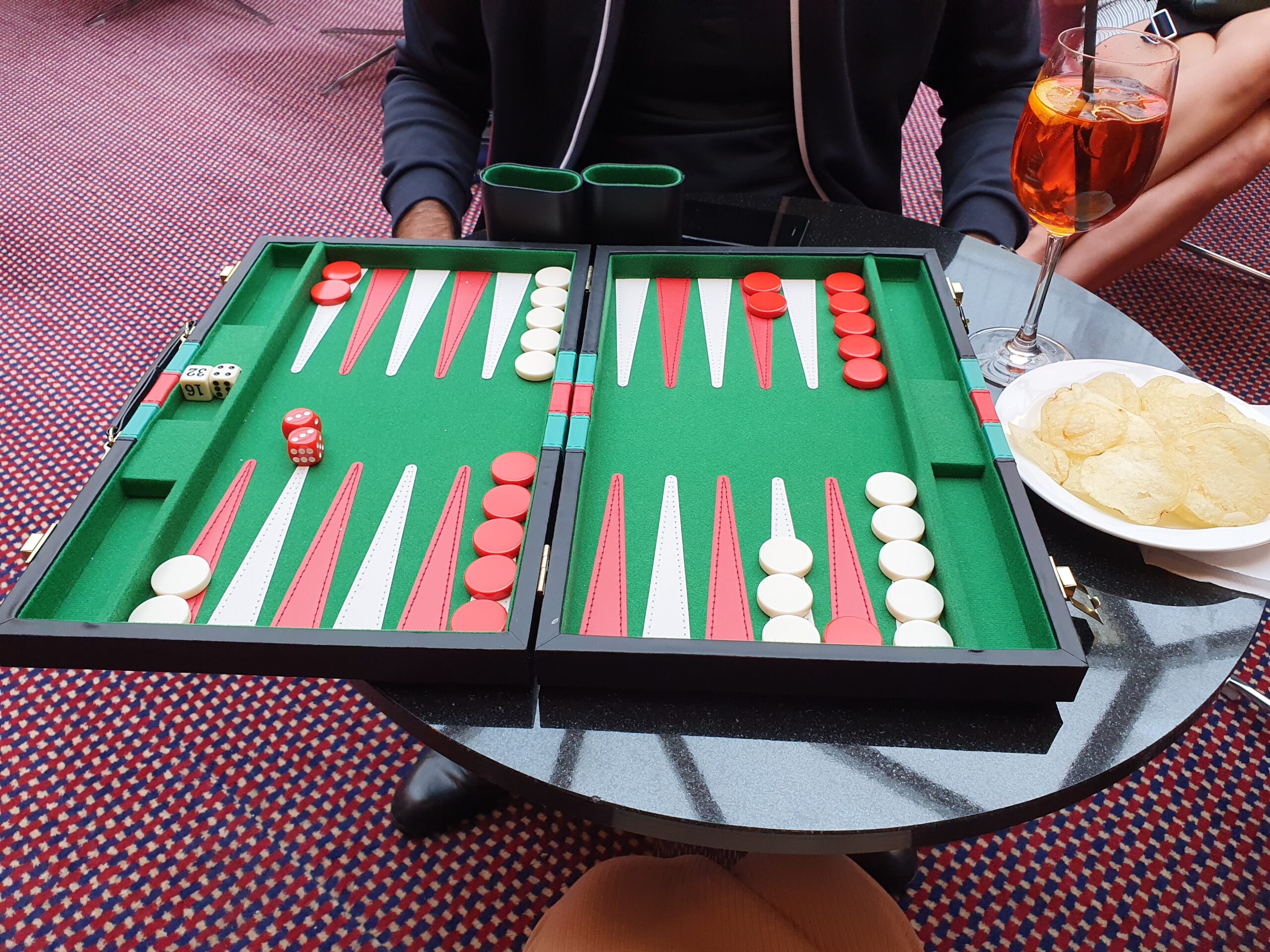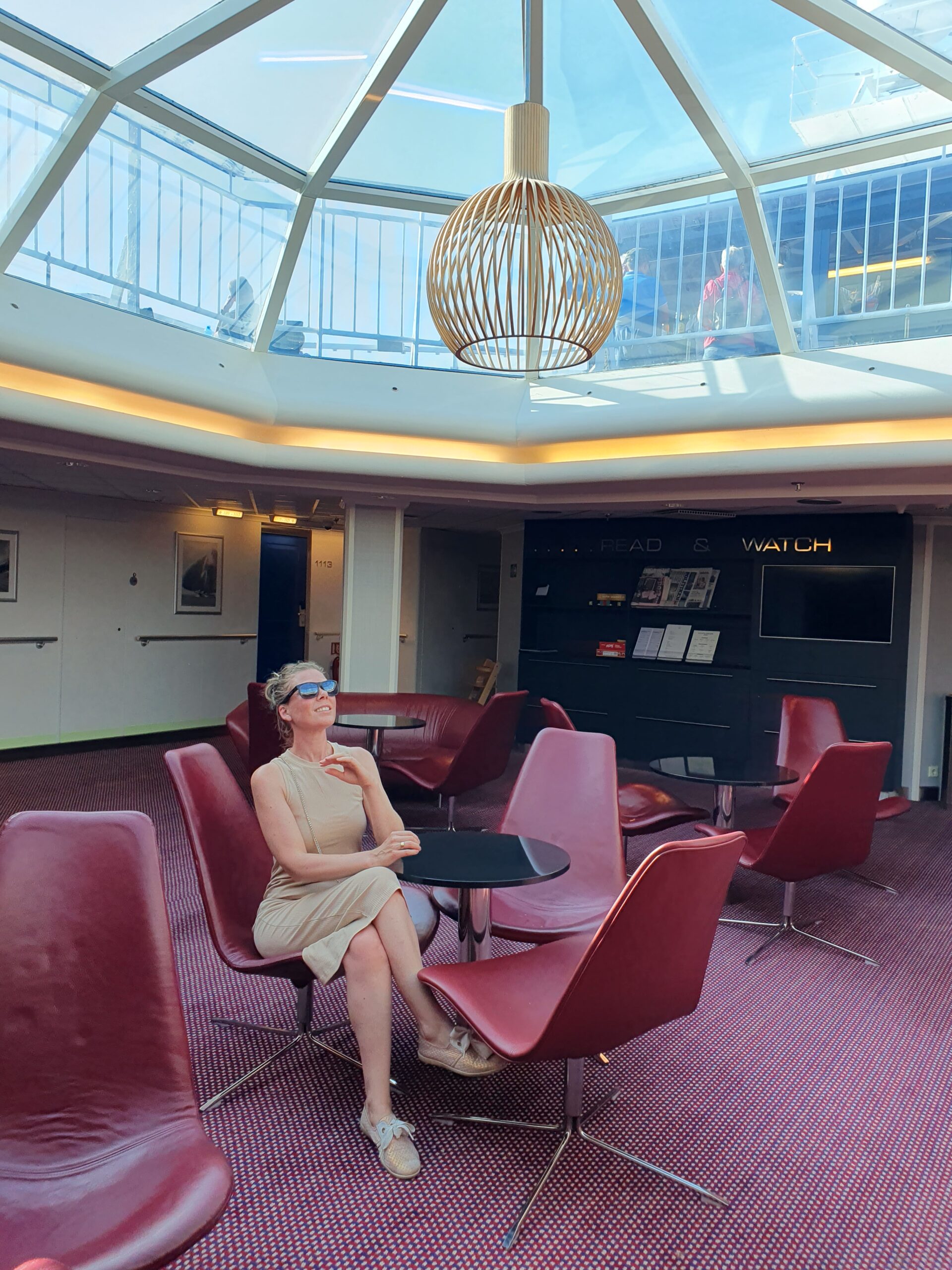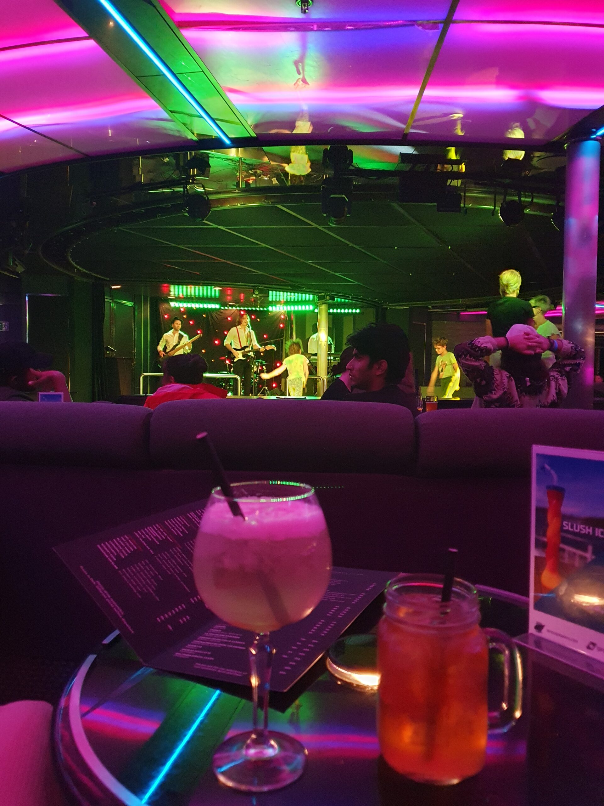 The sun was shining so I hurried up to the deck with the bar. I sat down at one of the tables to enjoy the great view during the departure.