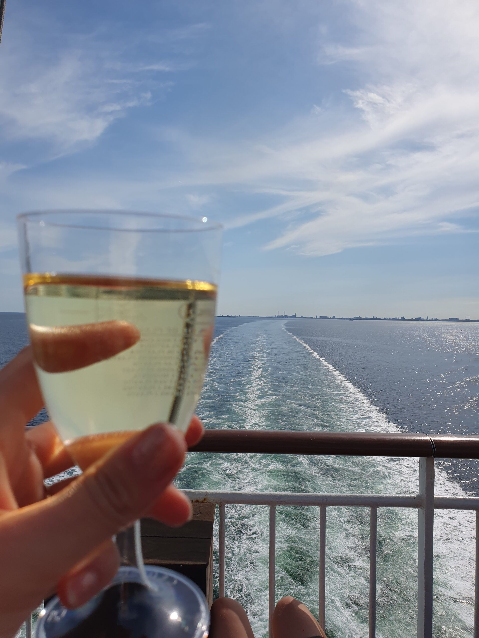 At 3pm the ferry left Copenhagen. The departure in itself was a fantastic experience : with sun in the hair, wine in the glass and an amazing view to the new expensive appartements in Copenhagen…and then over the sea.