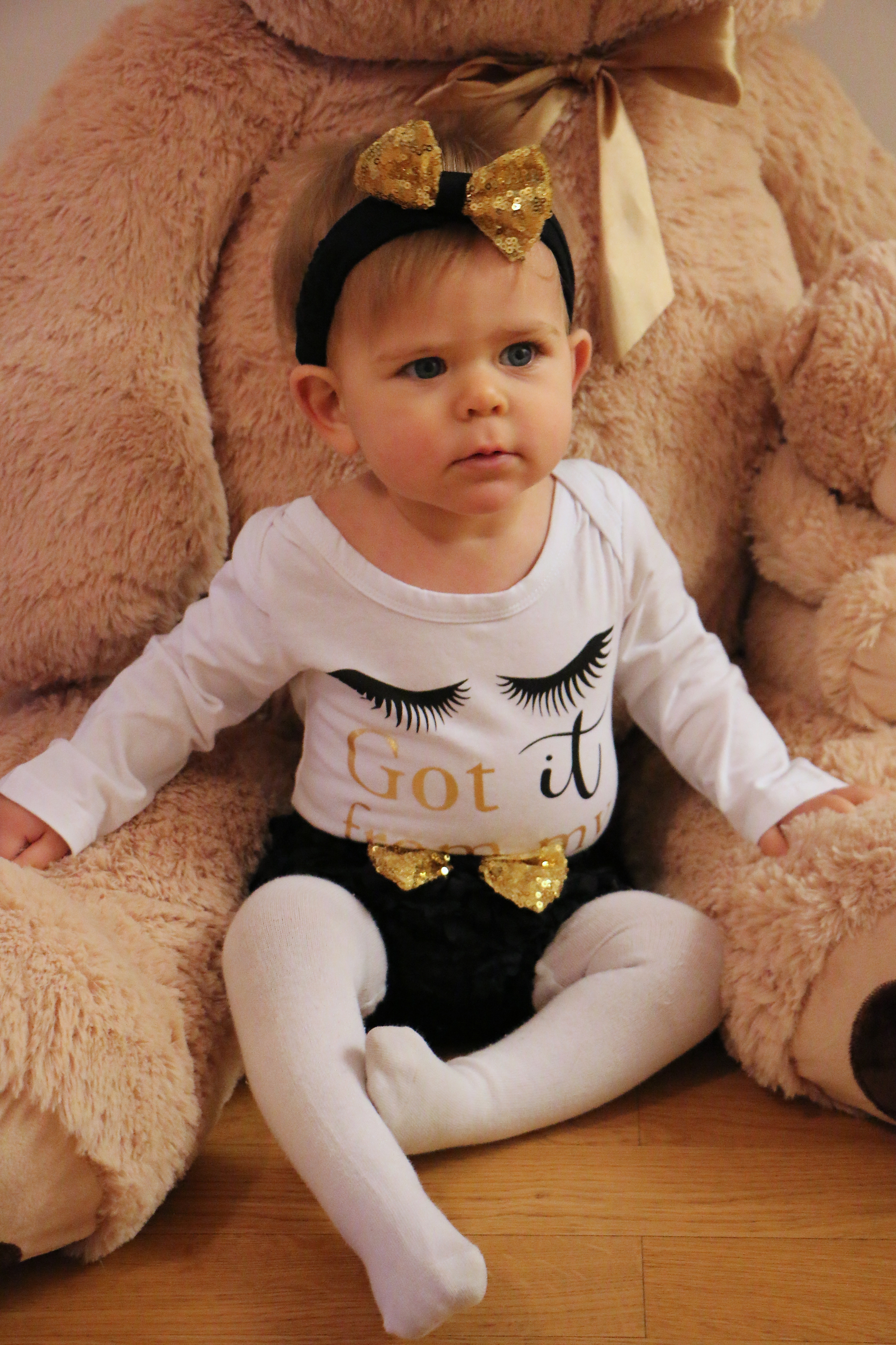And the Baby girl’s eyelash printed long sleeve bodysuit with sequin flower panties and headband Set…