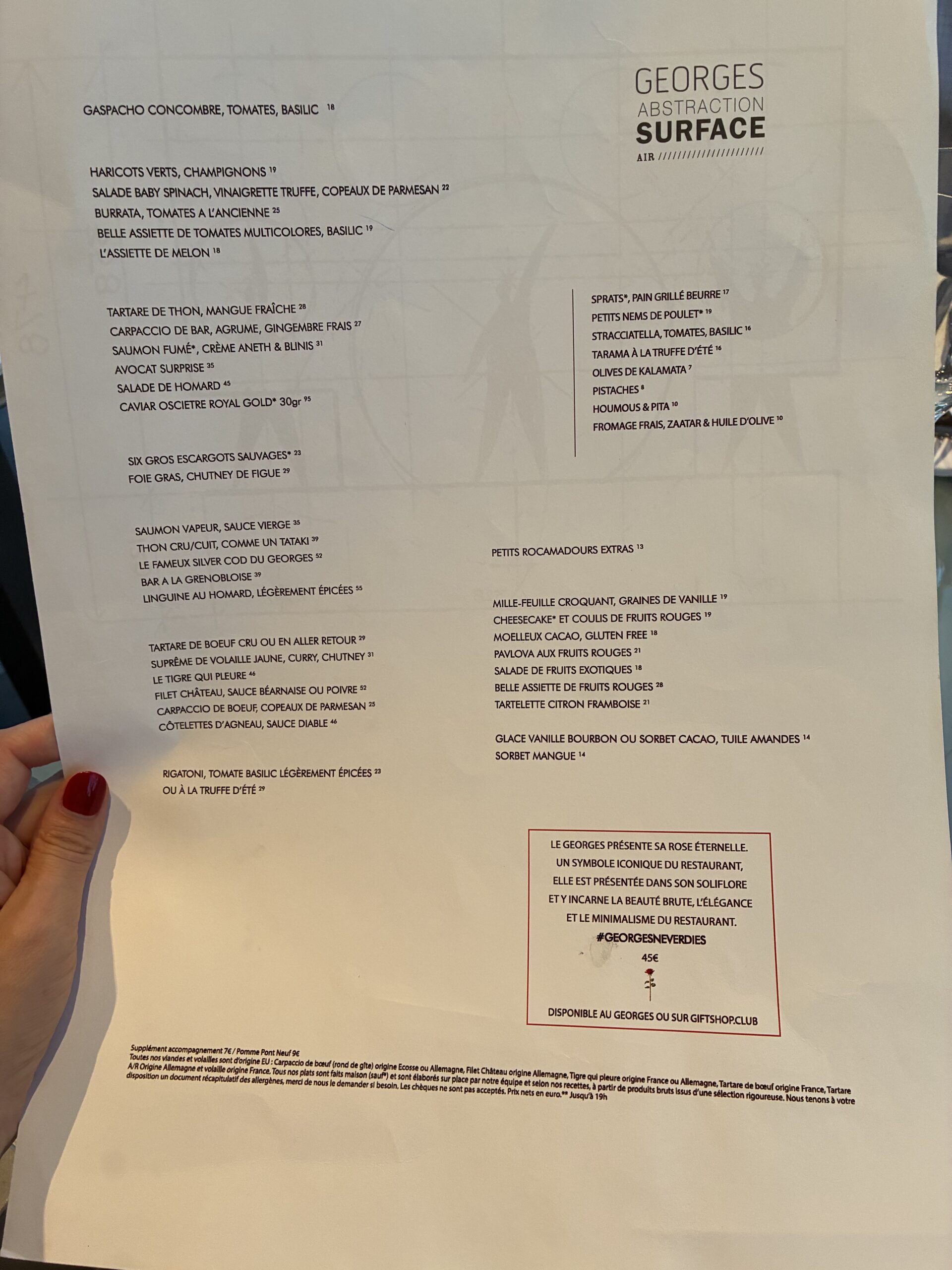 I personally love restaurants with stunning views, and if you succeed in getting a table next to the window, the Georges restaurant is definitely on my top 10 list of favorite Parisian restaurants with a view.