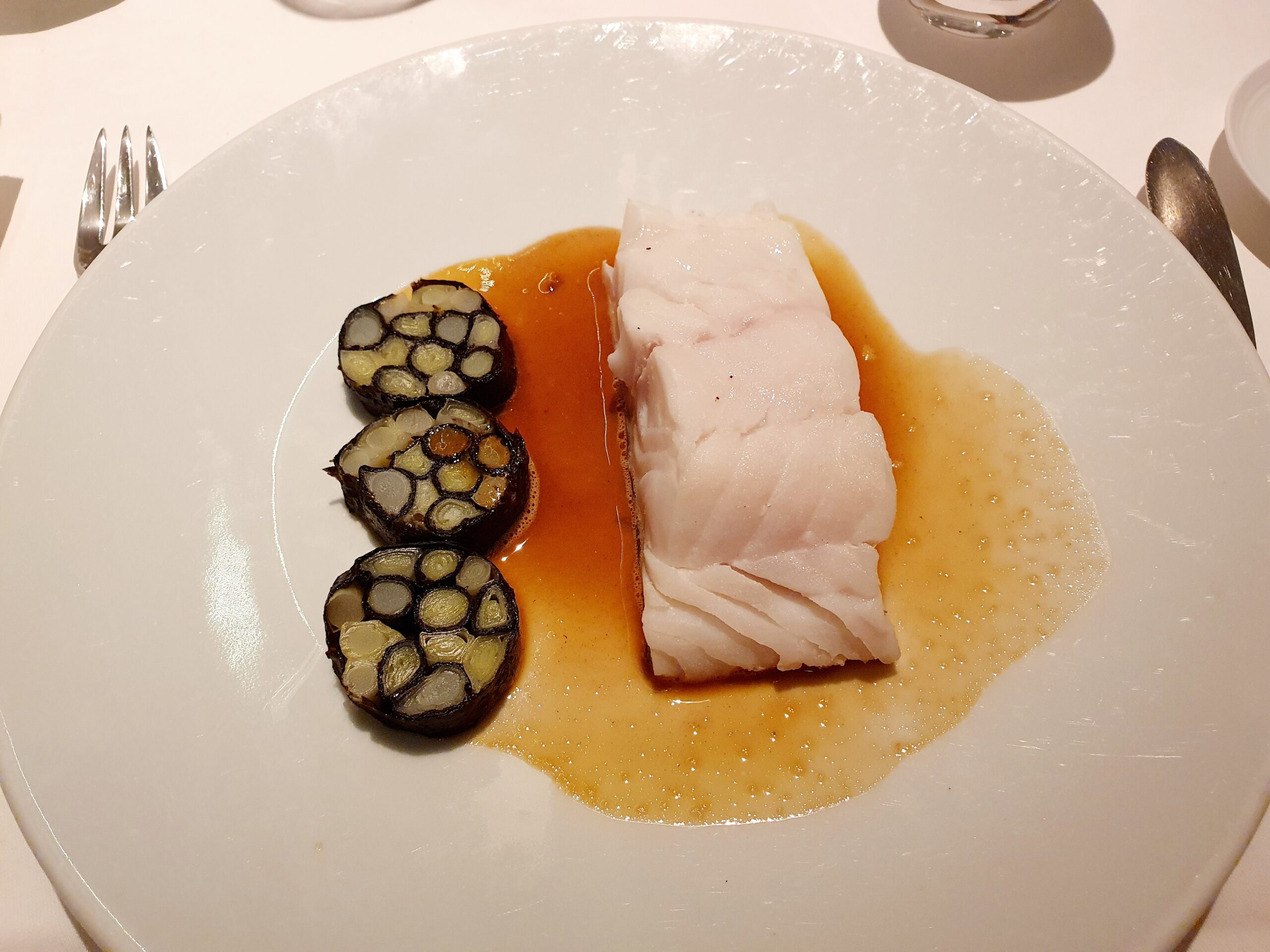 For a main course, try the back of cod which is cooked to perfection and served with carots, risotto, strong brown crab jus, nori seaweed and pencil leeks.