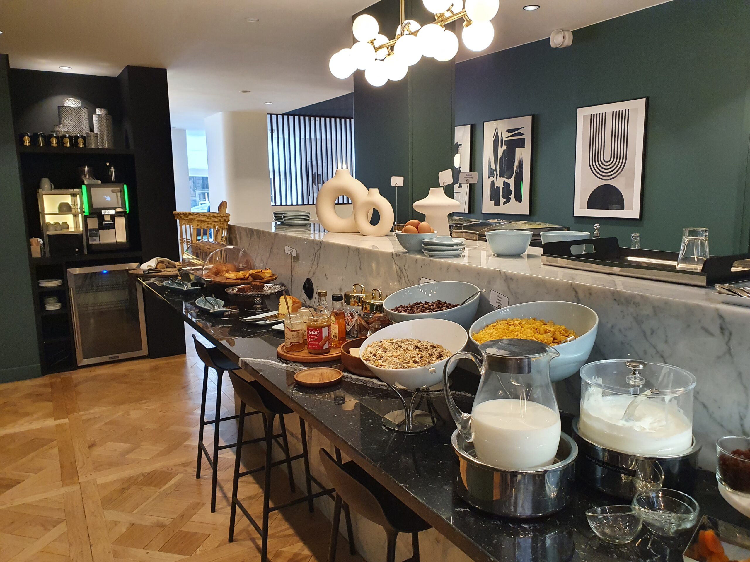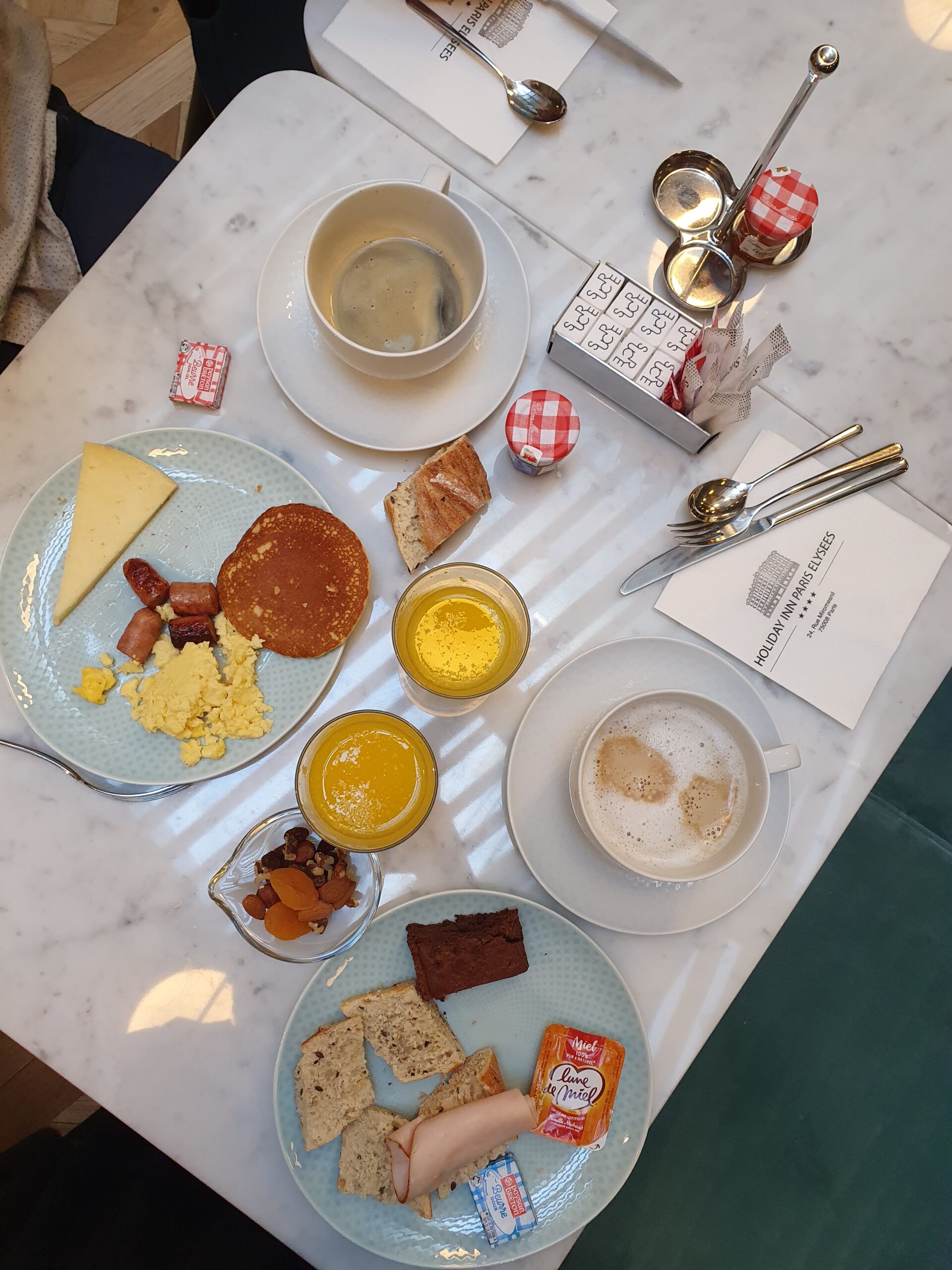 …there was everything from tea, coffee, bread, pastries, cereal, fresh fruit, fruit juice, hot meals including beans, bacon, sausages, eggs and potatoes, dairy products and cold meats. Amazing for breakfast lovers like me!