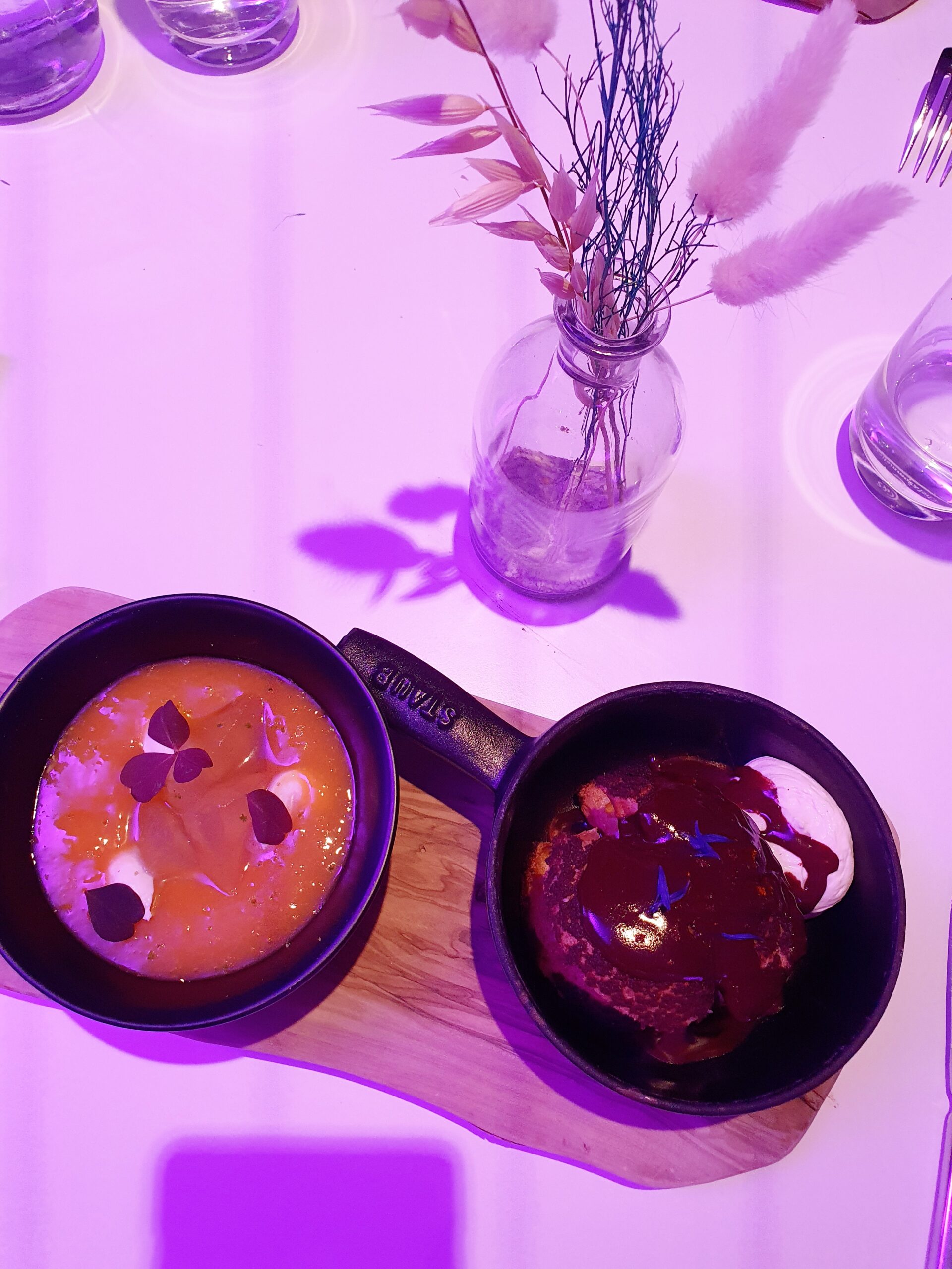 And next to it, a mango soup with aloe vera and mascapone chantilly. Surprising, creative and good
