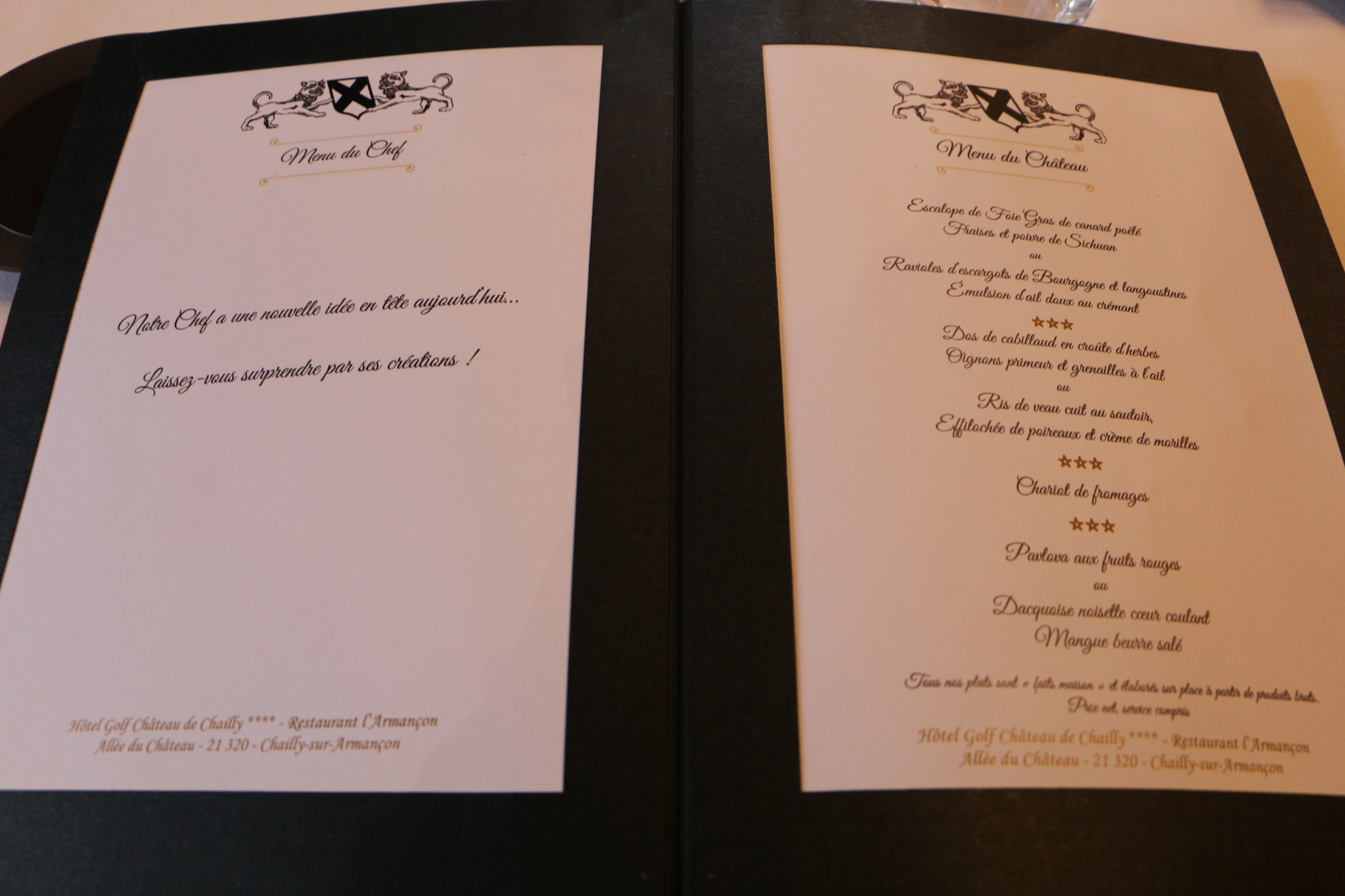 We had the “Menu du Château” prepared by the chef Jean-Alain POITEVIN.