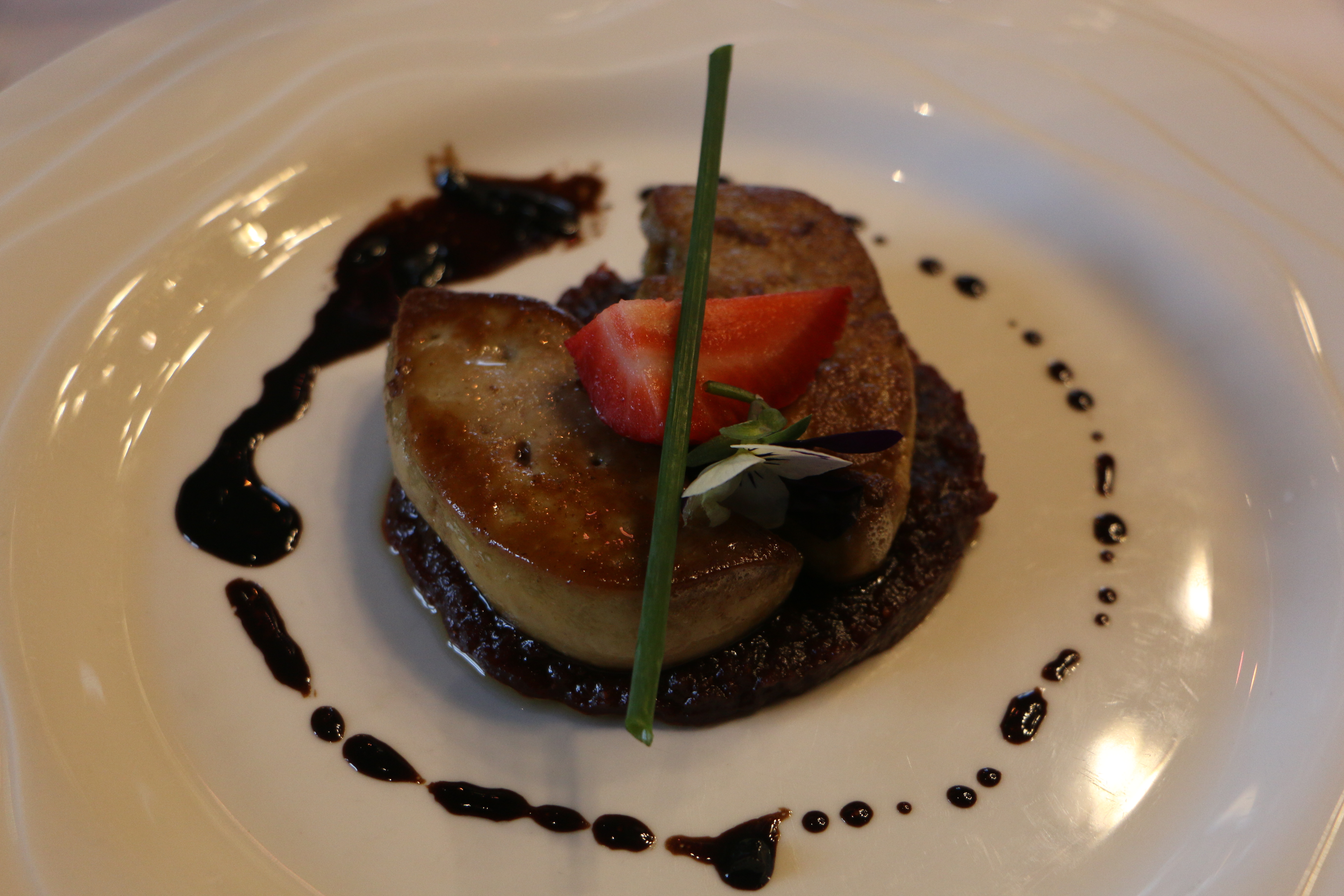 The starter consisted of a warm fois gras served on a thin strawberry puree. A good contrast to the classic cold fois gras. These two ingredients formed a perfect companionship and left a rather unique taste in the mouth.