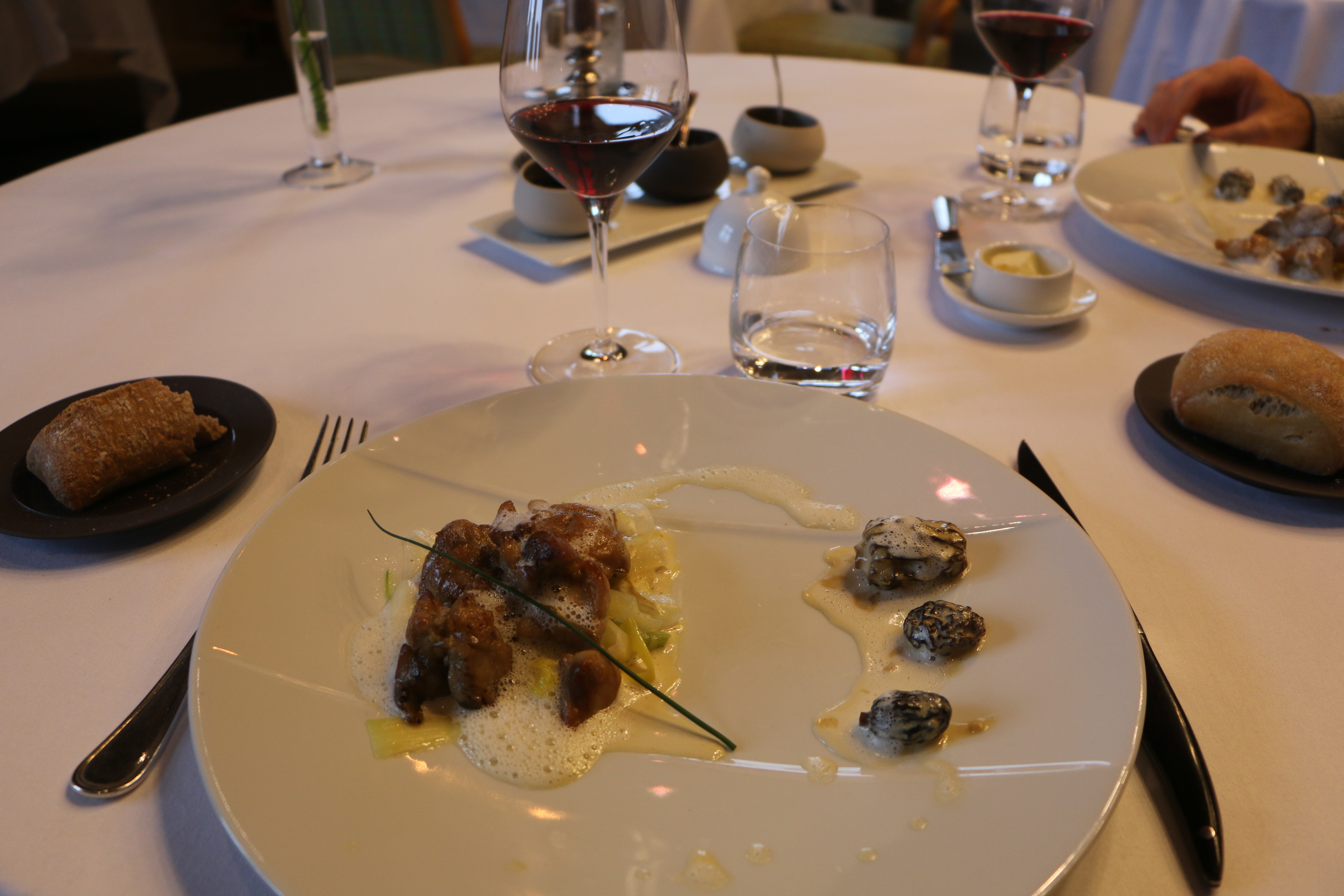 The main course was an amazing veal served on leeks with a delicious morel mushroom cream.
