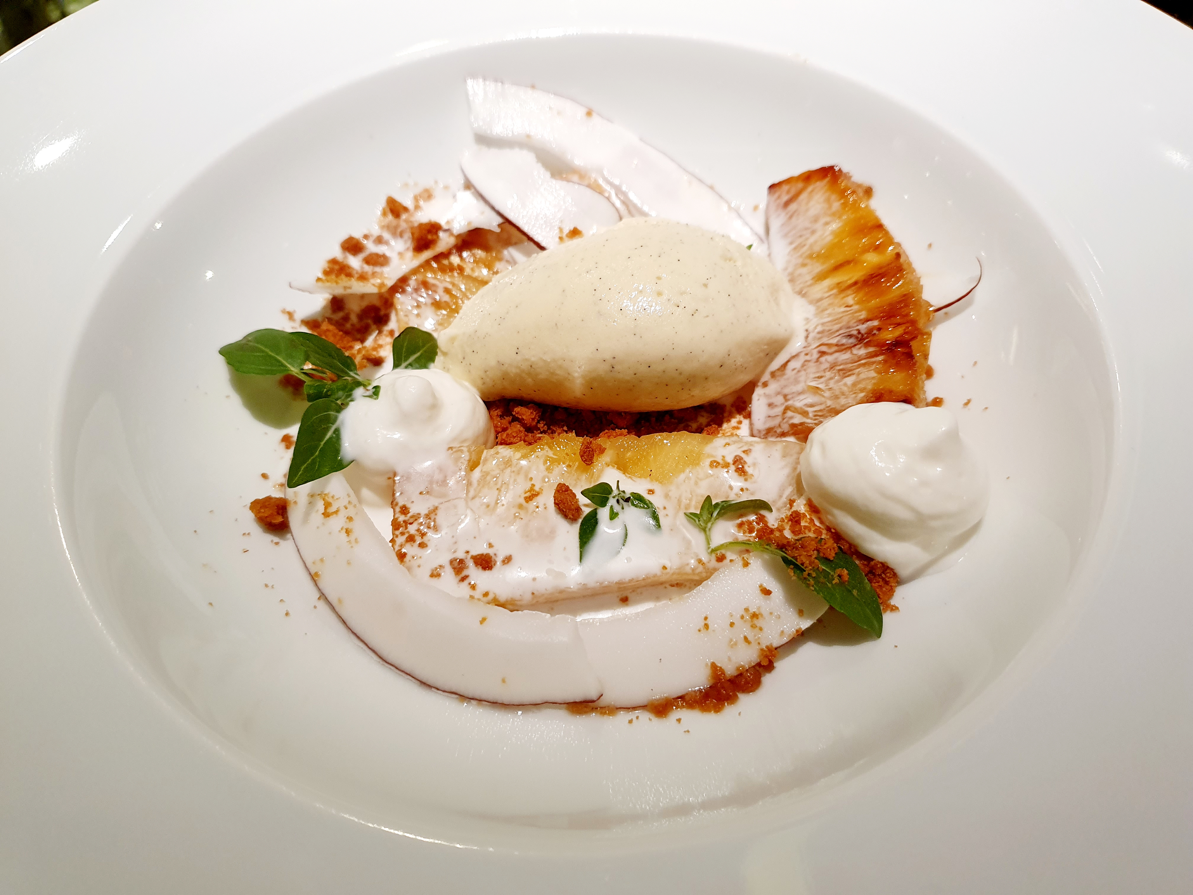 My absolute favorite was the dessert … what a masterpiece: Vanilla ice cream with coconut, toasted caramelized pineapple, Specolos, coconut milk and mint leaves. An unstoppable journey for all senses. Really good.
