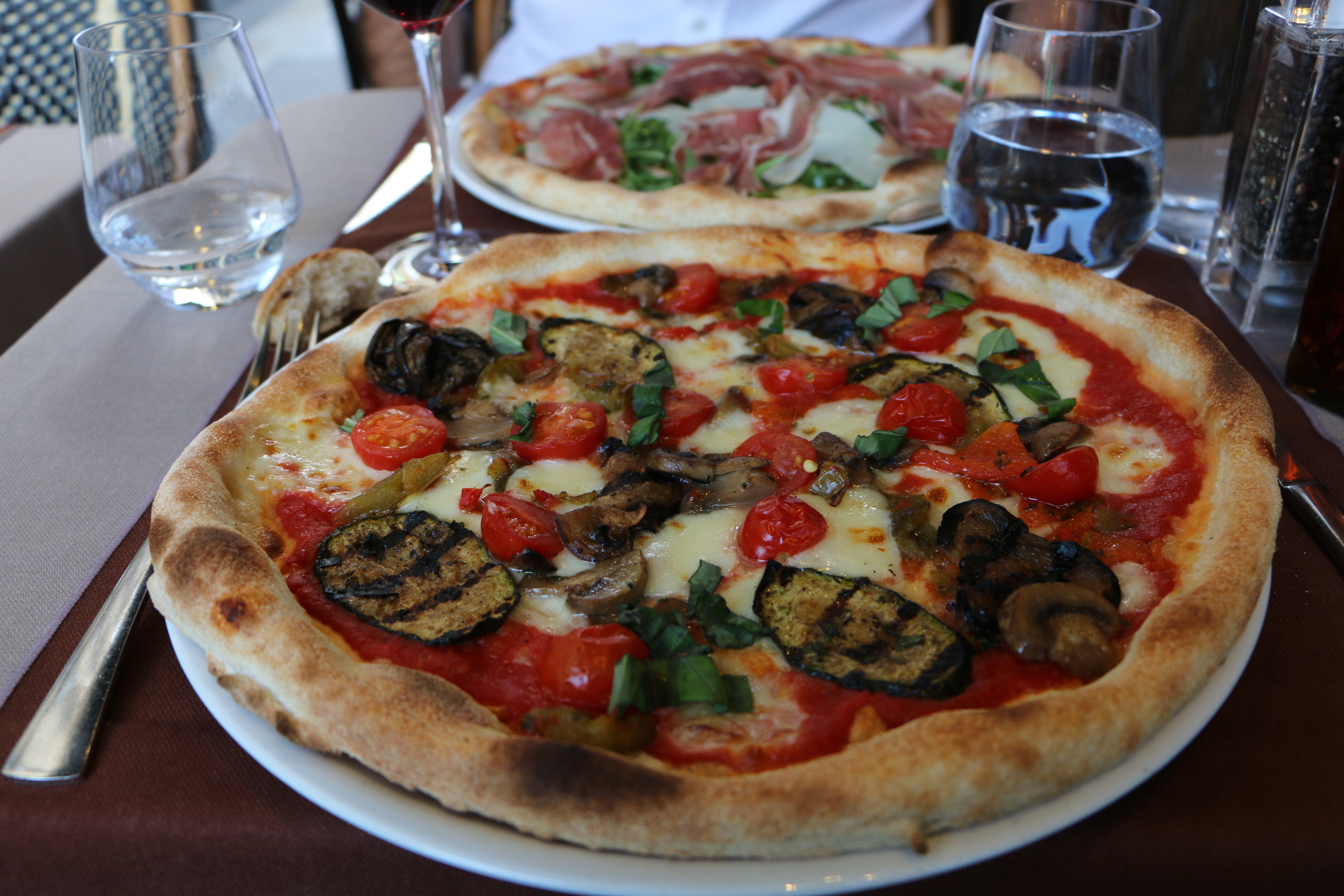 And the pizza “Vegetariana” with Cherry tomatoes, mozzarella, aubergines, mushrooms ,courgettes, pebber and basilica as a main course.