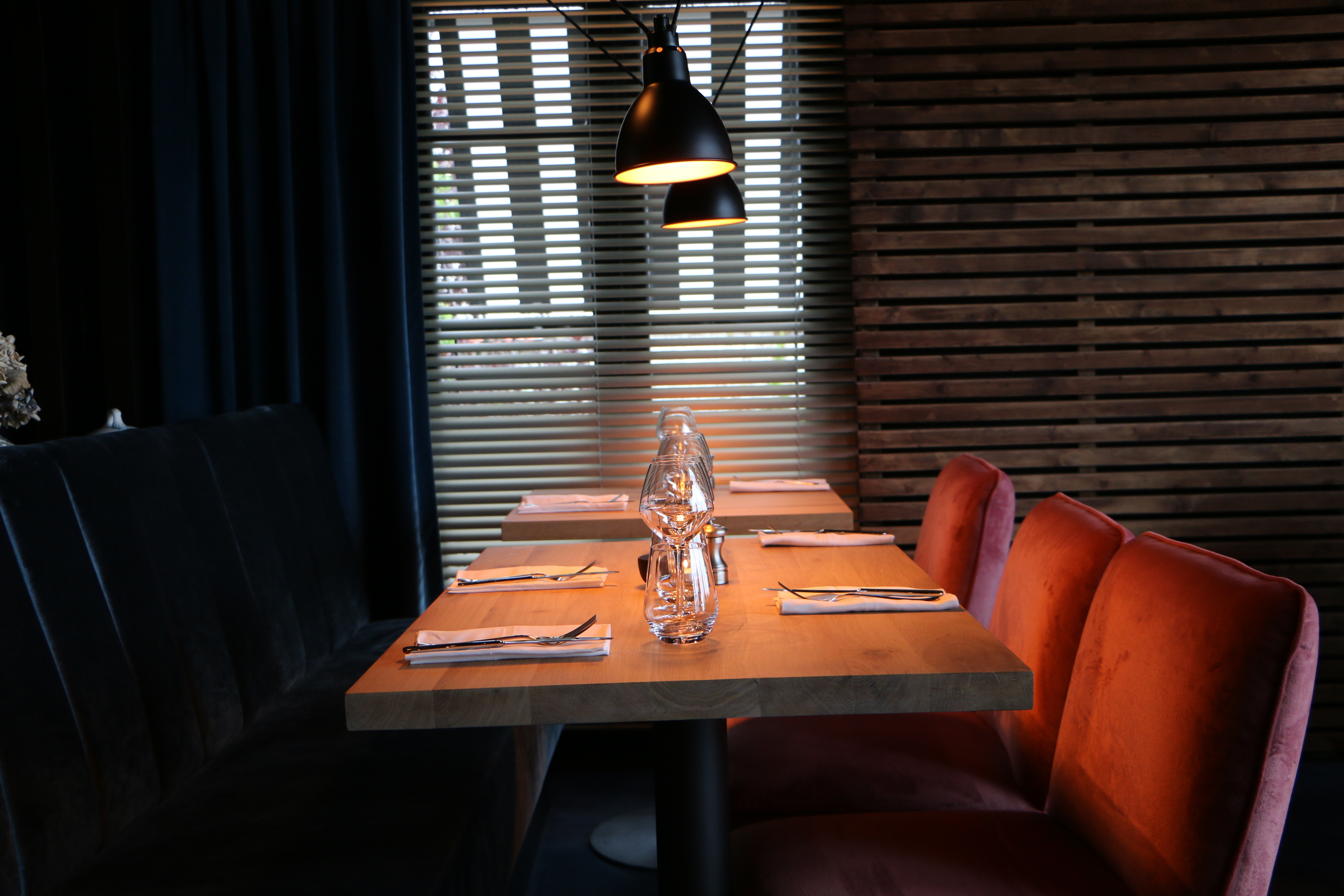 The subtle blend of wood and velvet, combined with original colors, creates a warm and contemporary atmosphere; Sublimated by sophisticated acoustics and a cozy lighting.