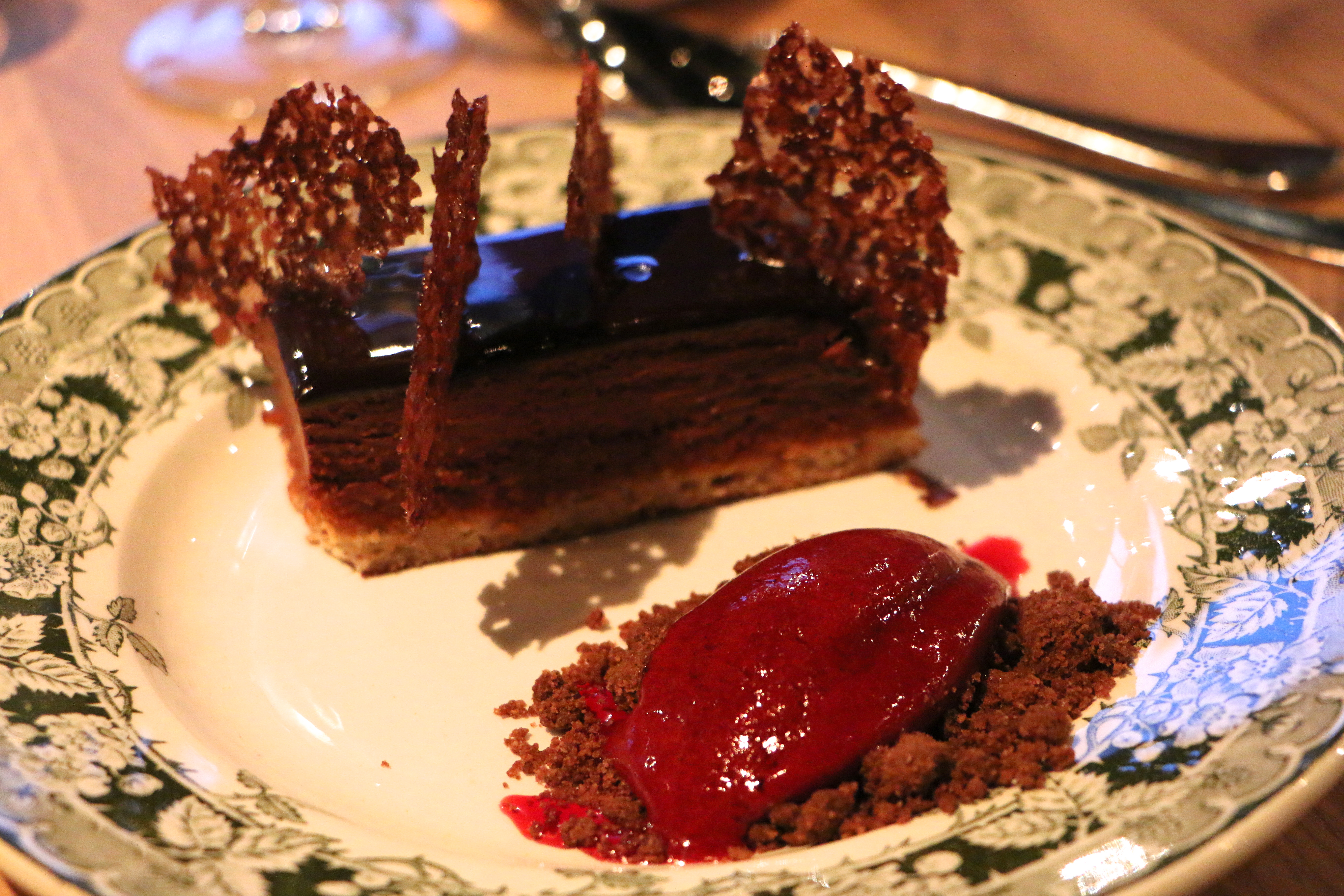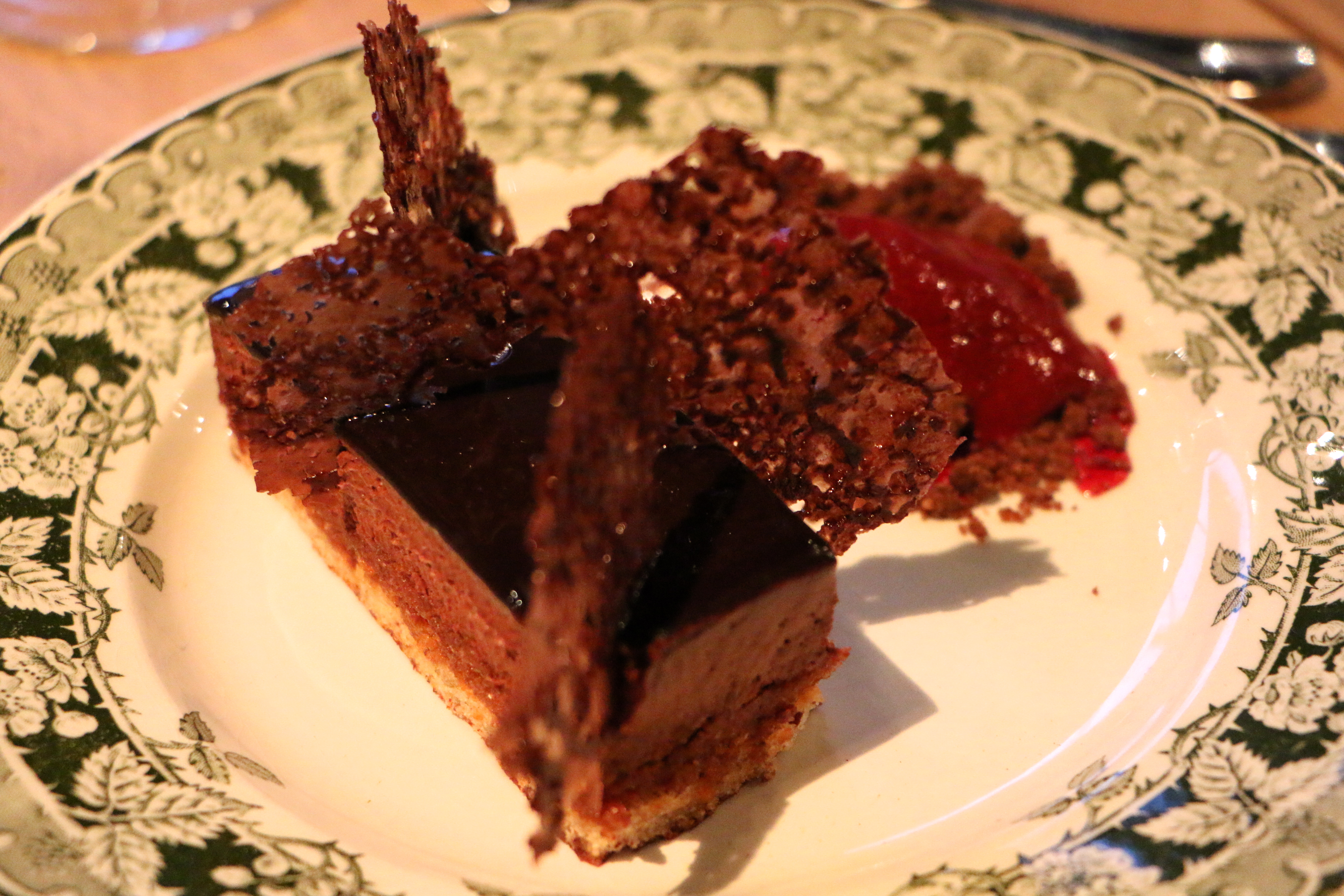 La Haut suresnes restaurantA very tender duck breast…La Haut suresnes restaurant And very tasty chocolate mousse, with praline and crispy nuts.La Haut suresnes restaurant IMG_4008  And as the night falls and the lights are lit around La Defense, the skyline view appears and a romantic ambience appears in the restaurant ´La Haut´.