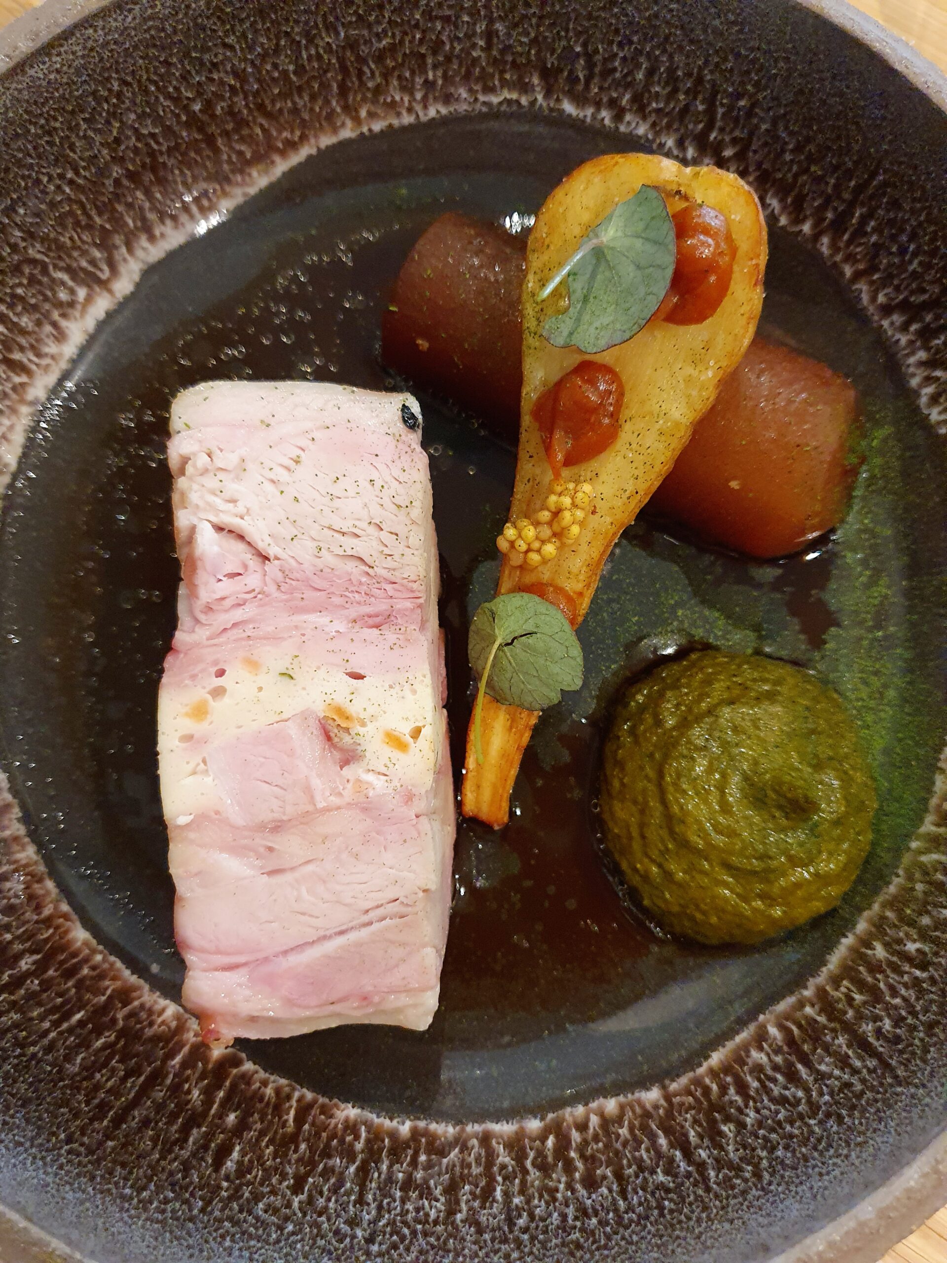 This was followed by a terrine with crunchy hazelnuts : exceptionally flavorful, enhanced by a slightly spiced jam. Light yet rich. A truly delightful starter.