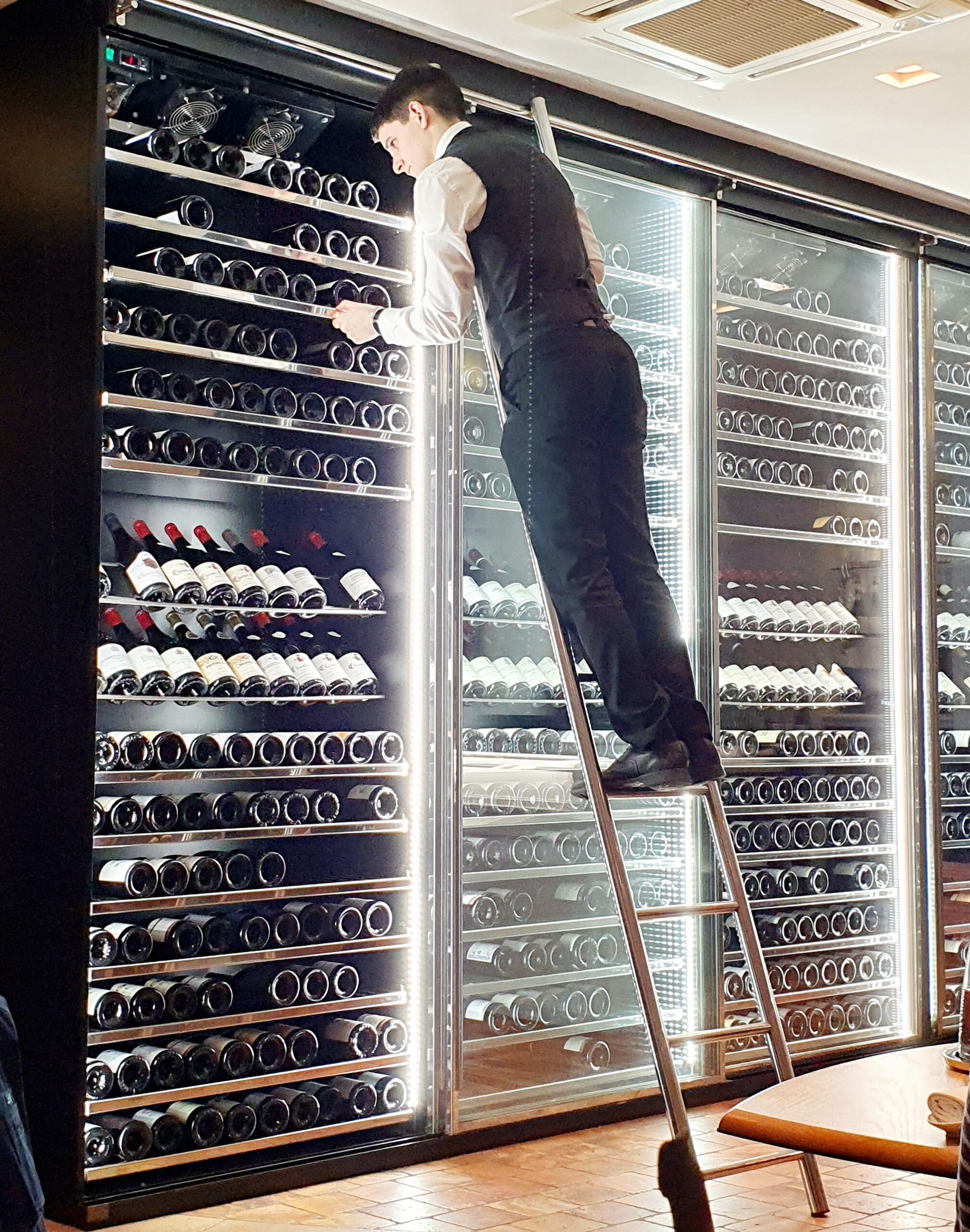 On the wall a giant wine cooler, filled with some of the best Burgundy wines, was seducing the guests.