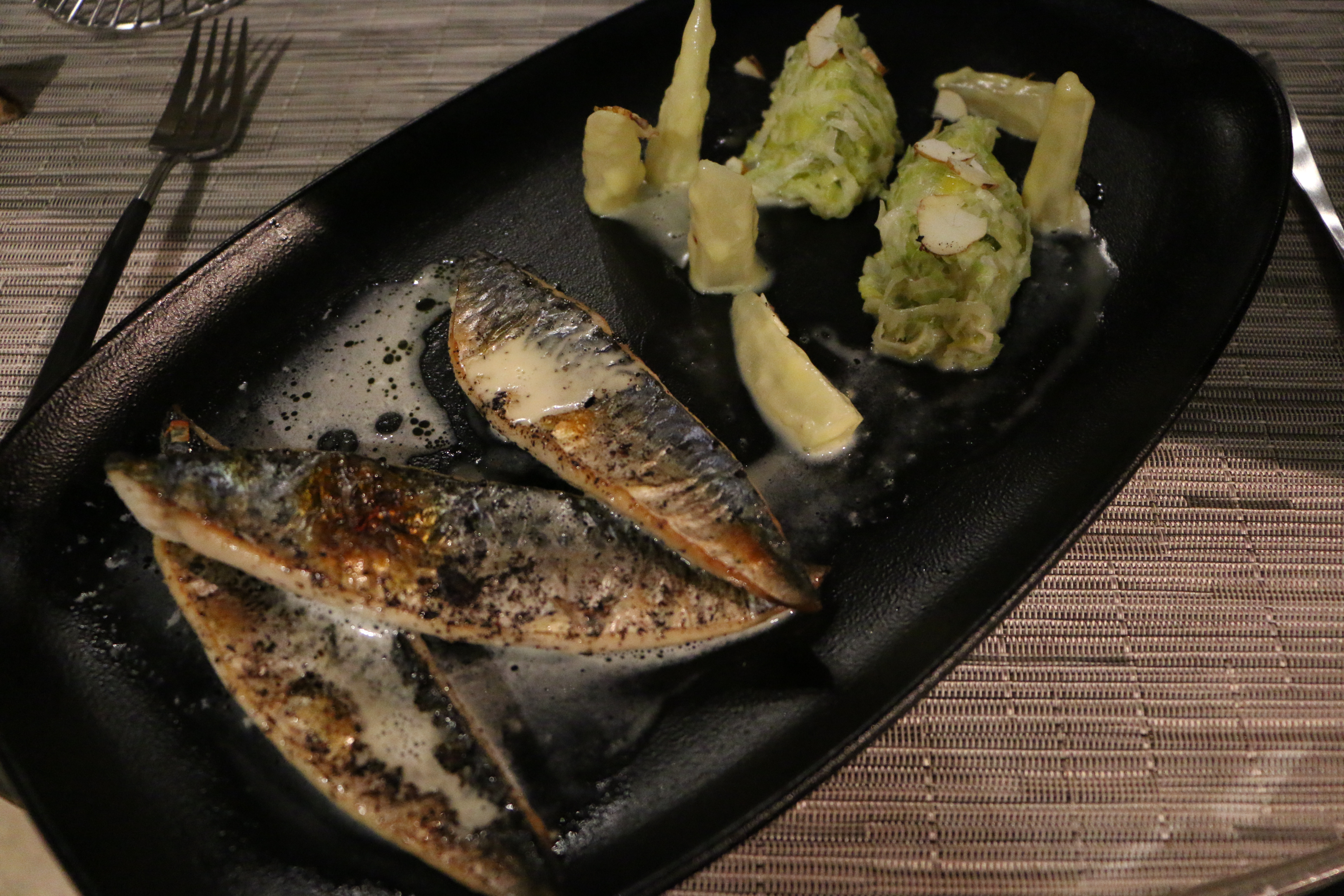 At one point I had to go back unfortunately, but as I arrived at the bottom of the mountain near the big lakes, I was met by a pleasant surprise…a golden mackerel fillet with black lemon accompanied by creamy leeks.