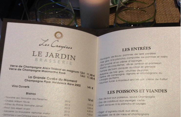 Once I opened the menu I discovered a large choice of dishes, and a great wine list with many champagne references!! Quit difficult to choose…