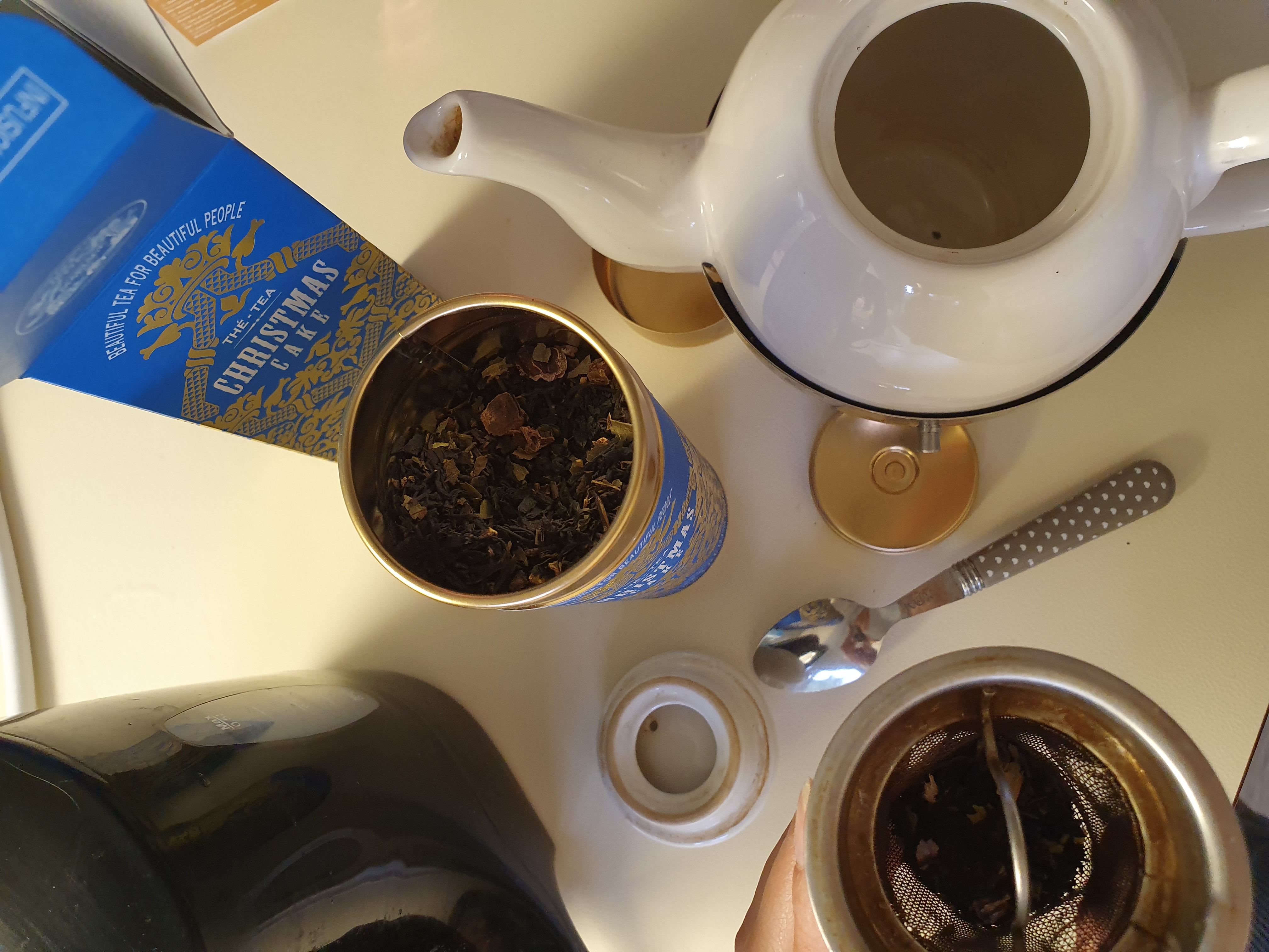 The “Noël in love” is a fragrant blue tea, sweet with fruity notes of hazelnuts, citrus fruits and candied fruit wrapped in irresistible accents of nougat and calisson. Delicious.