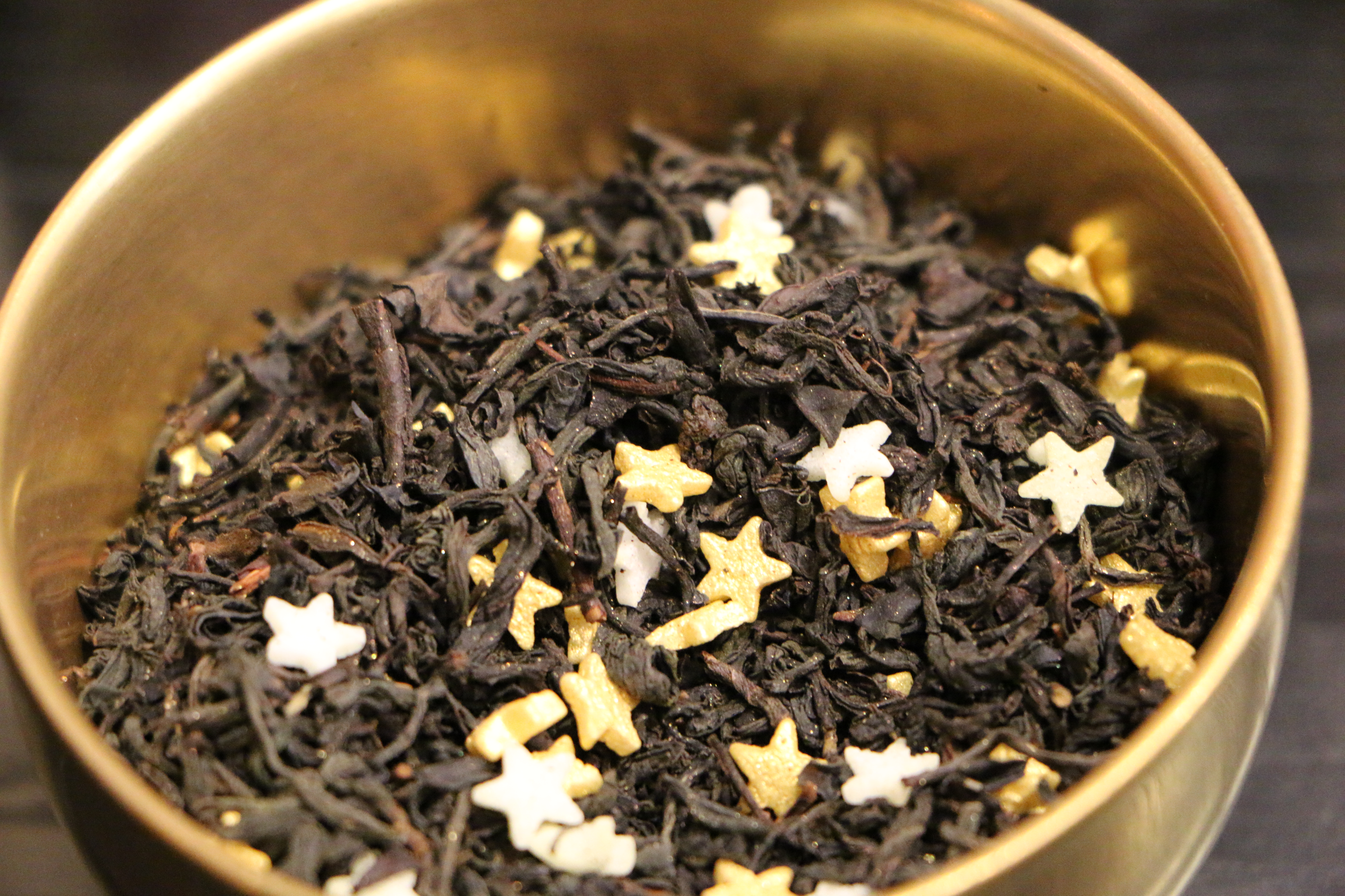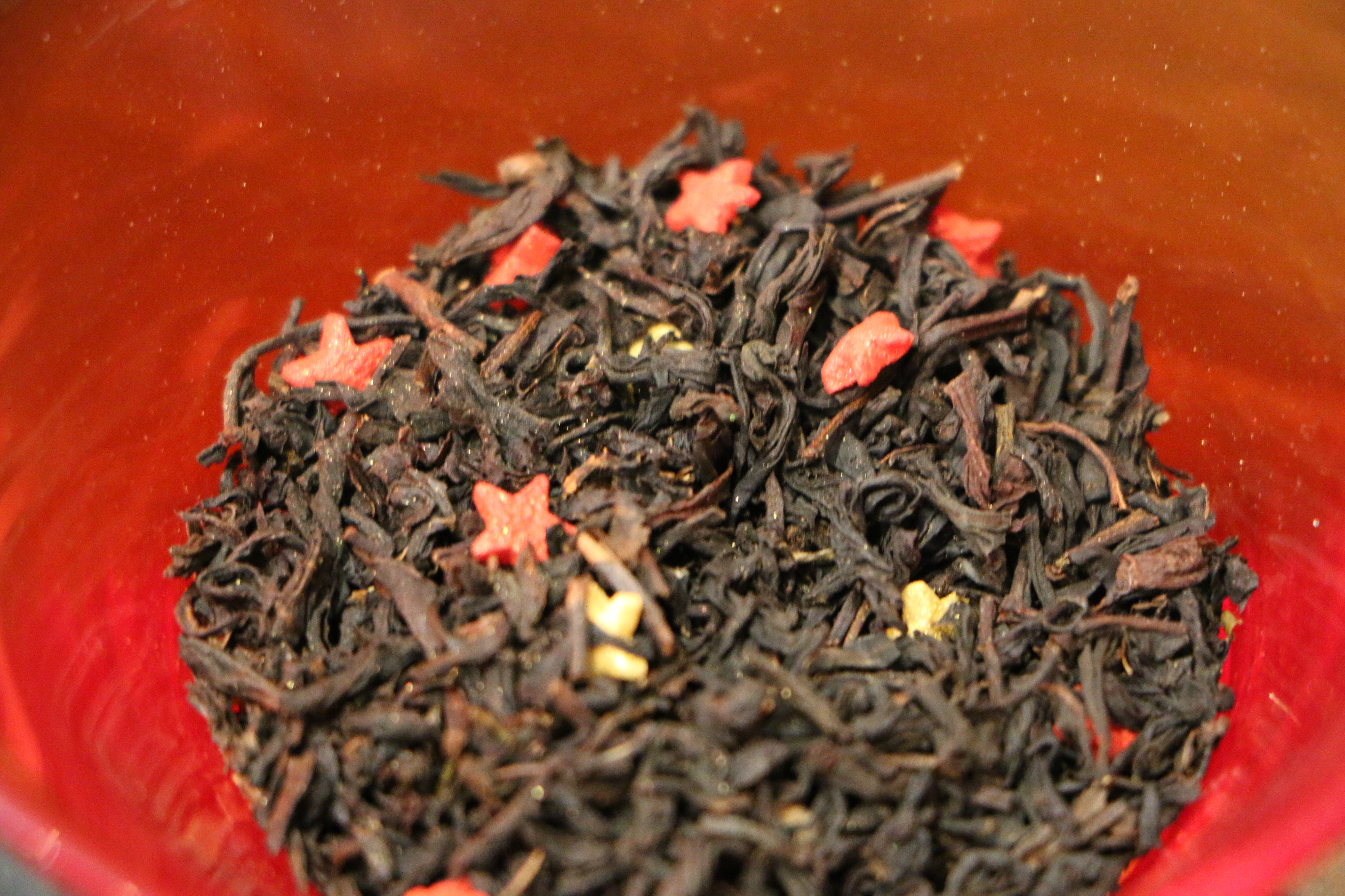 – The Black tea, with a touch of orange, cannelle and vanilla, spread its Christmas flavor in the room as soon as it was opened… and the tiny small sugar stars were sparkling amongst the leafs….