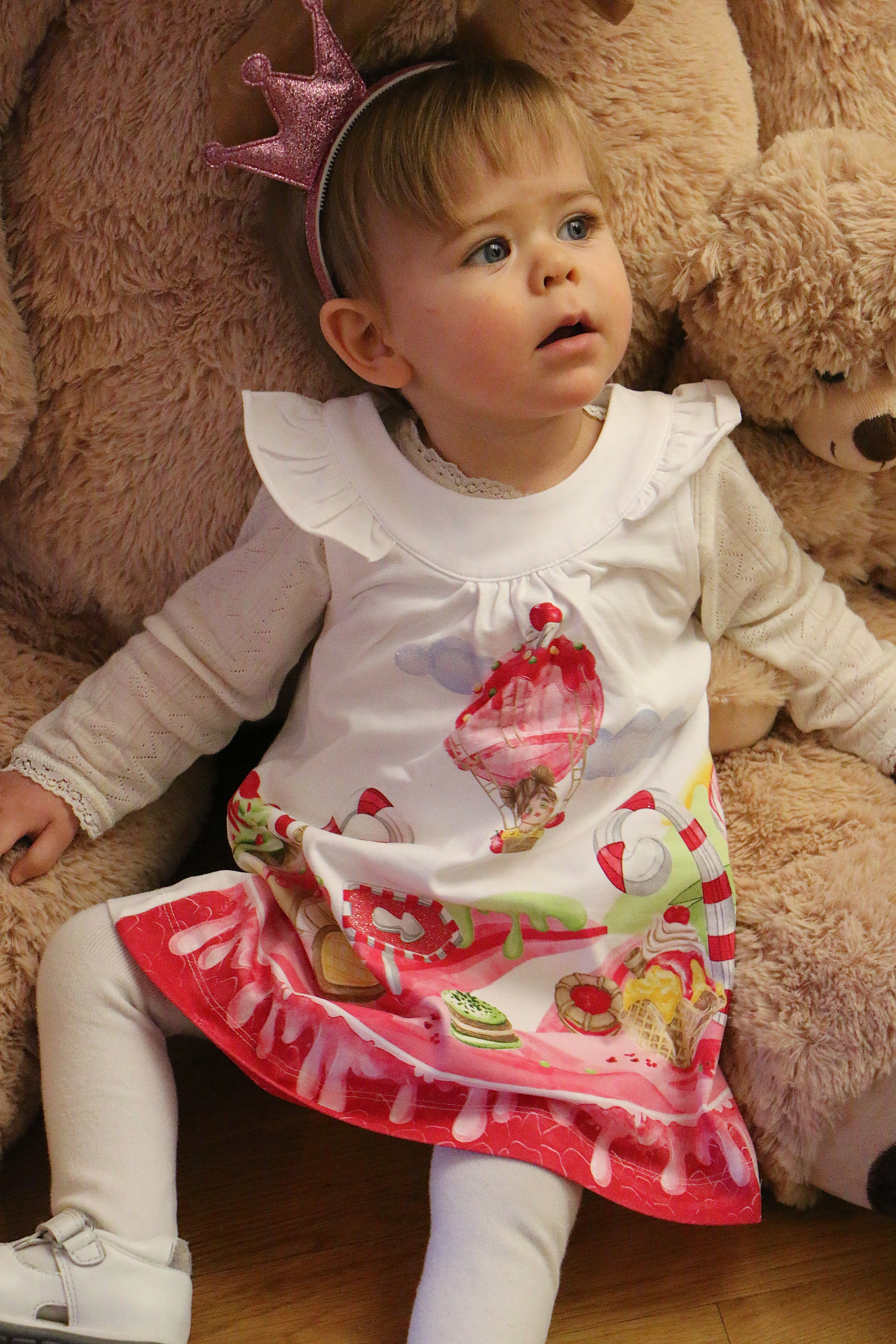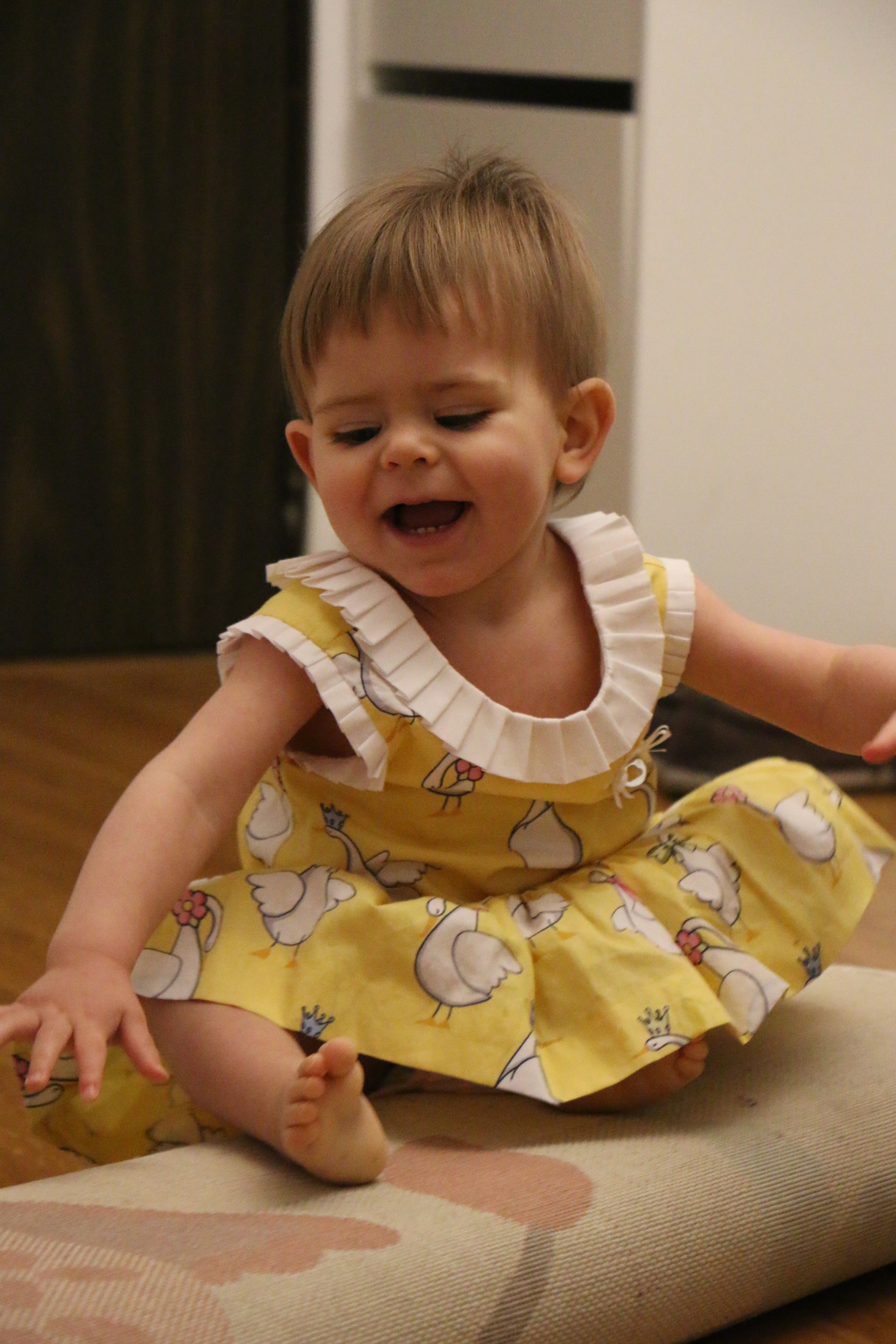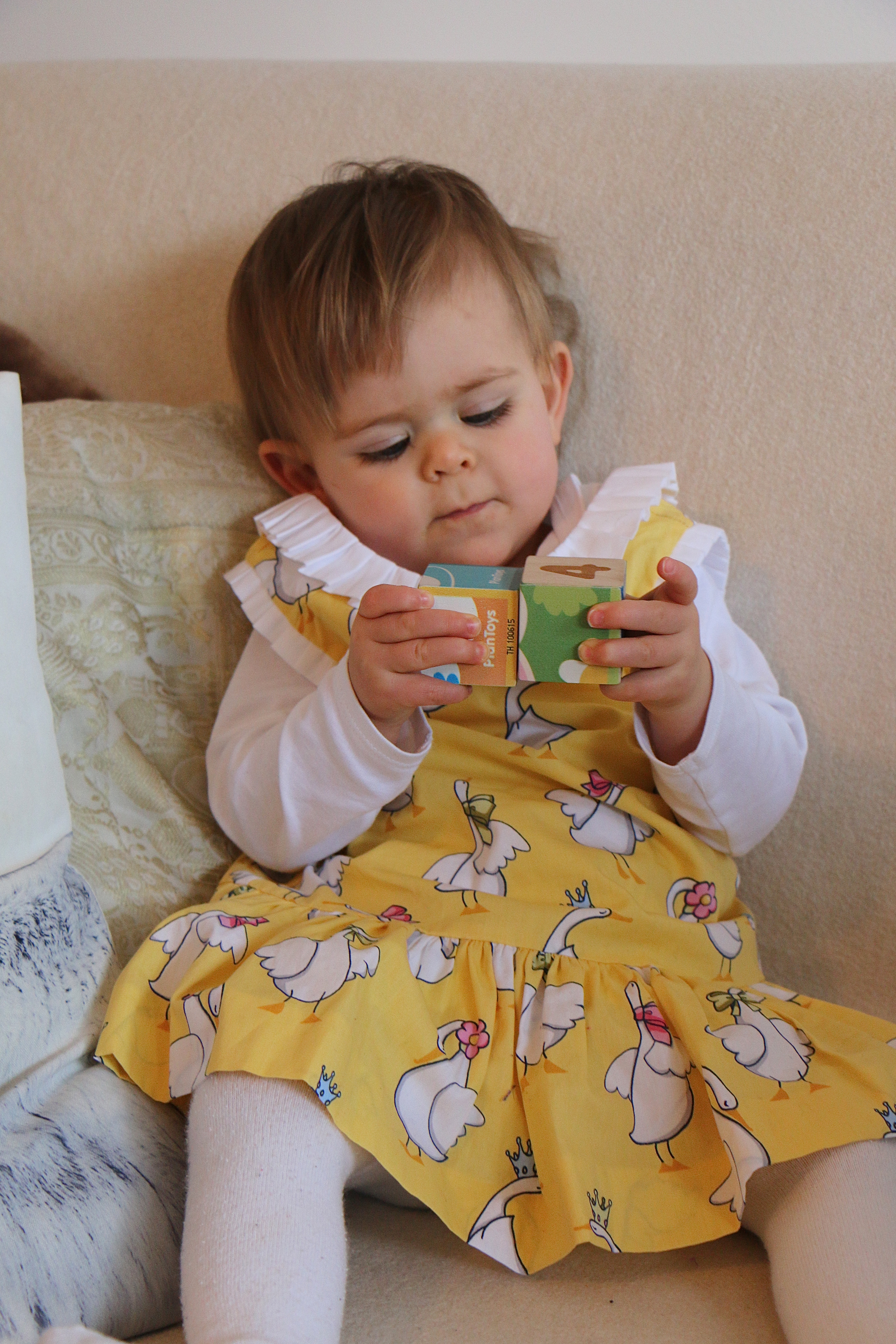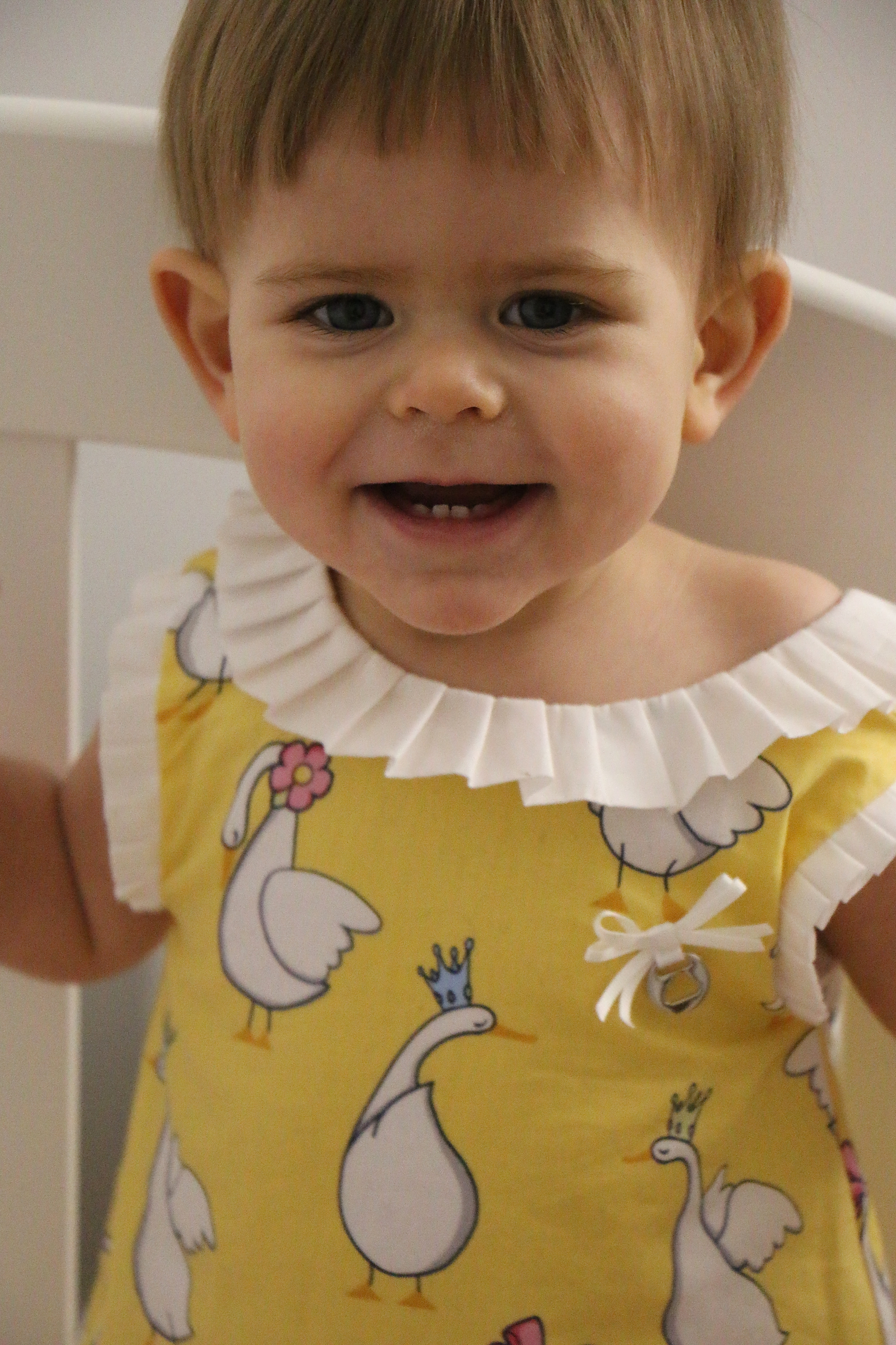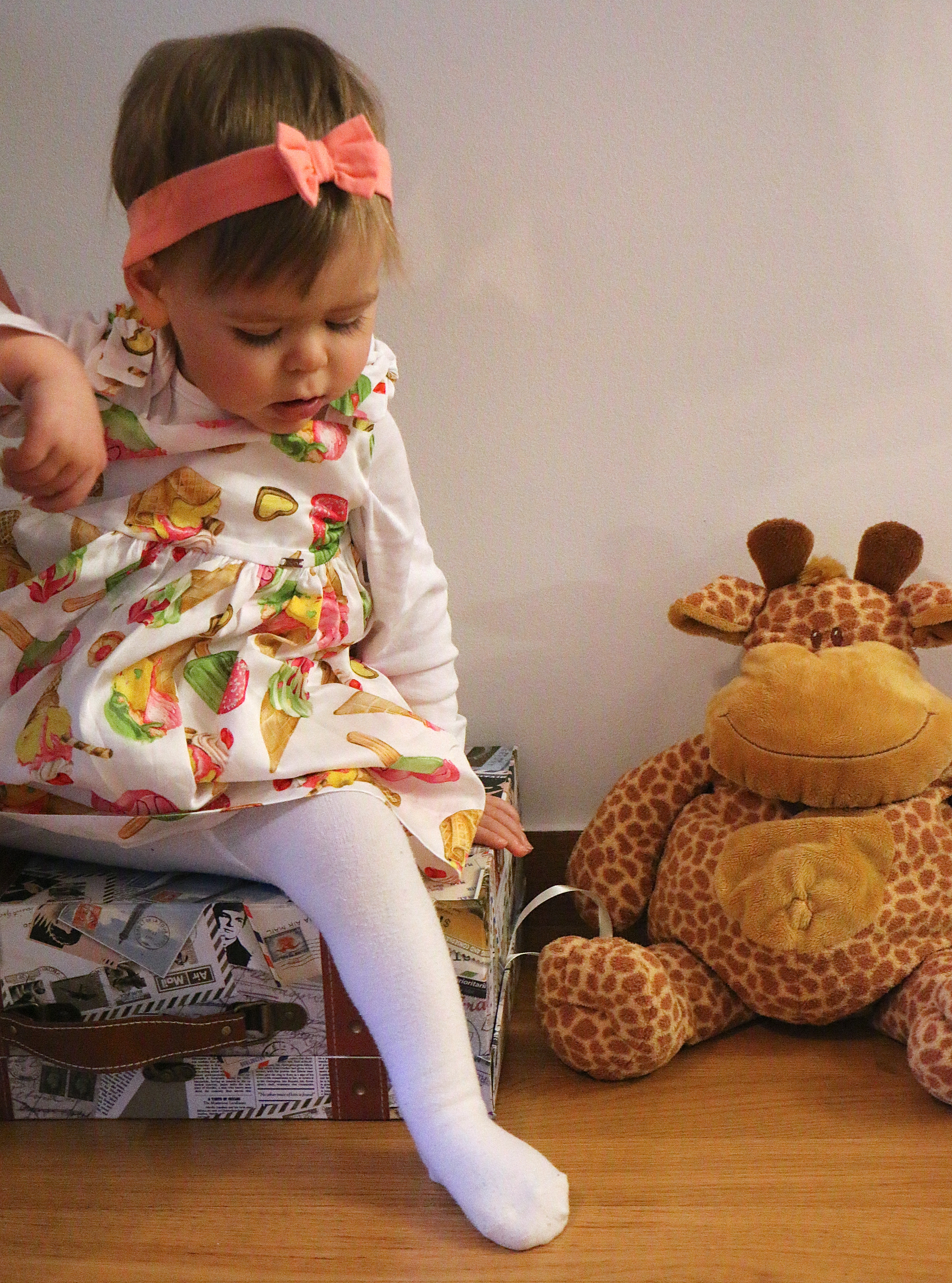 I couldn´t help falling in love with the gees print dress. Super original…and my baby girl Lucie seems to love it 🙂