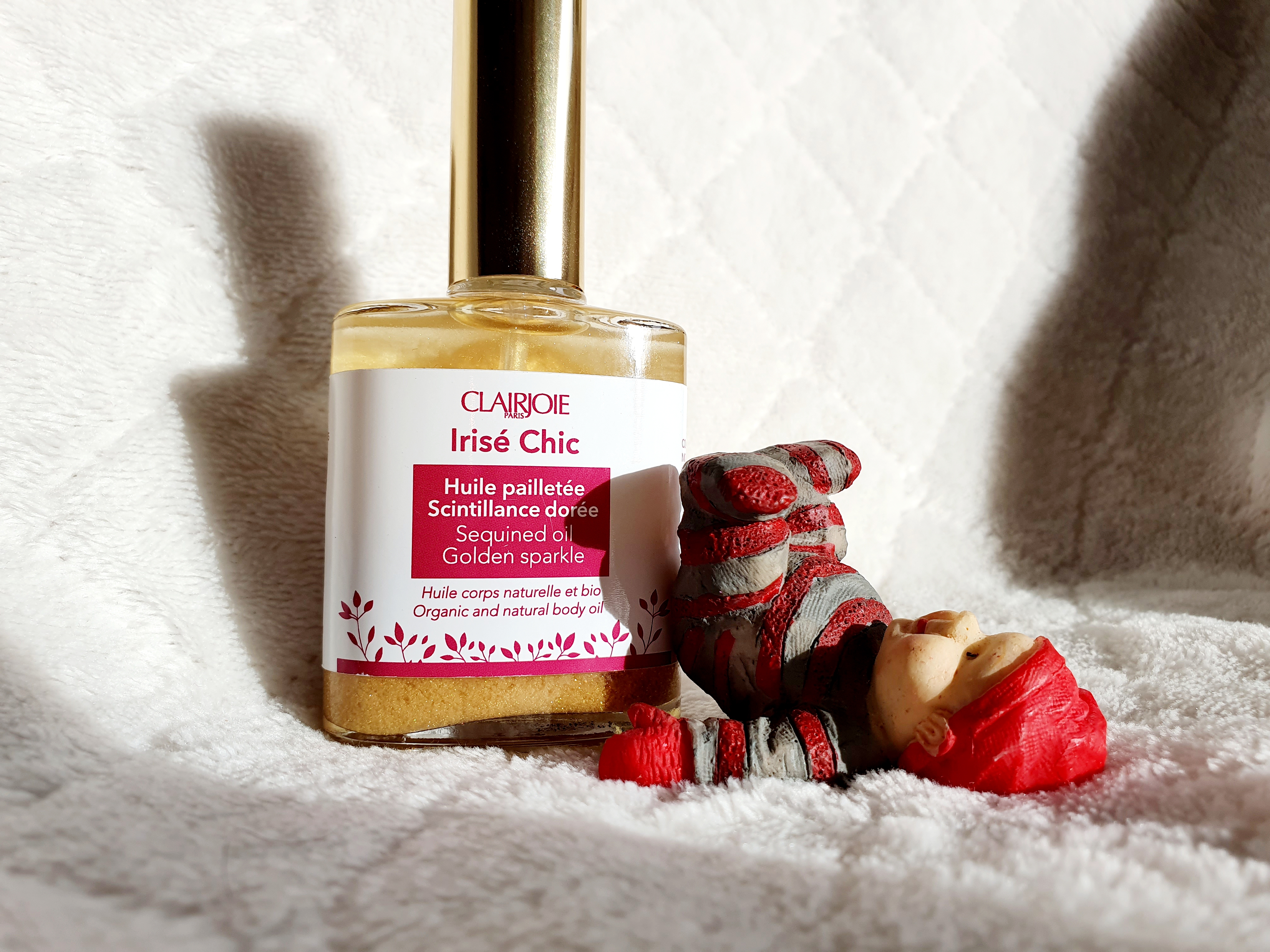 …the Organic Irisé chic sequined body oil with golden glitter! A fantastic oil that creates a thousand reflections on your skin…