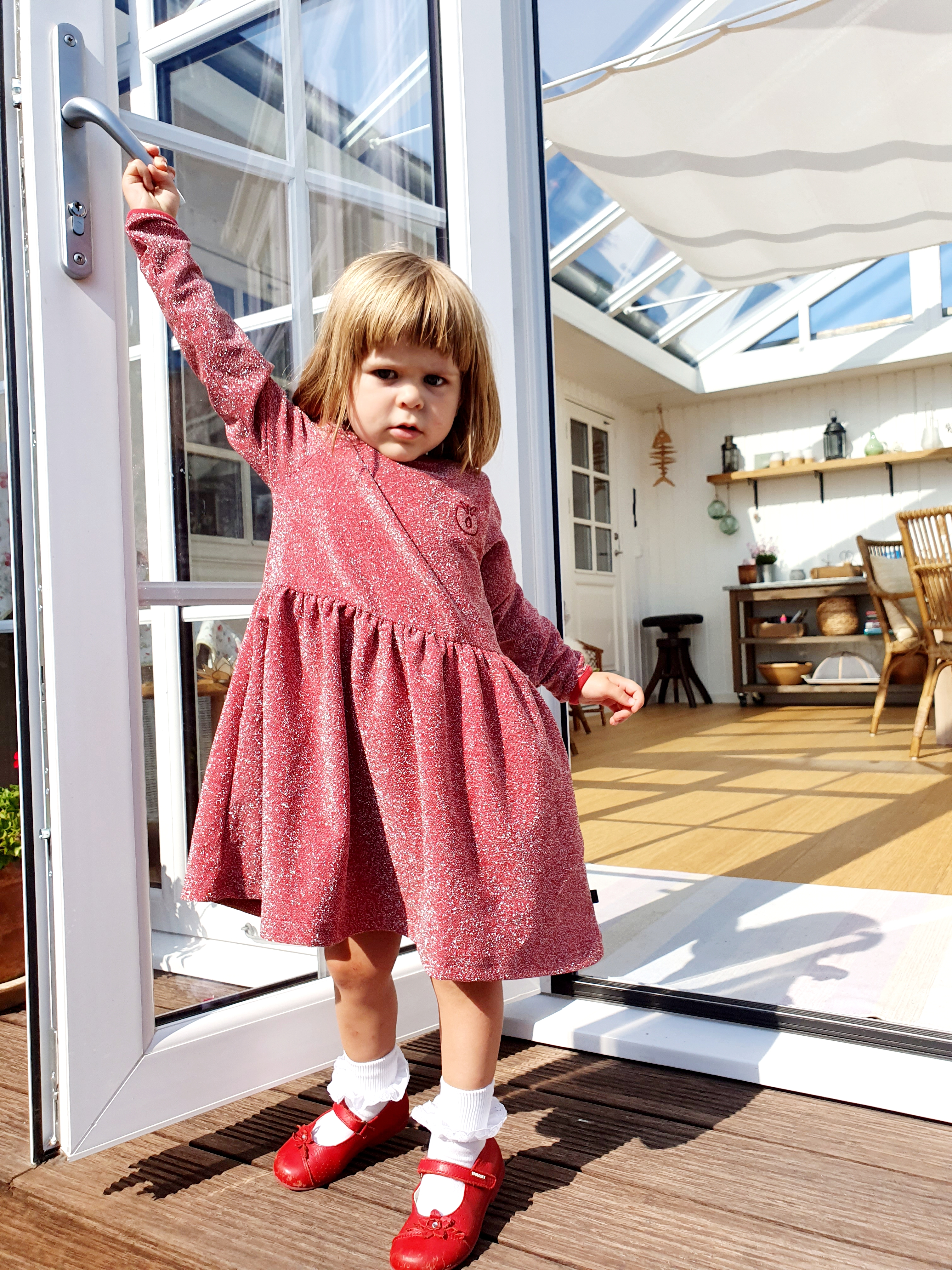 Lucie also loves the red dress with glitter and apple logo. Soooooo cute for the party. I could tell by her smile that she was crazy about it and she simply wouldn’t take it off again.
