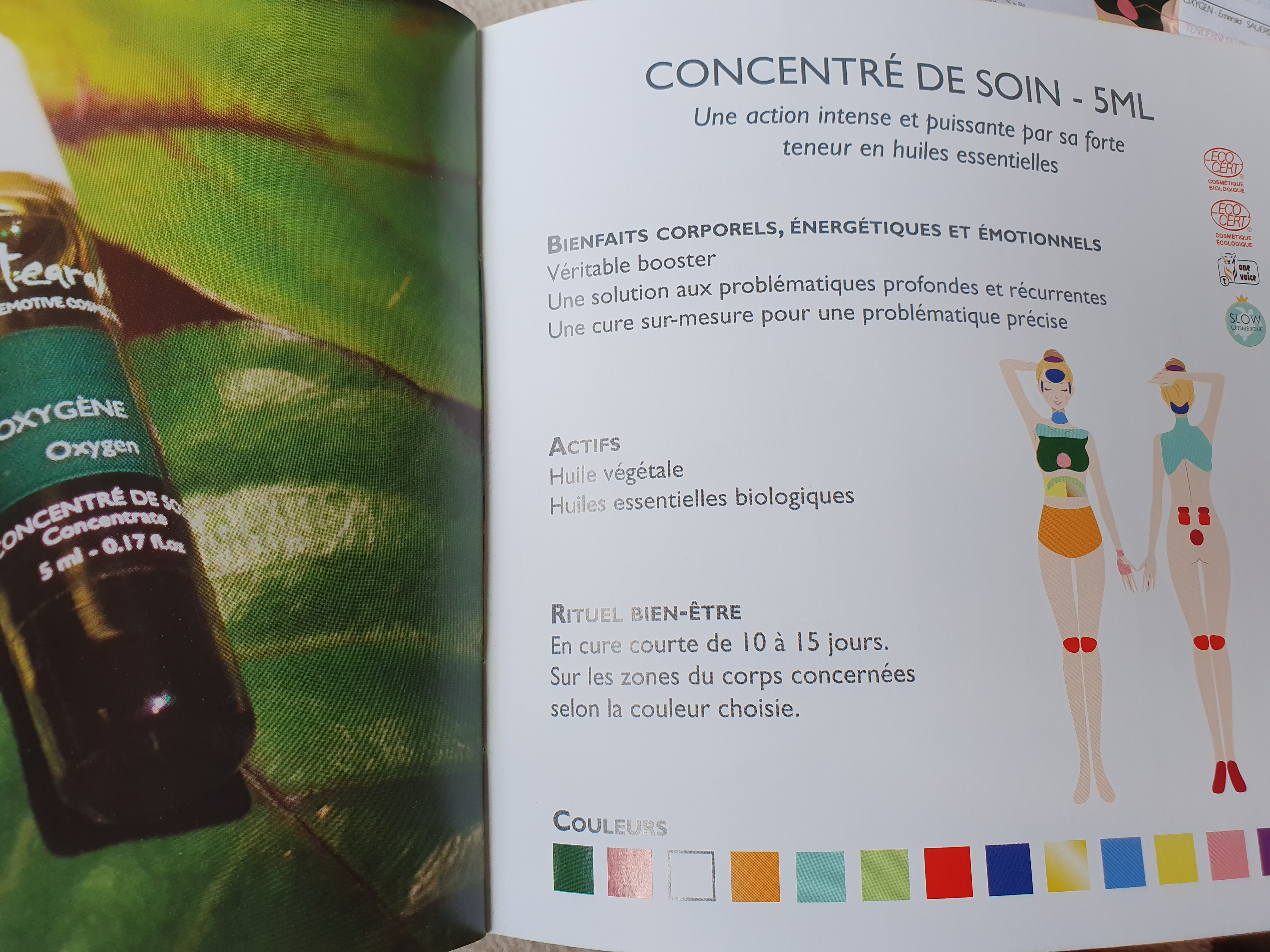 Each color significates something different…and depending on which color your choose certain essential oils have been added in order to act on your emotional level and add peace, energy or joy etc…at the same time as they bring care to your skin.