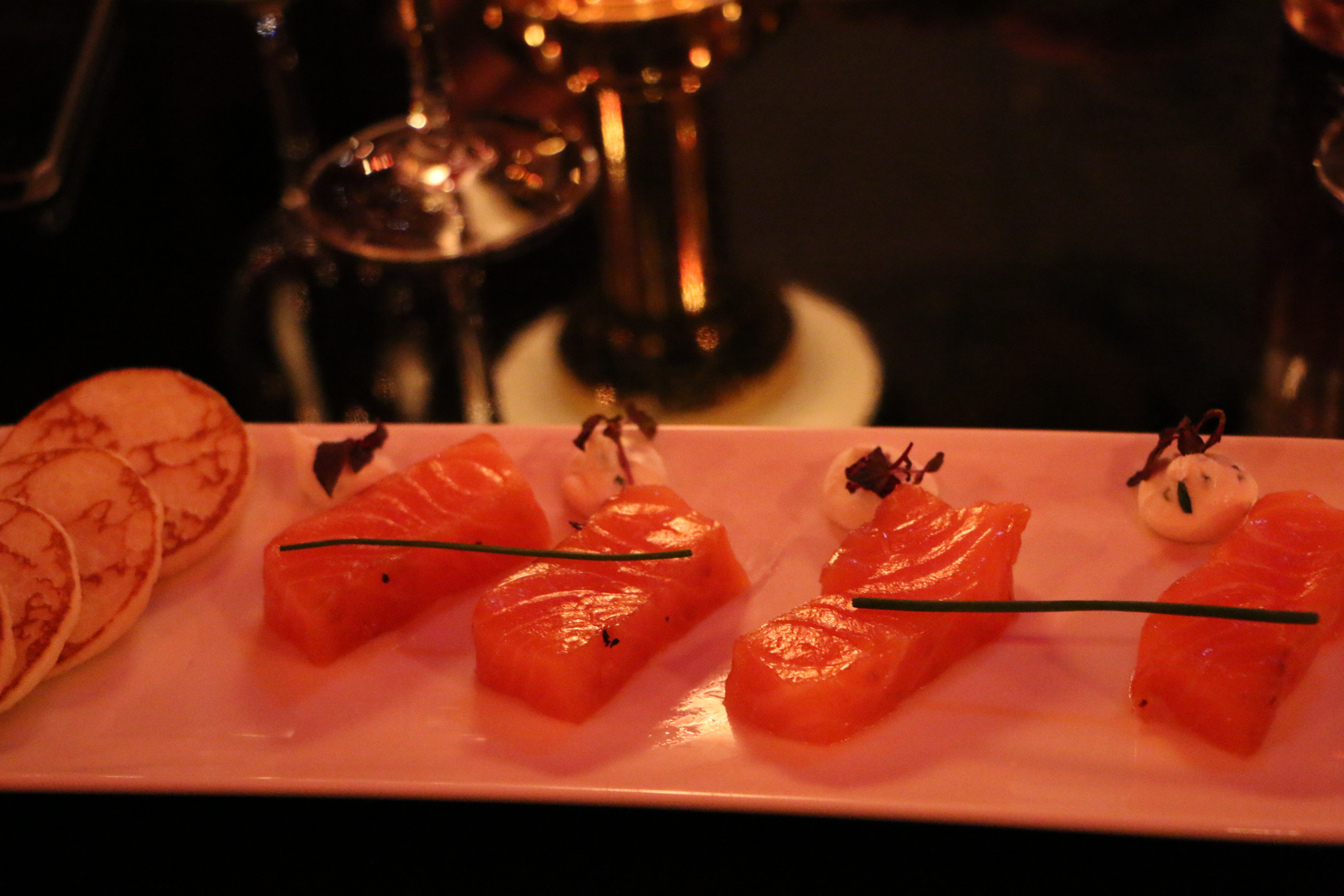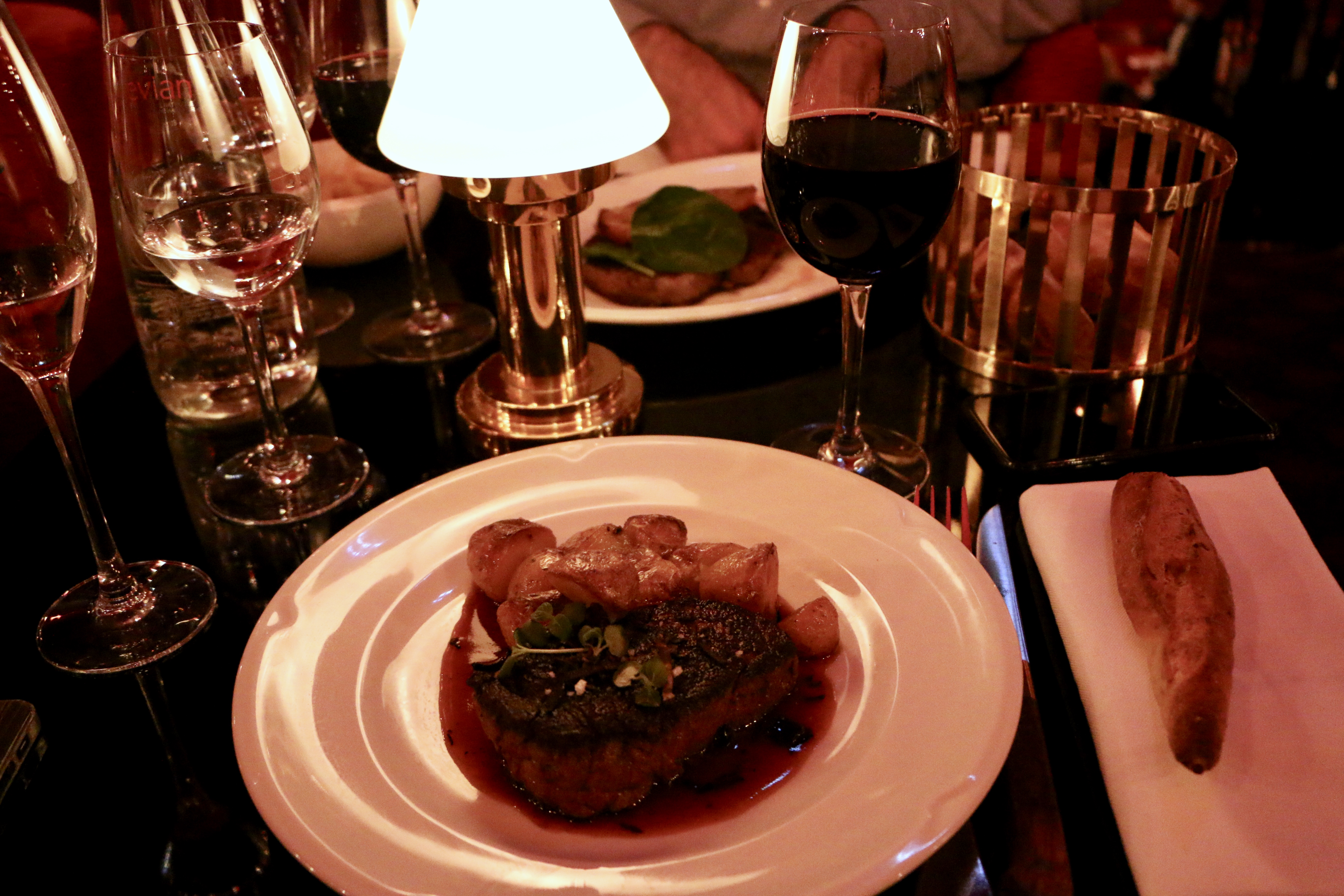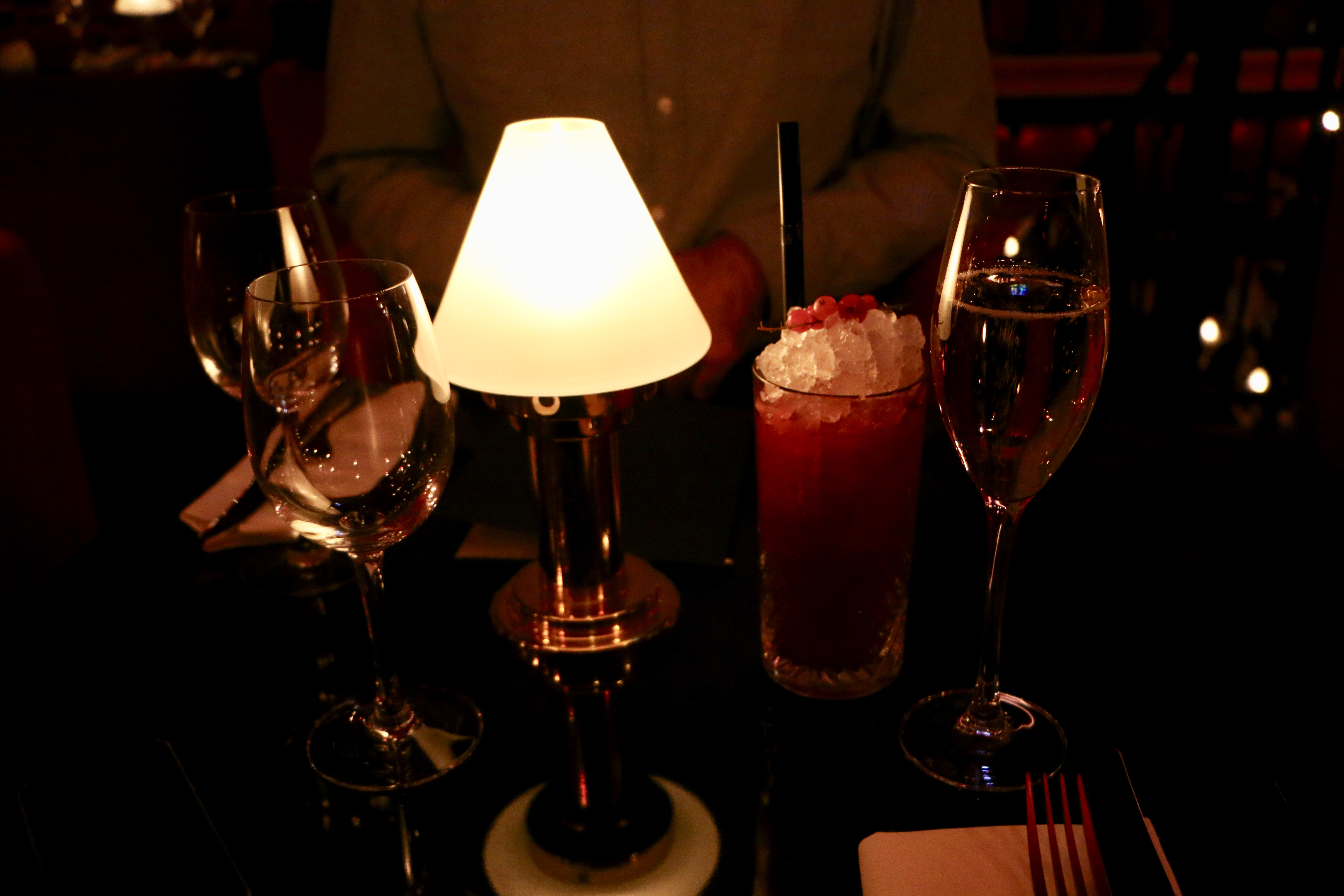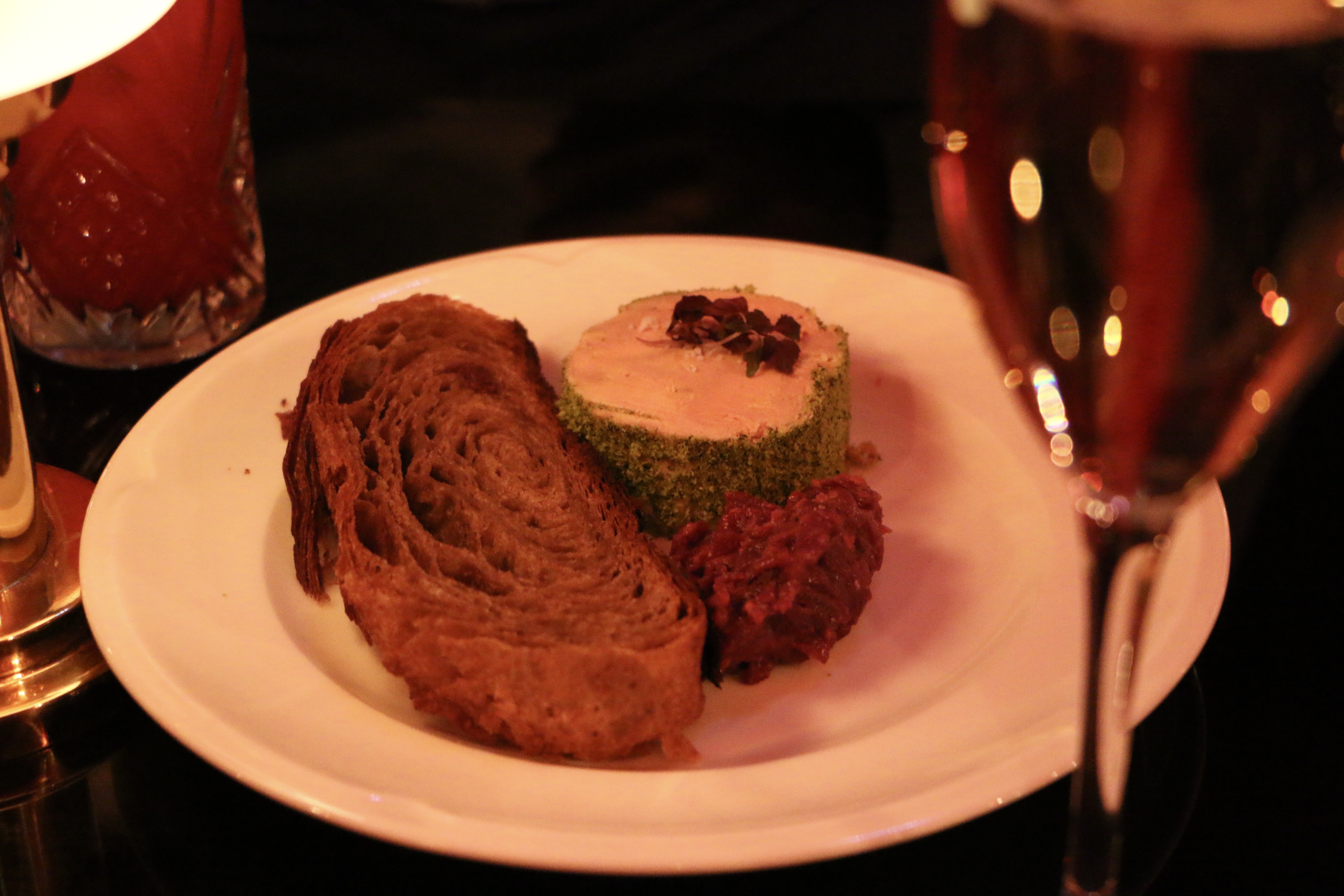 To begin with I ordered a `Roxie´cocktail and a glass of champagne! An excellent choice…the taste of the sweet cocktail (with gray goose vodka, vermouth, raspberry purée, cranberry soda and cherry bitters) plus the sparkling champagne made the smile on my lips…