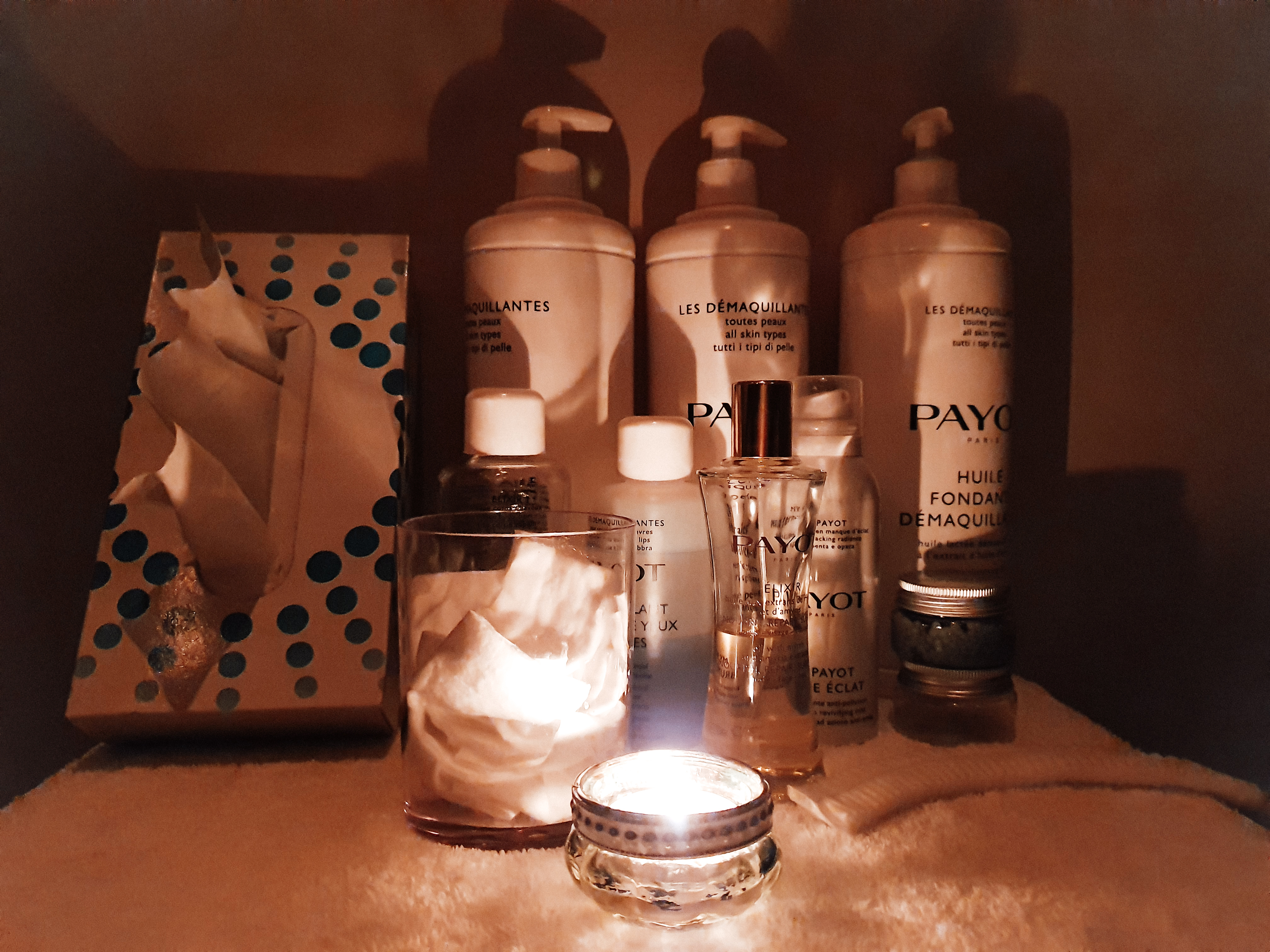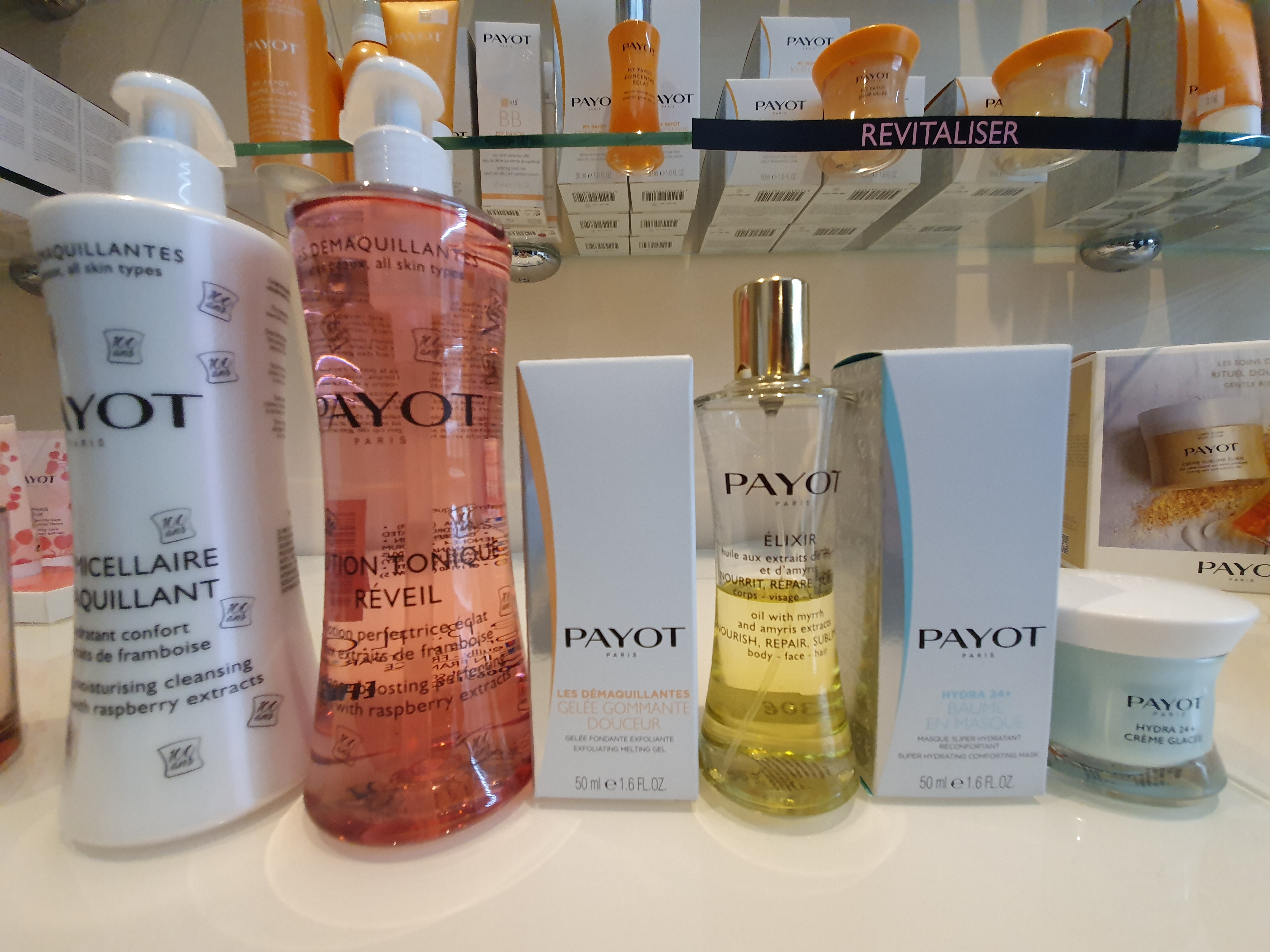 She started by cleaning my skin with a makeup remover and lotion from the brand Payot…