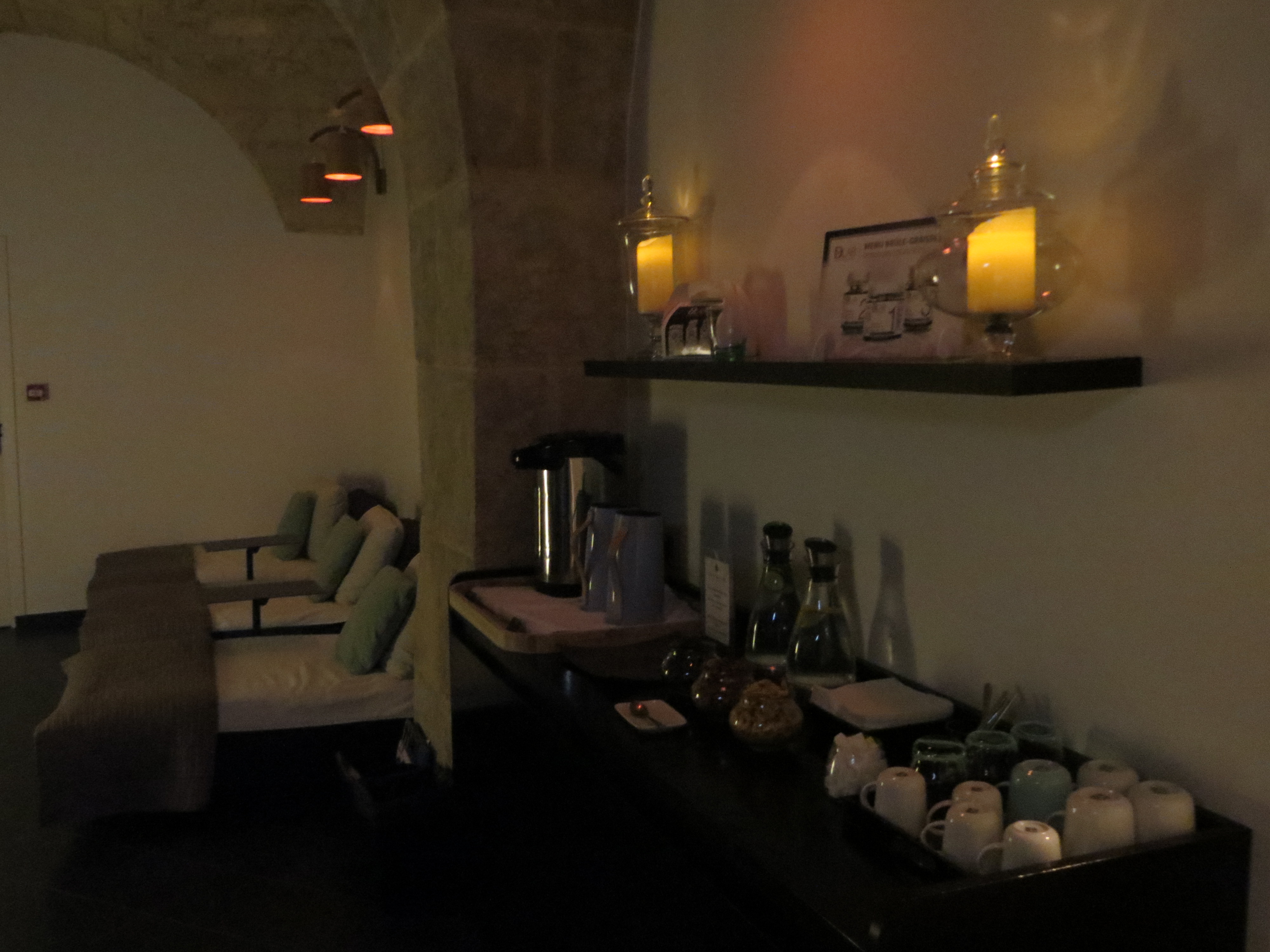 I went directly to the relaxing area, to start with a delicious detox tea, dark chocolate and nuts…that tasted fantastic under the vaulted ceiling from the 17th century…