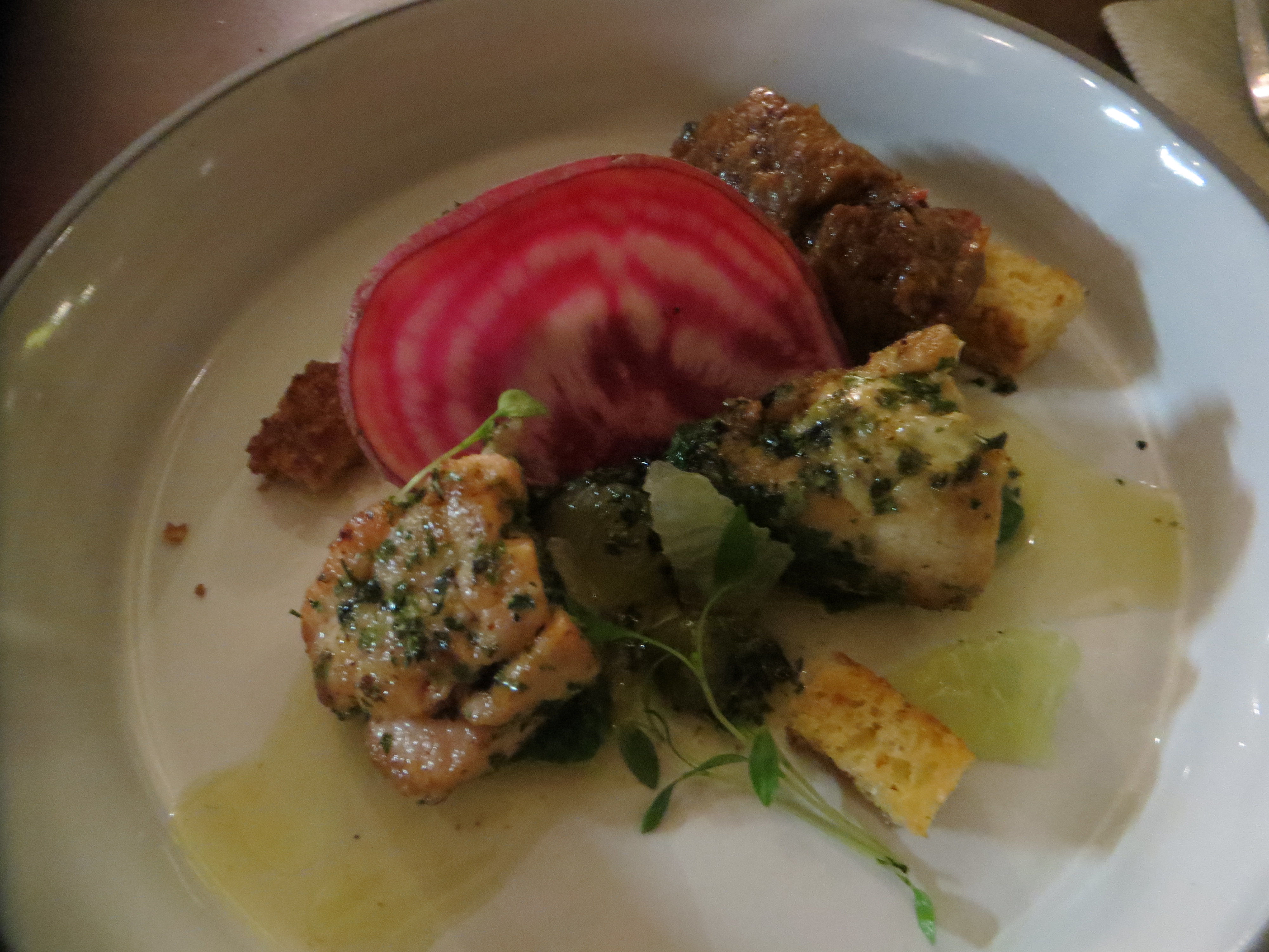 Veal with grenobloise, algae and grapefruit…super surprising and balanced in the taste. I really loved the touch of grapefruit.