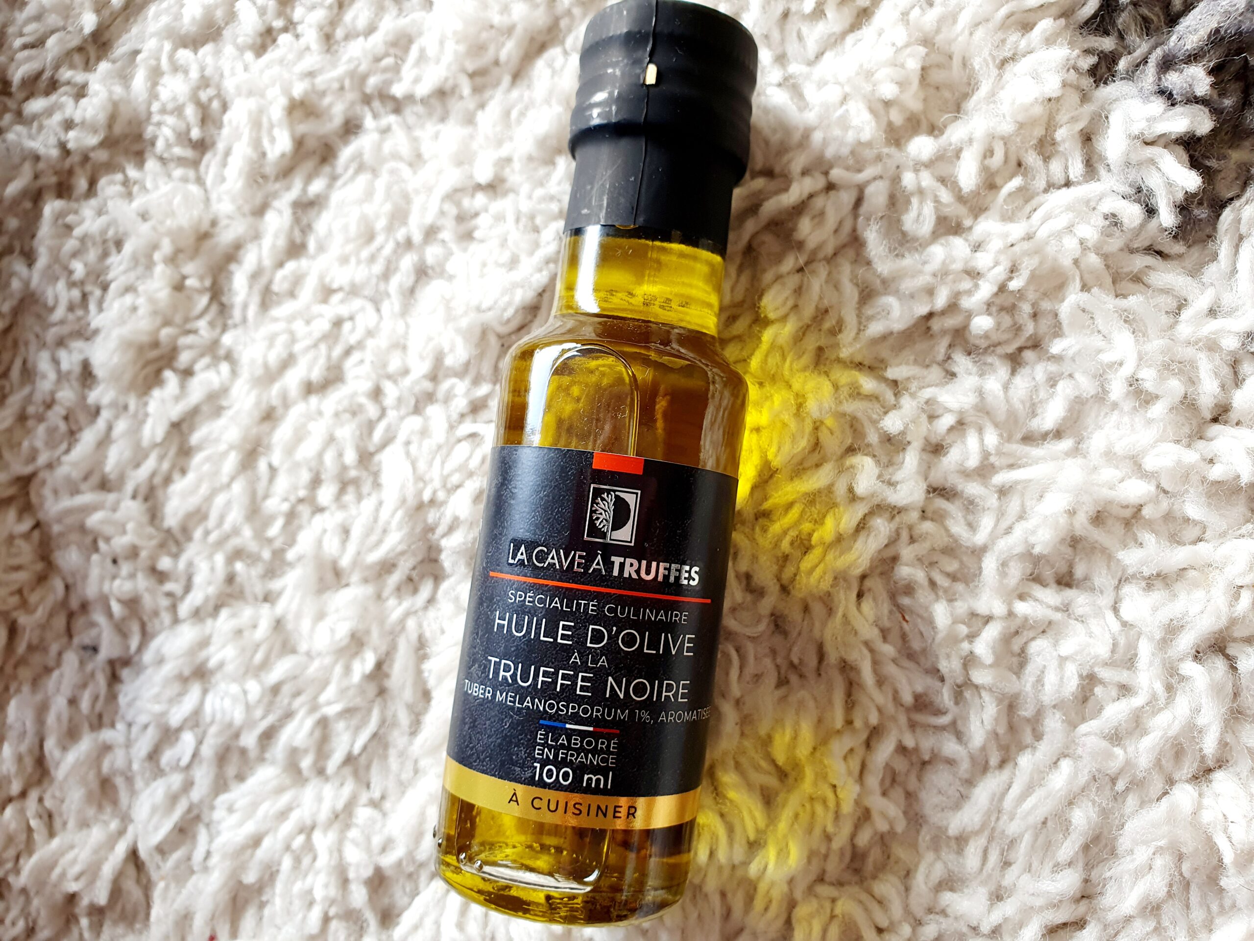 A fruity olive oil, with subtle and complex aromas of black truffle. Use it to create some amazing vinaigrettes or on fresh pasta. All the scent of olive and the lightness of the flavor of winter truffle will appear. I love it.