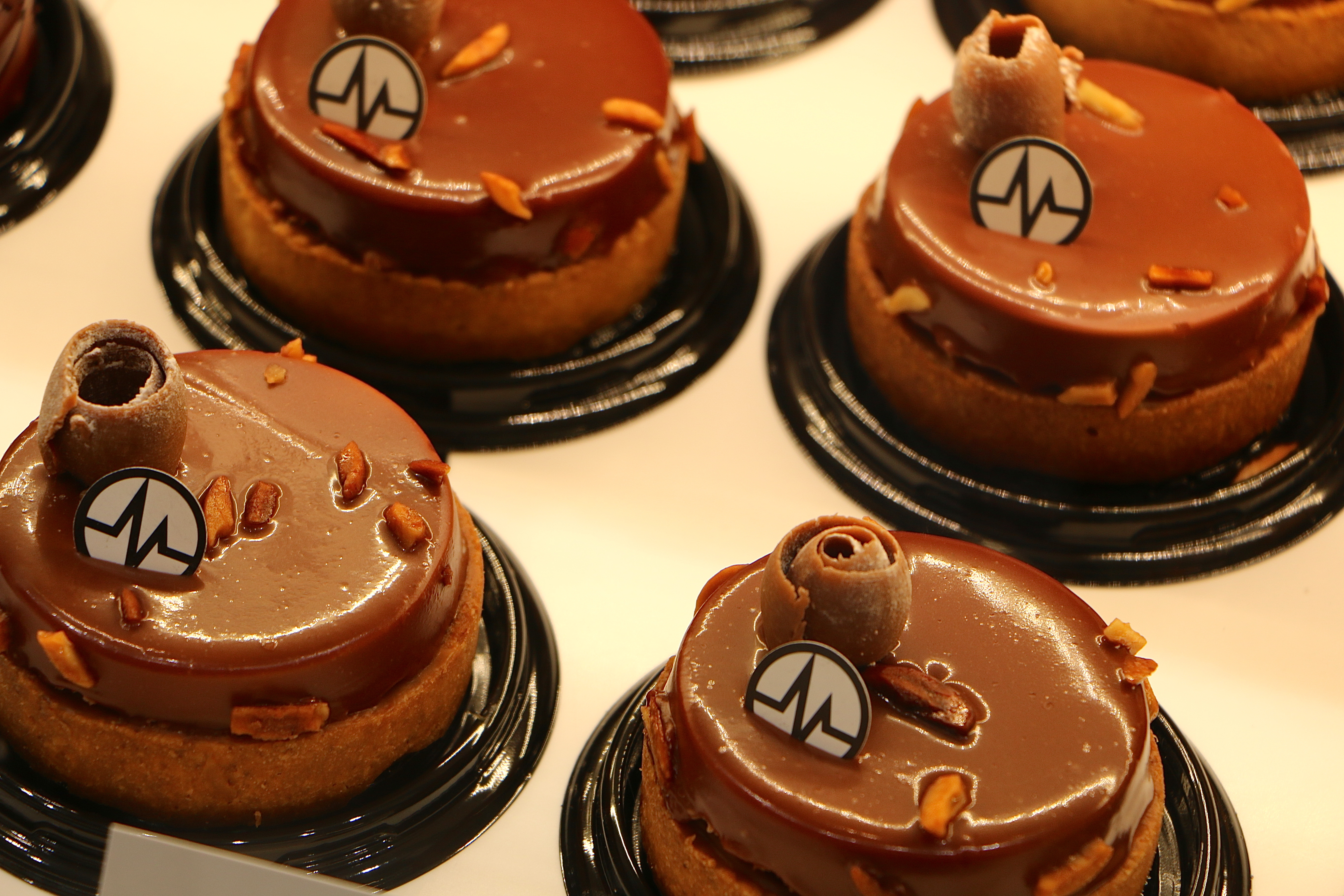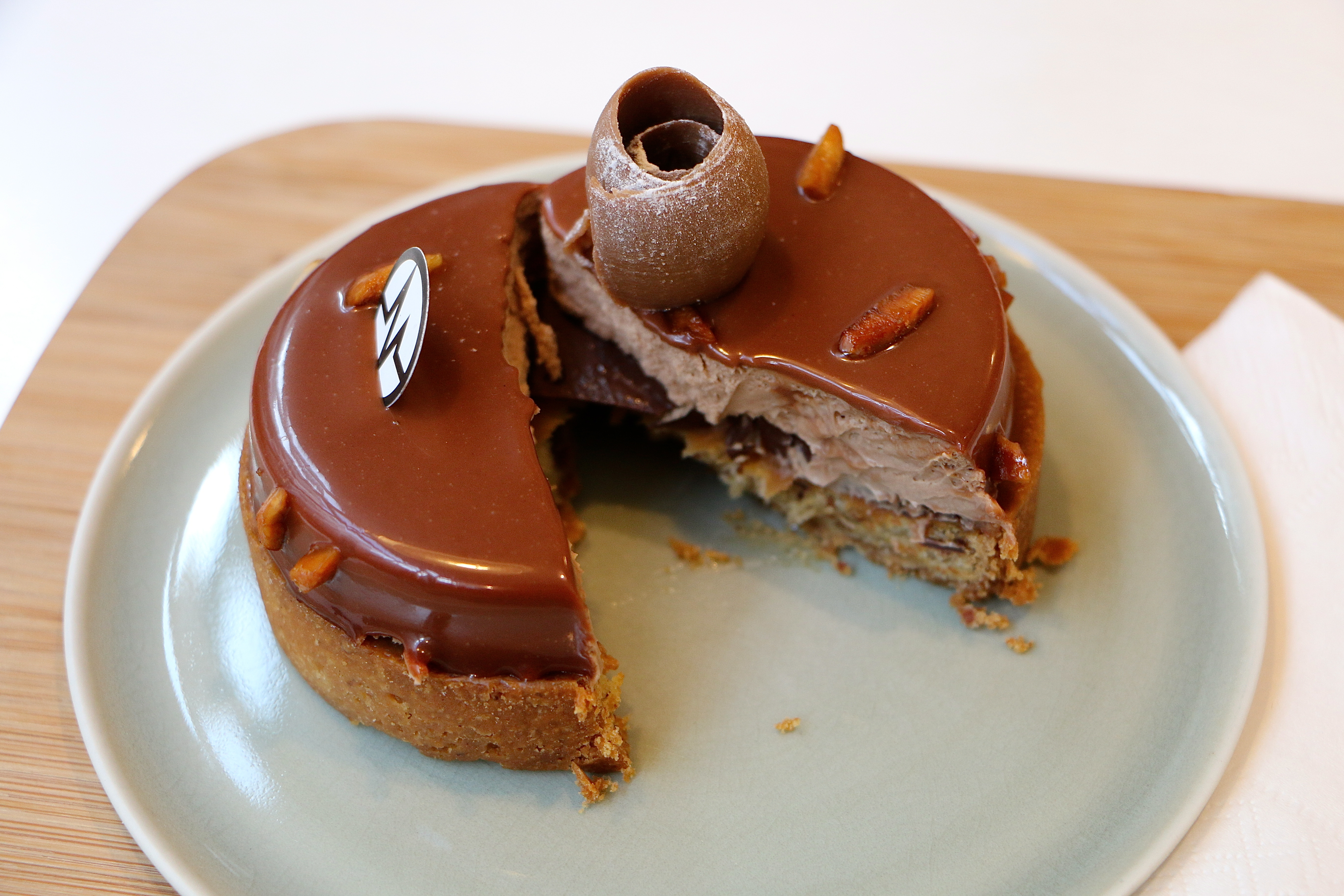 I was hesitating between the “tarte Delphine” with sweet Hazelnut, soft almond cream, soft caramel, a thin dark chocolate leaf and light chocolate mousse at 7,50€