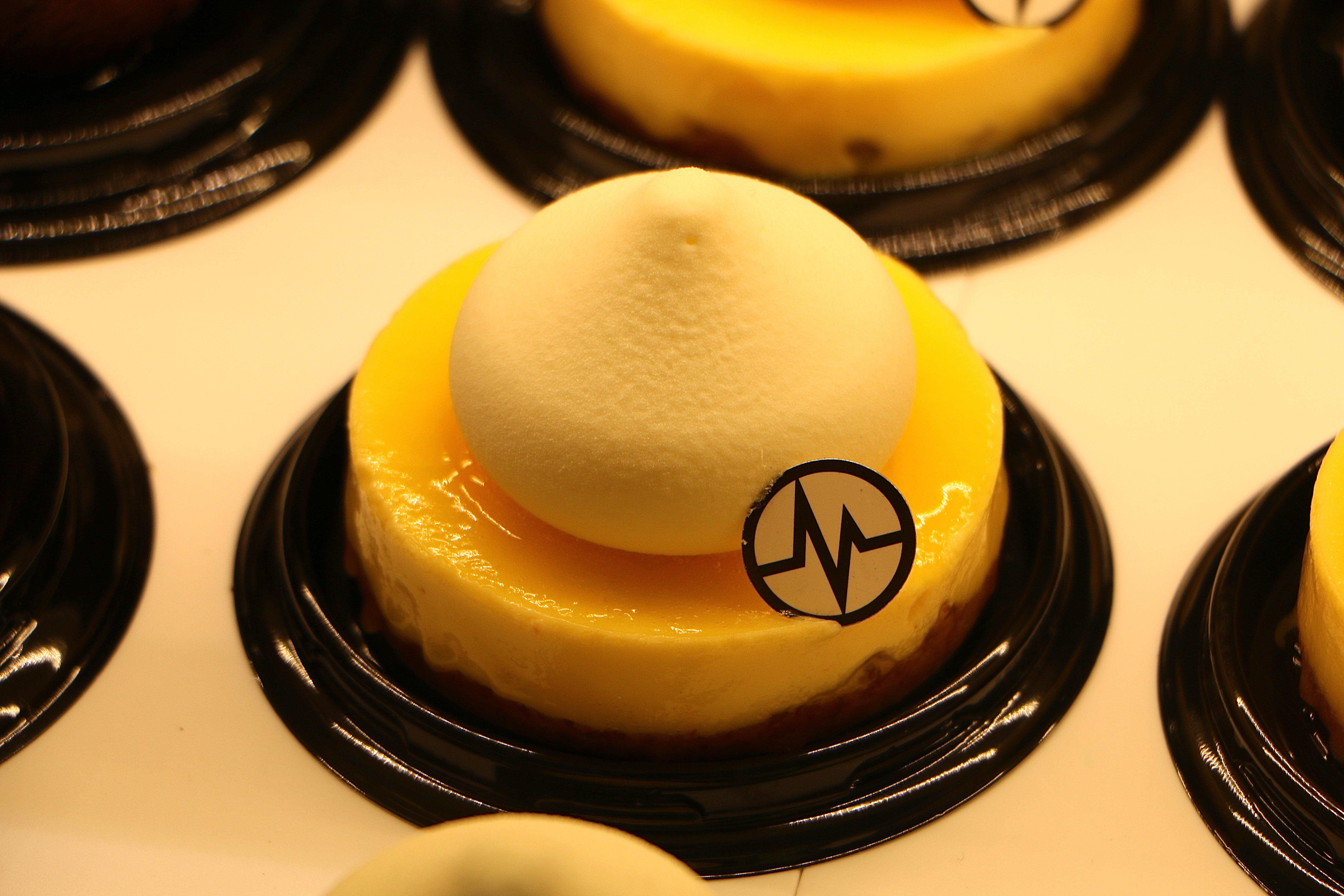 The “mon koeur” with chocolate biscuit, yuzu punch, creamy dark chocolate, creamy yuzu and milk chocolate mousse at 8€.