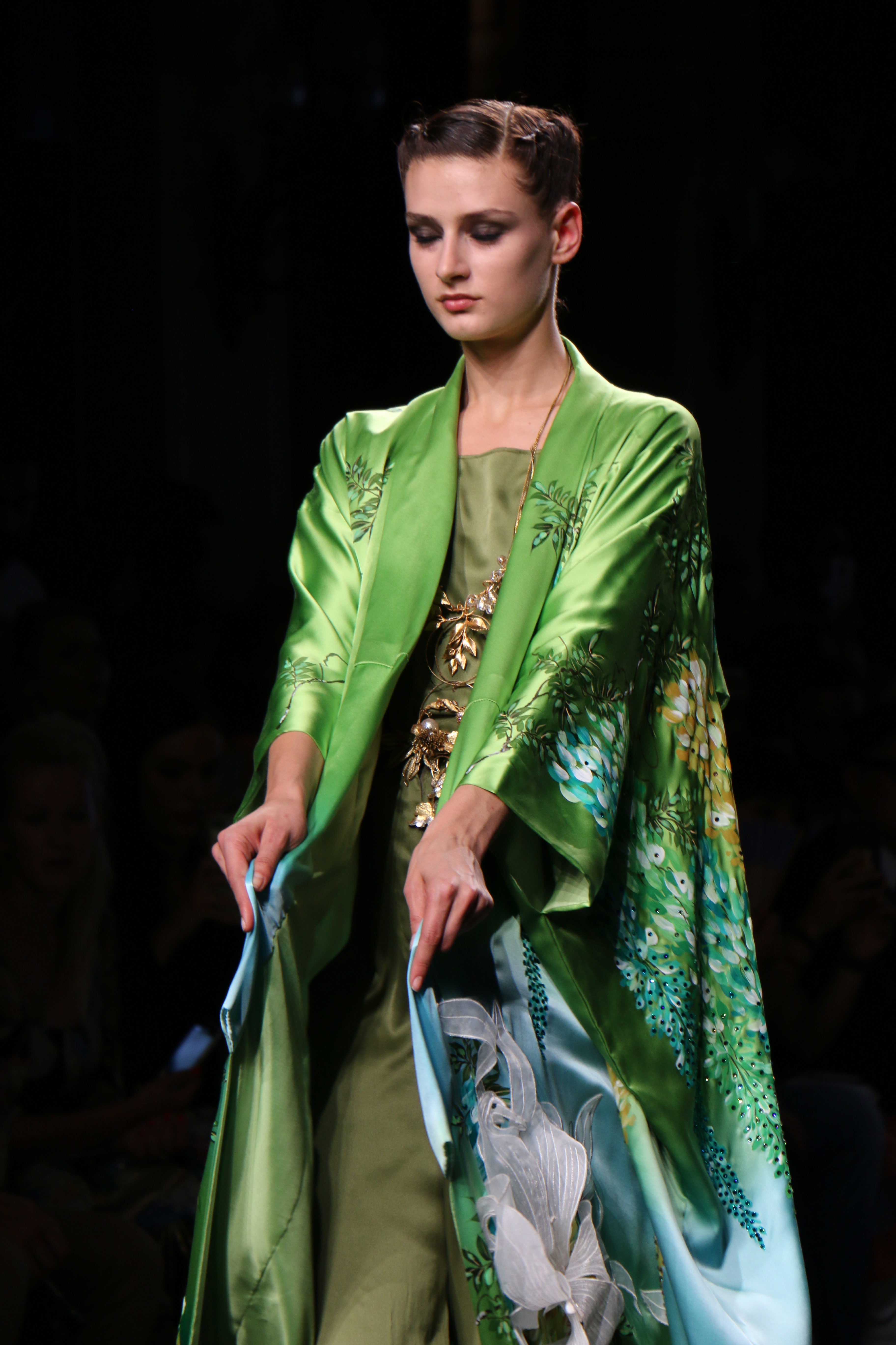 It was a fabulous collection. Yumi Katsura build a bridge between the Japanese ancestral techniques, such as Nishijin Ori weaving and the traditional Yuzen silk dyeing technique, and French femininity: the elegant, self-confident and timeless.